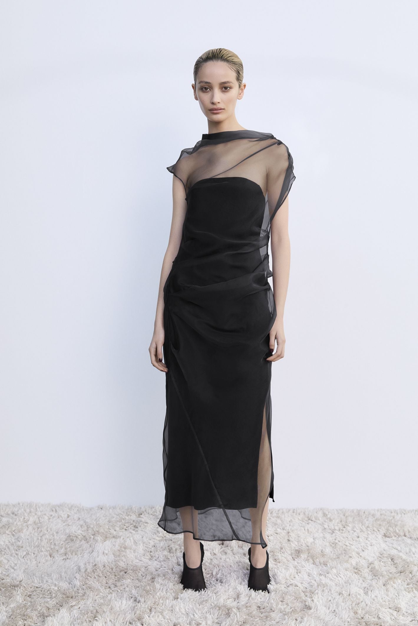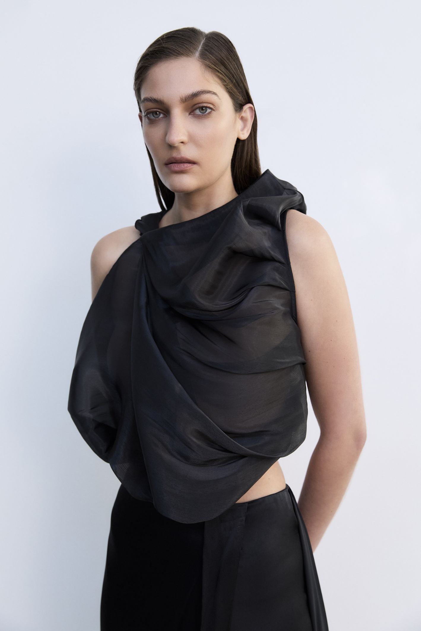 IVORY CREPE CRAWFORD TOP