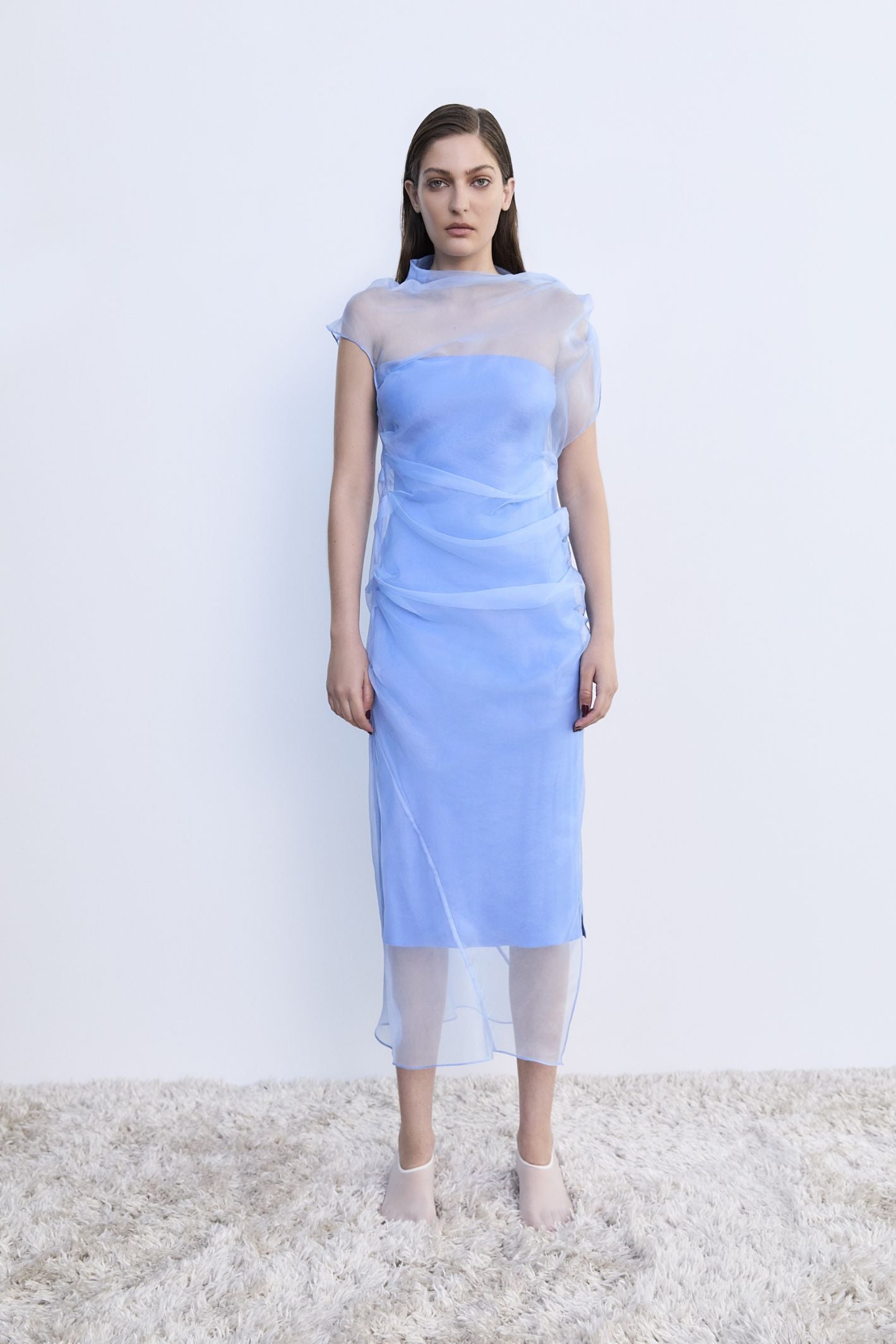 NAVY SATIN CREPE DEVIATION GOWN