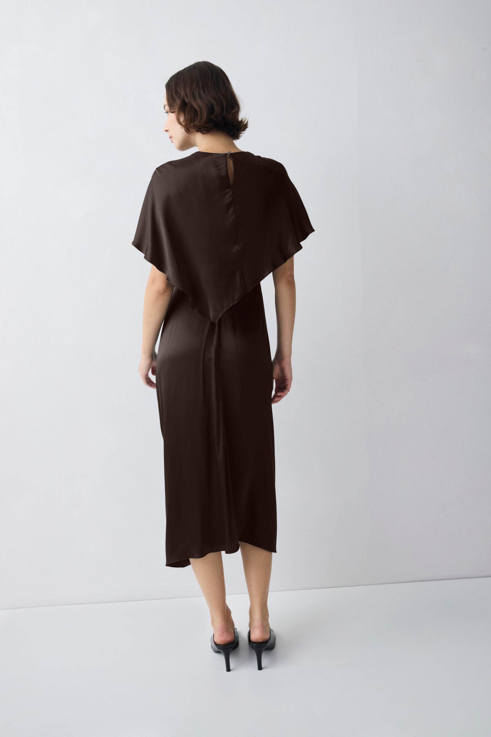 CHOCOLATE SILK SATIN ILLUSIONIST DRESS