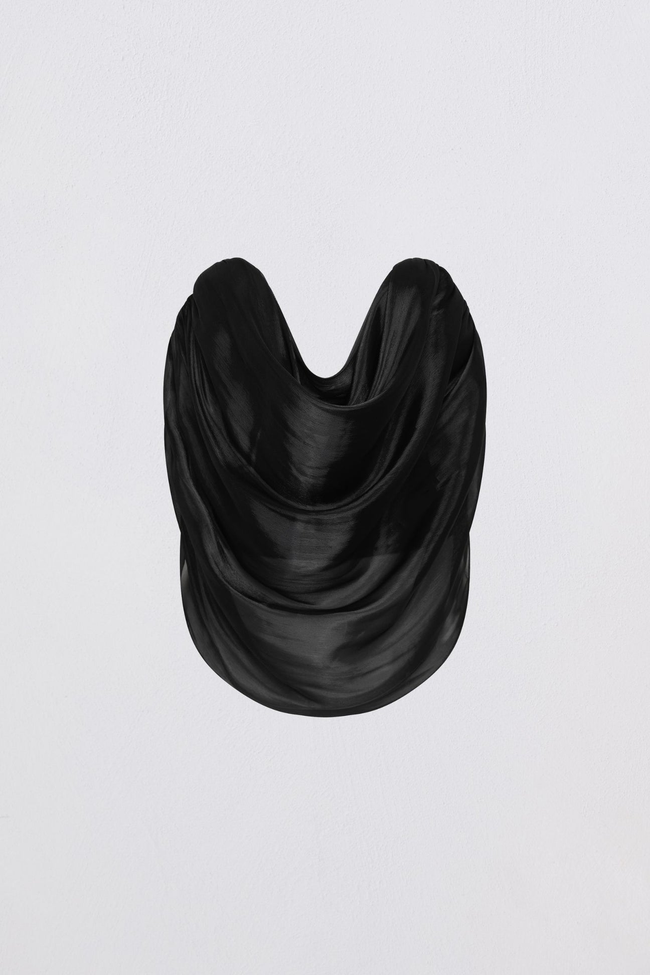Where strength meets softness. The Tidal Bustier Top is crafted in sheer black liquid organza and draped into a sculptural silhouette that floats over the frame. A stretch internal bustier offers secure structure beneath the fluid outer layer, while a concealed zip closure ensures a smooth fit. Designed to sit close to the body and draw focus to the neckline, this is a modern statement piece with elegance at its core. Perfect for evening moments or layered contrast.