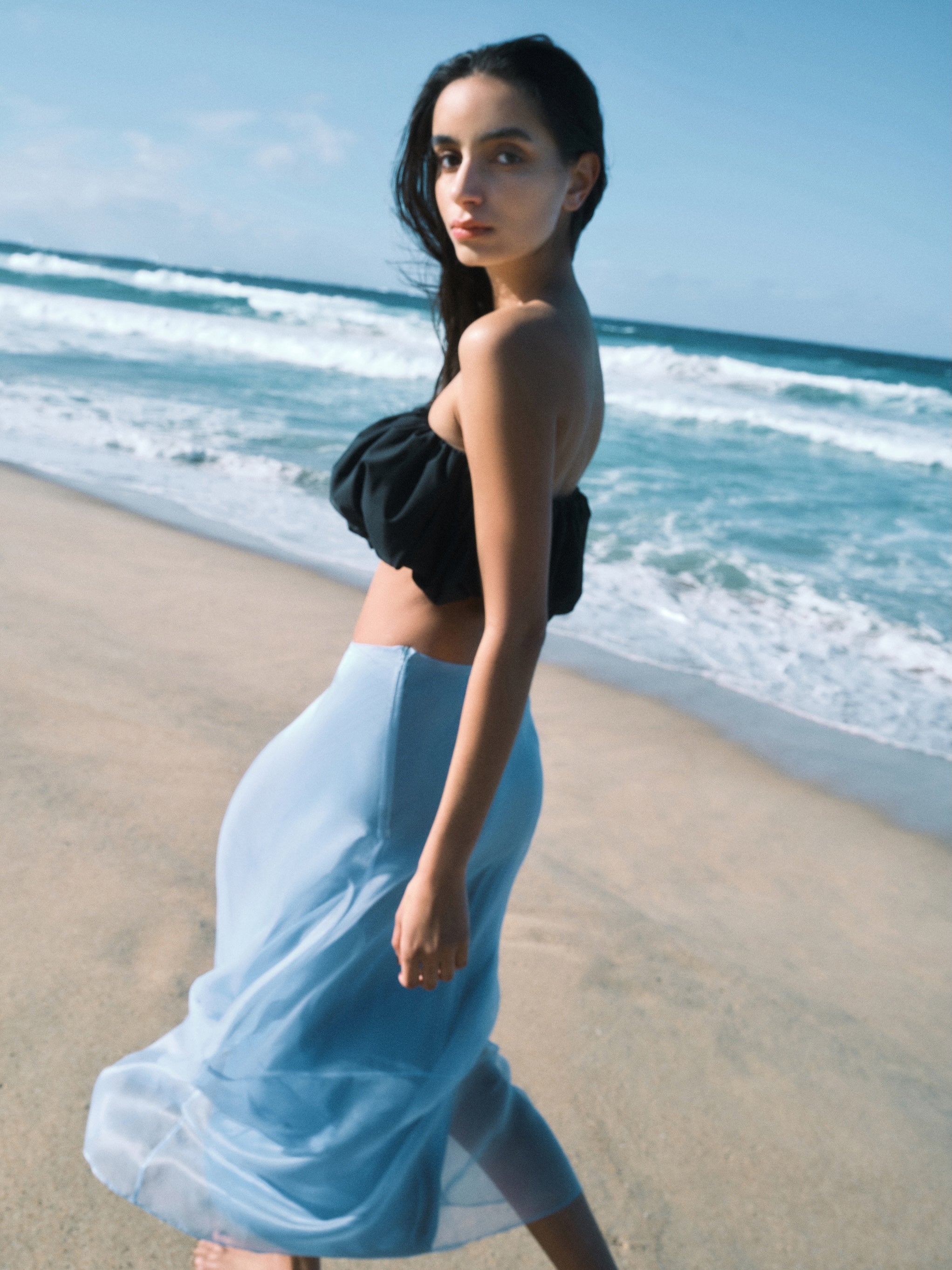 CHAMPAGNE LIQUID ORGANZA DRIFT SKIRT