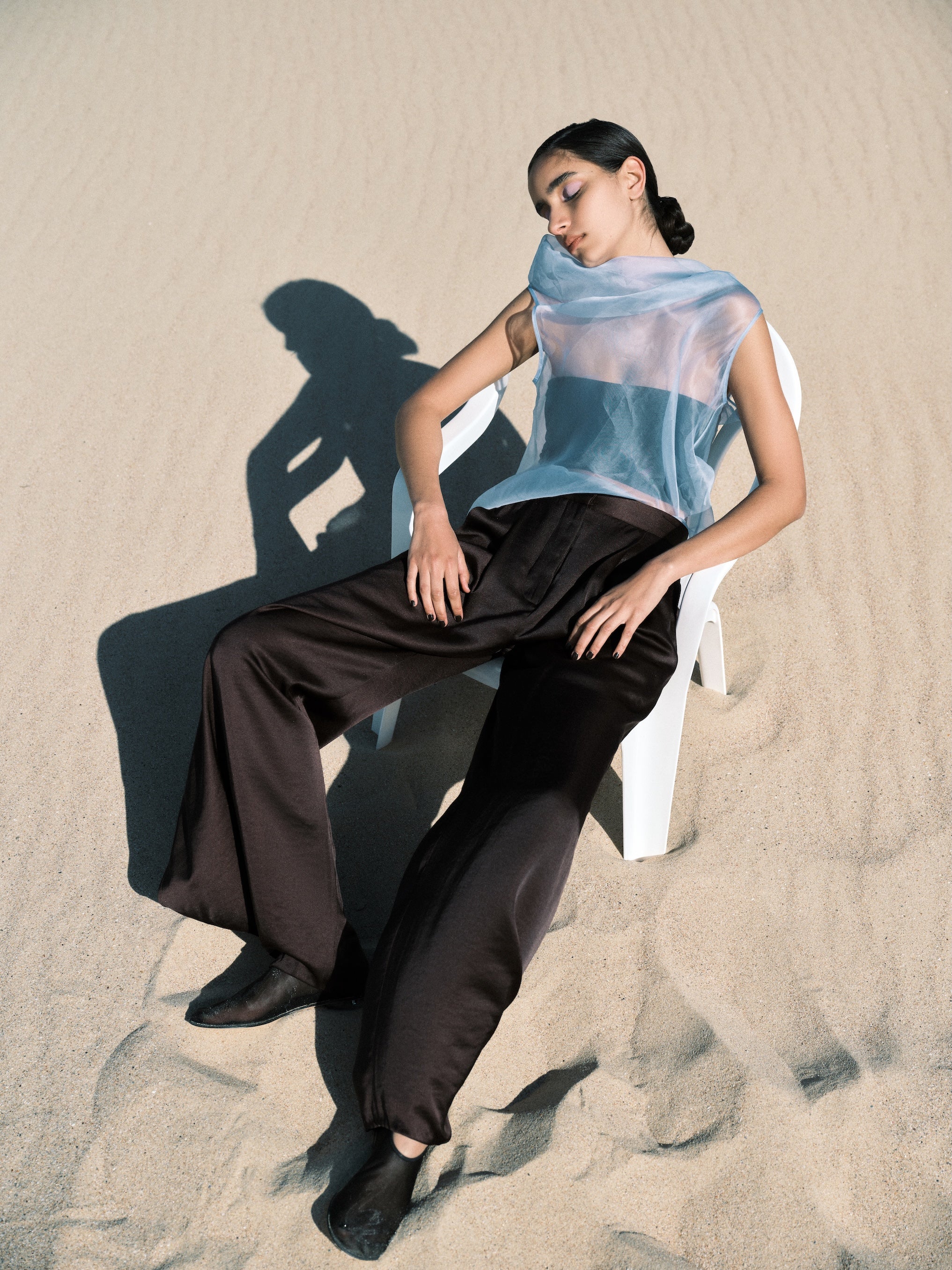 CHOCOLATE SATIN SUITING SURRENDER PANT