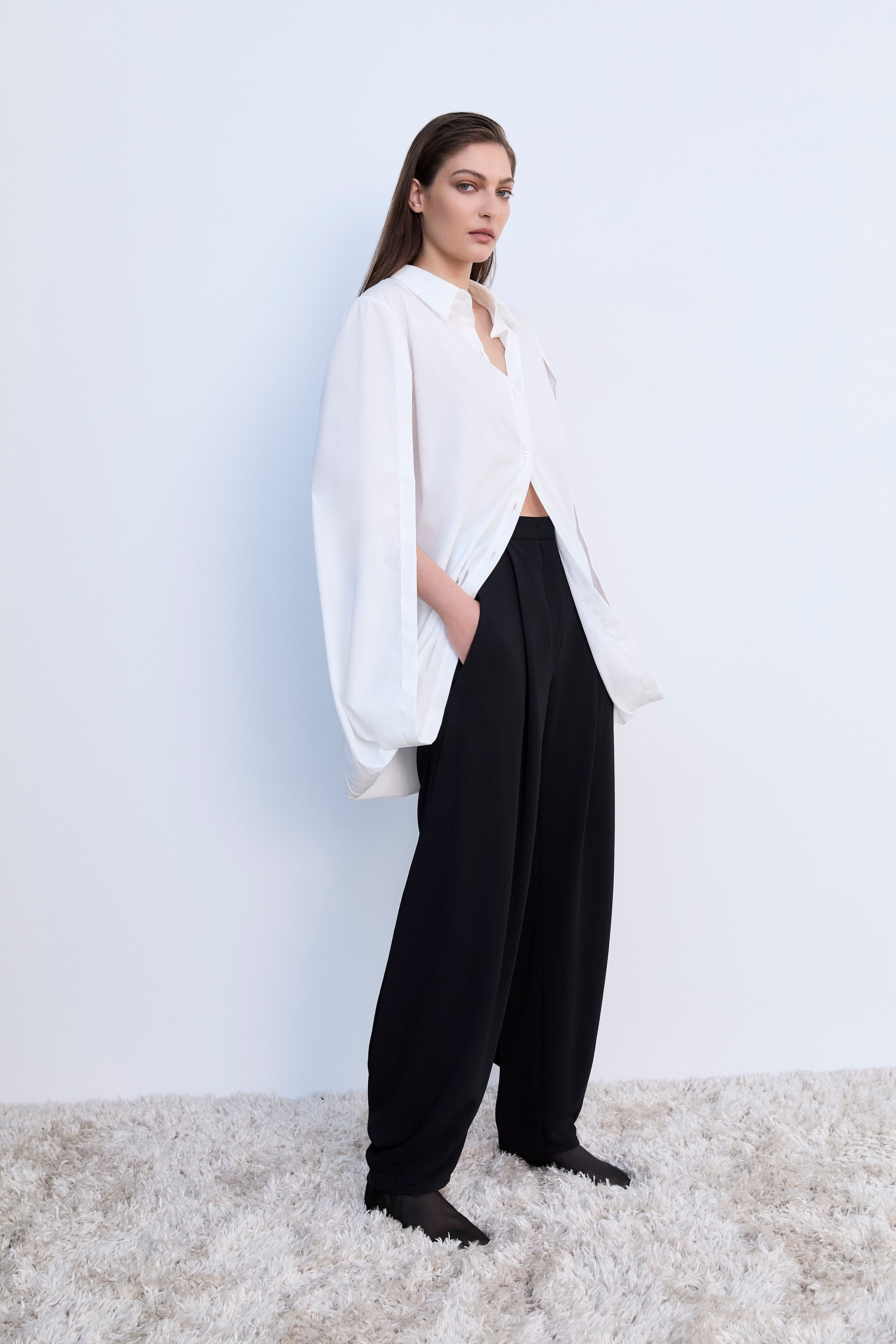 IVORY CRINKLE RAY PANT