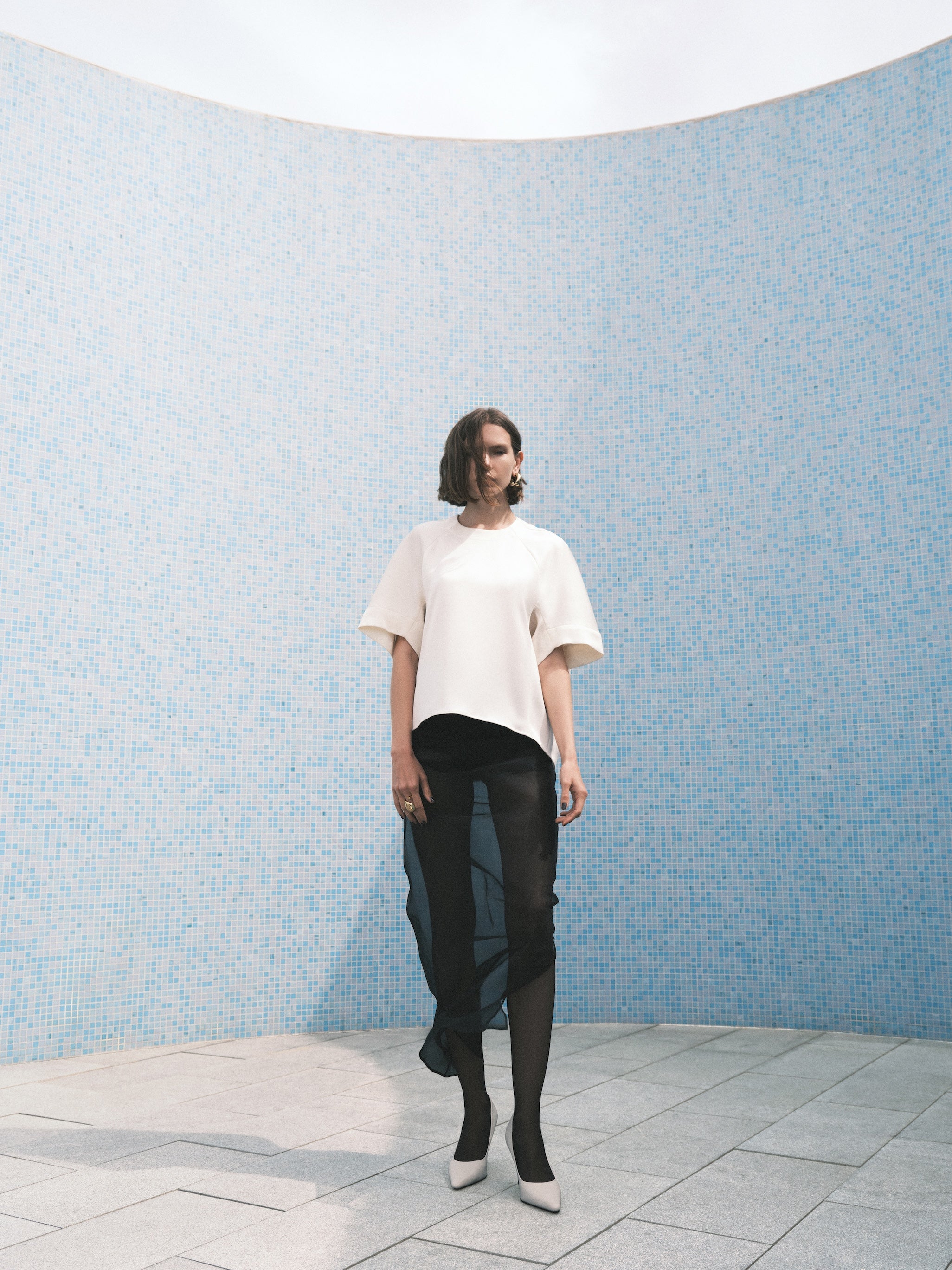 BLACK ORGANZA CURVATURE SKIRT