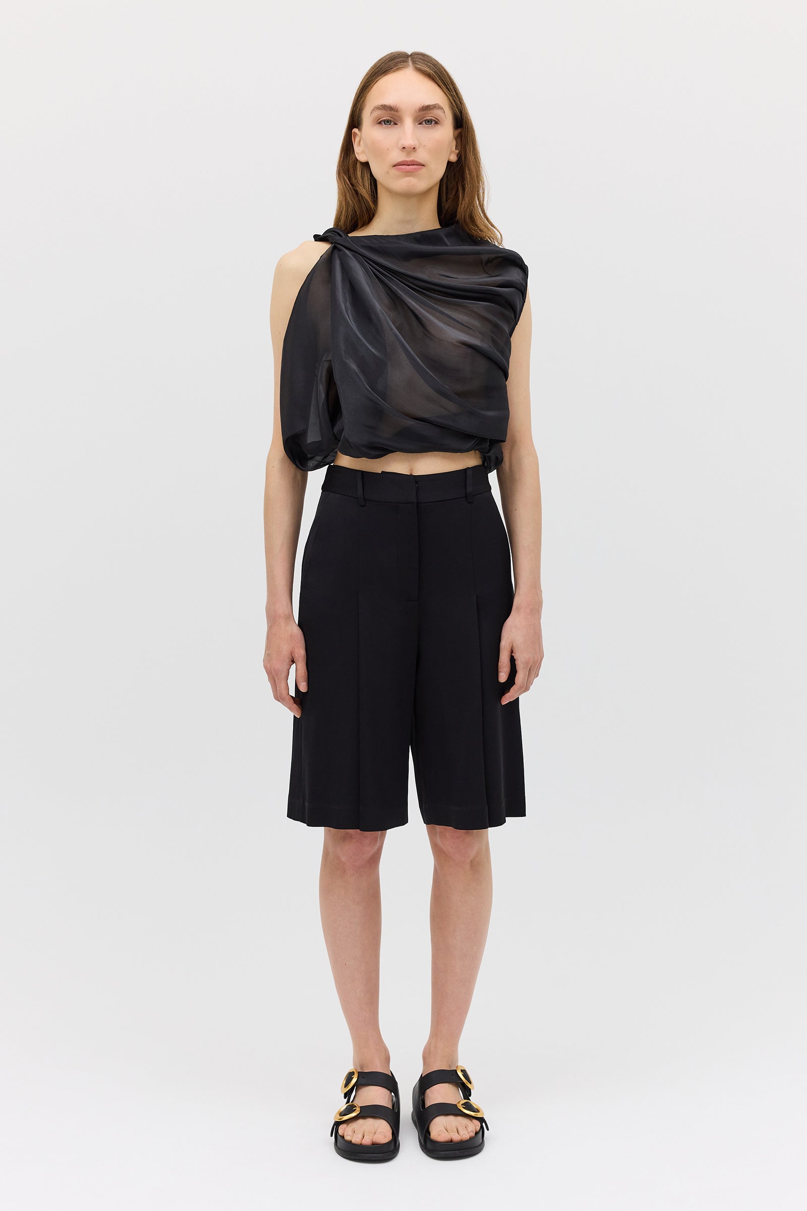 CHOCOLATE SATIN SUITING SURGES SHORT