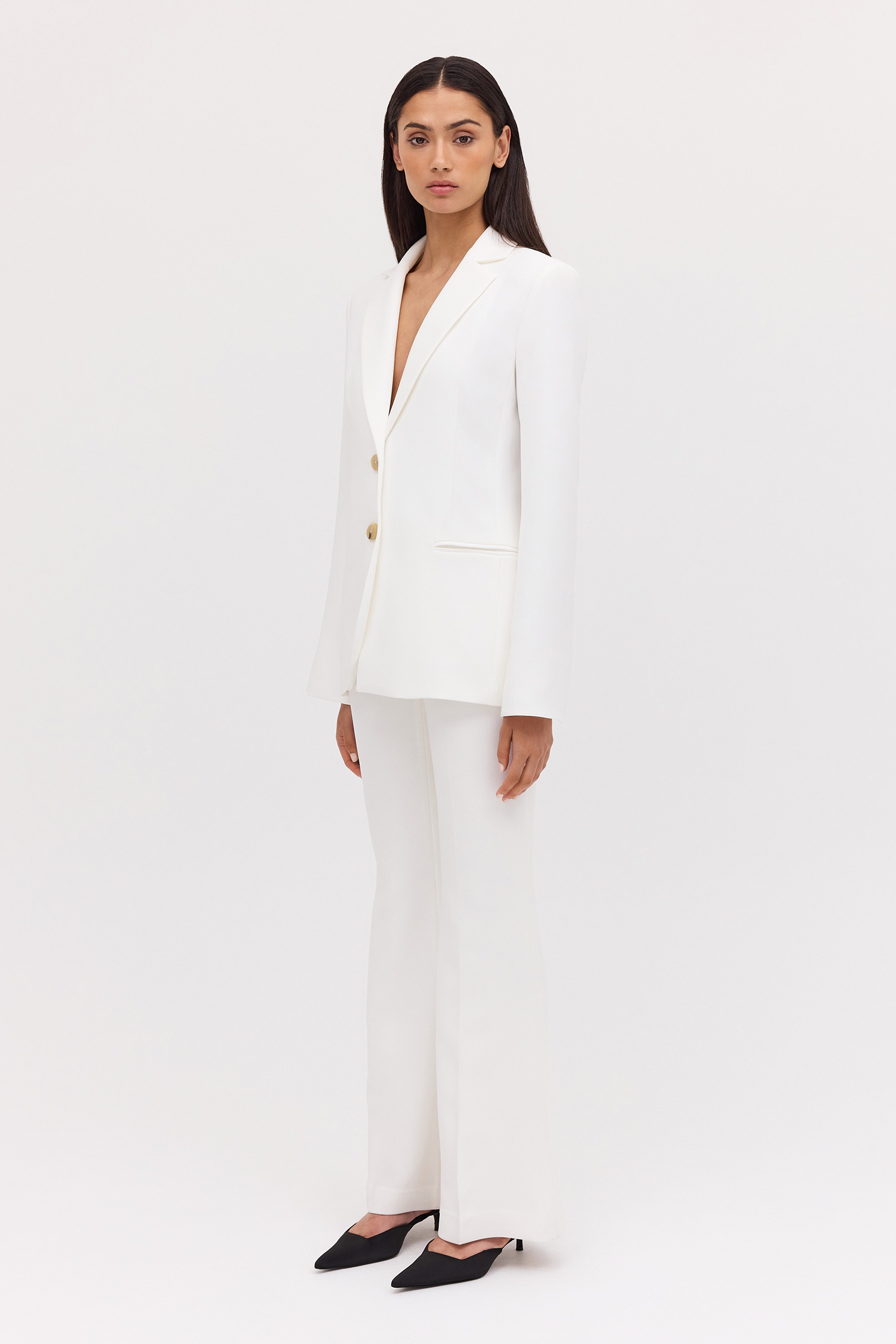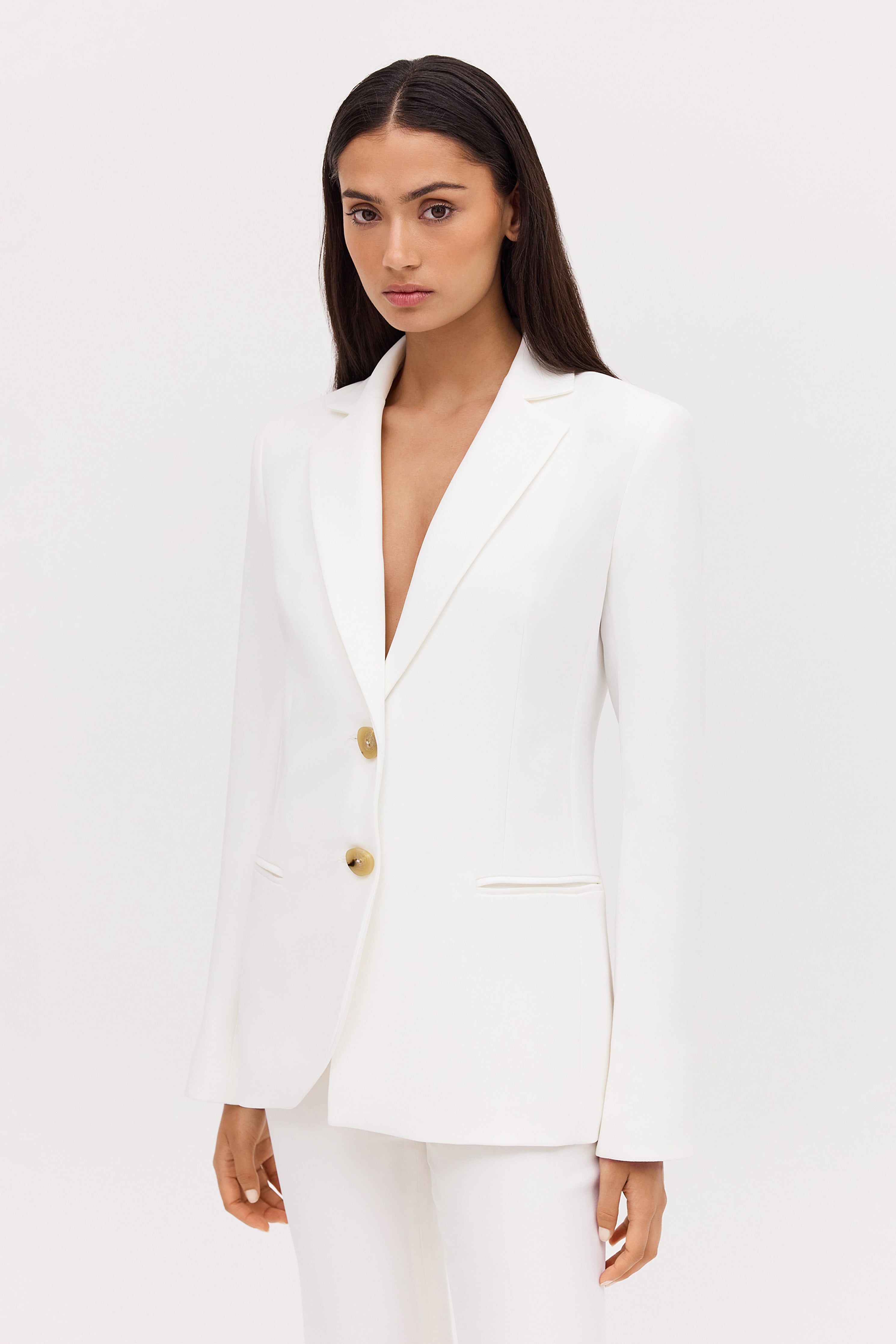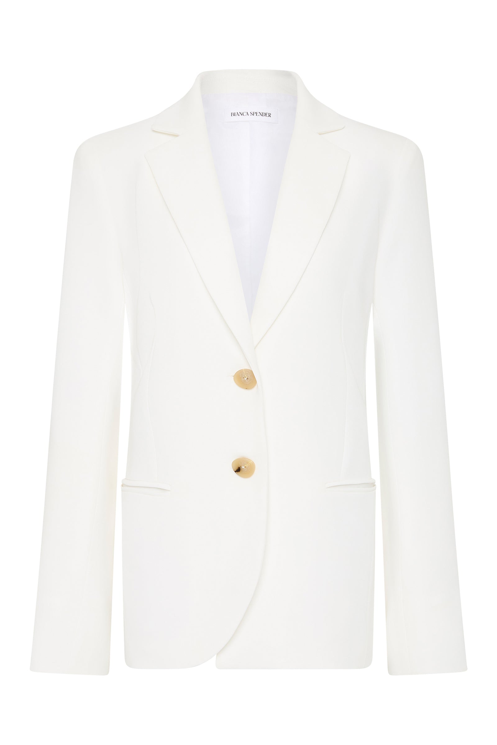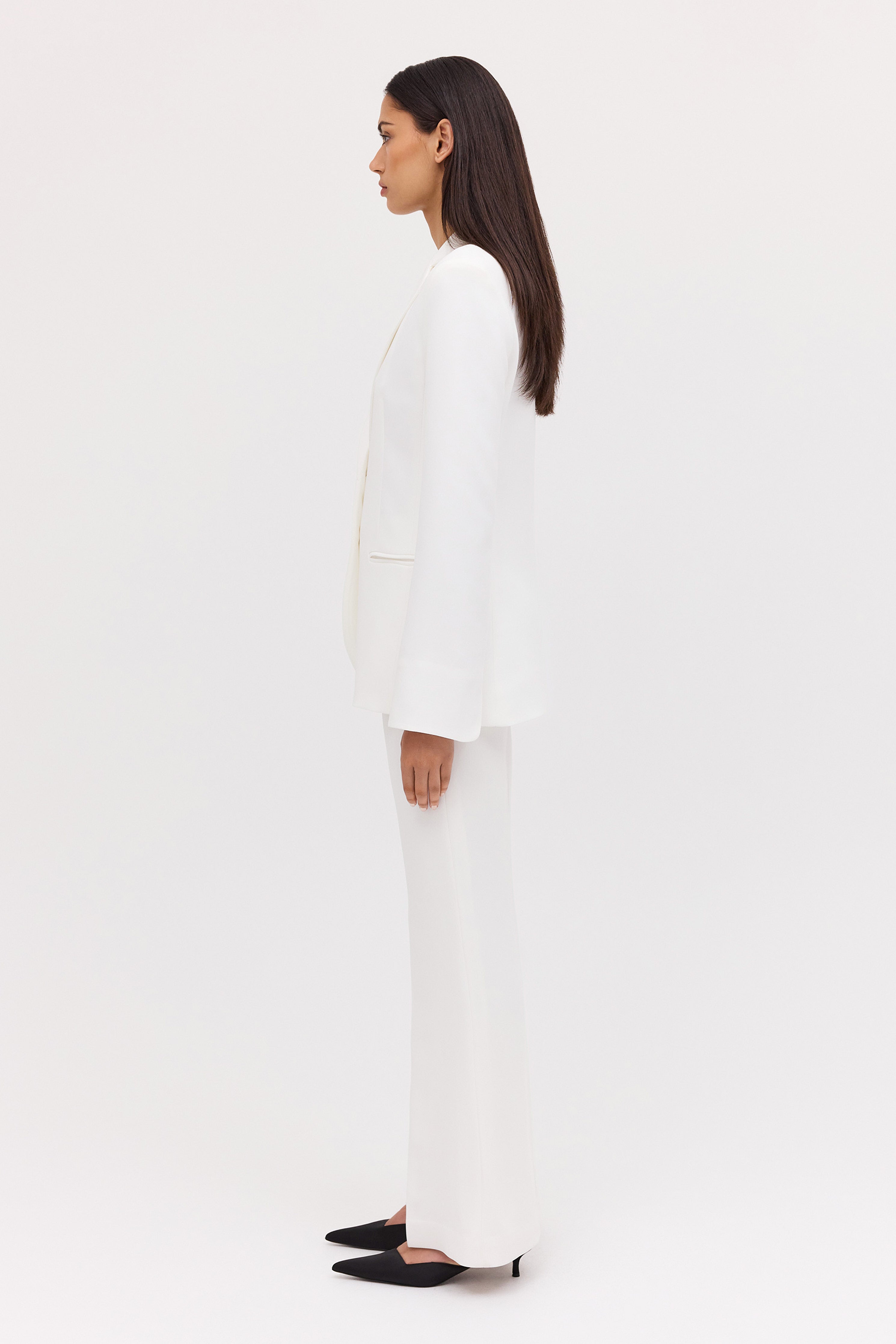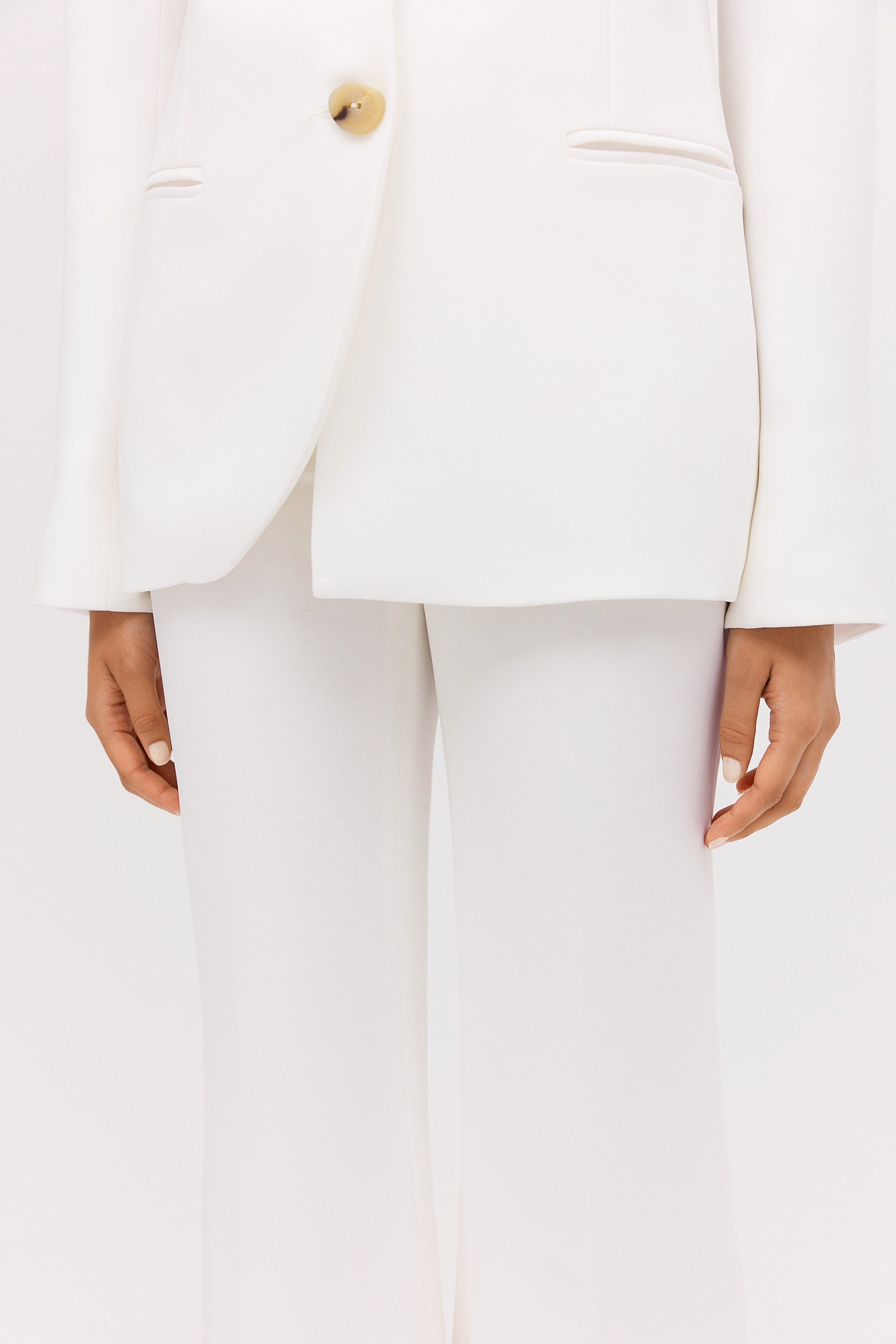 The Enso Jacket may be styled with our Ivory Crepe Nadja, for a feminine power suit moment, or pair with the White Textured Suiting Unity Skirt and flats for a chic office look.
