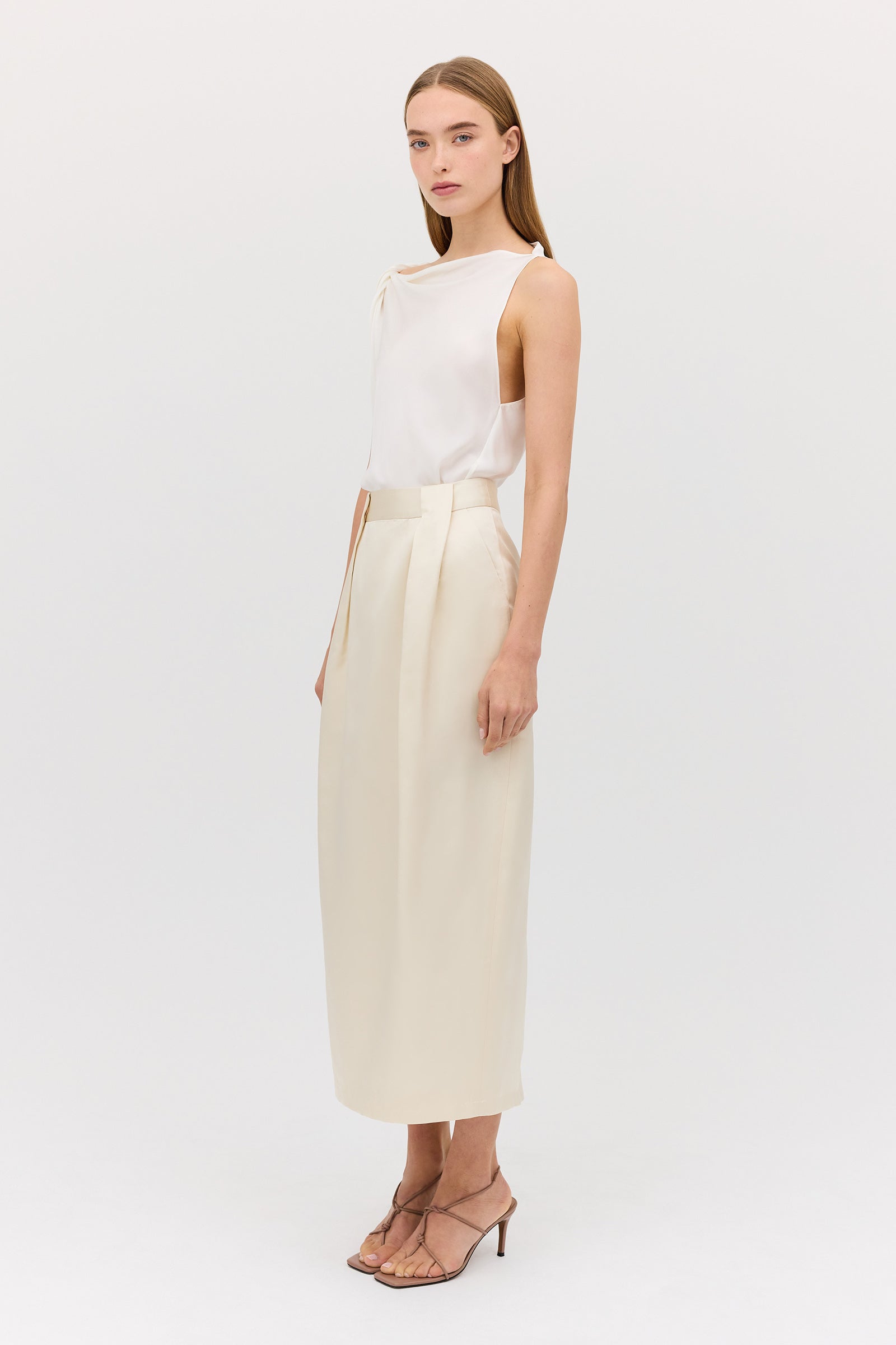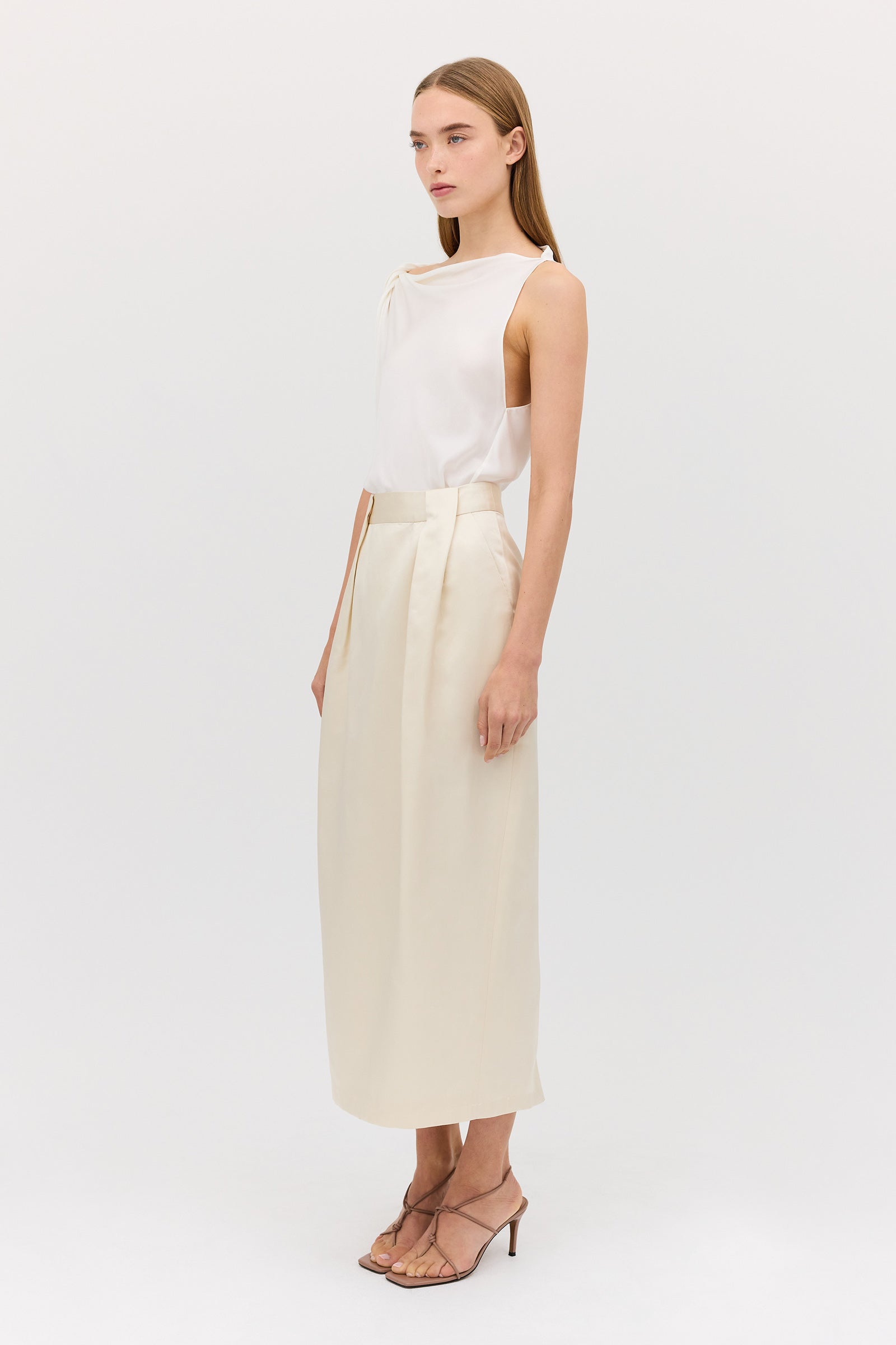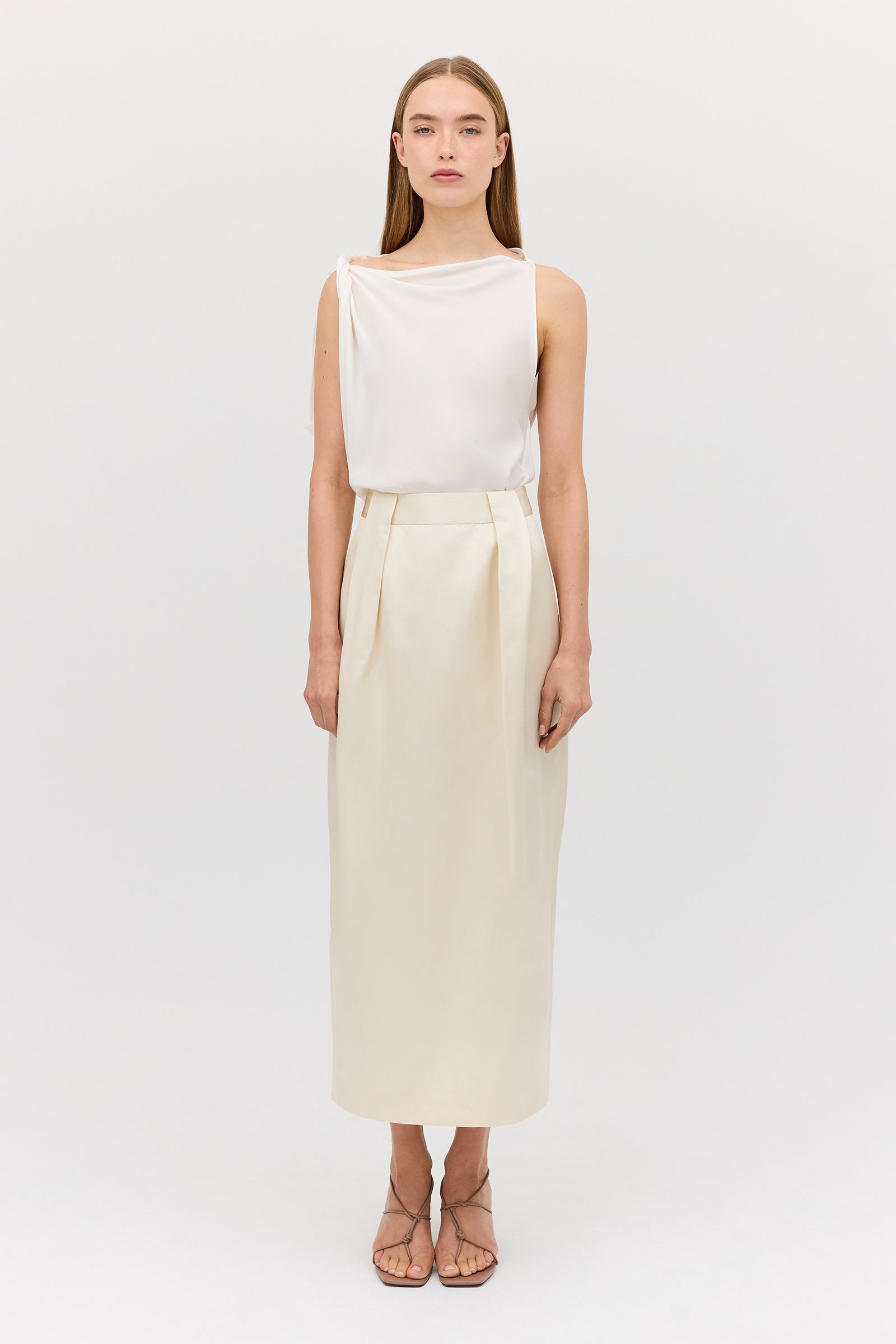 This delicate silk piece looks beautiful paired with cream silk separates, like the Cream Wool Caress Skirt, or for a chic evening look, the Cream Satin Affinity Skirt. Anchor the delicate nature of the Ivory Silk with a tailored trouser in a textural, earthy tone.