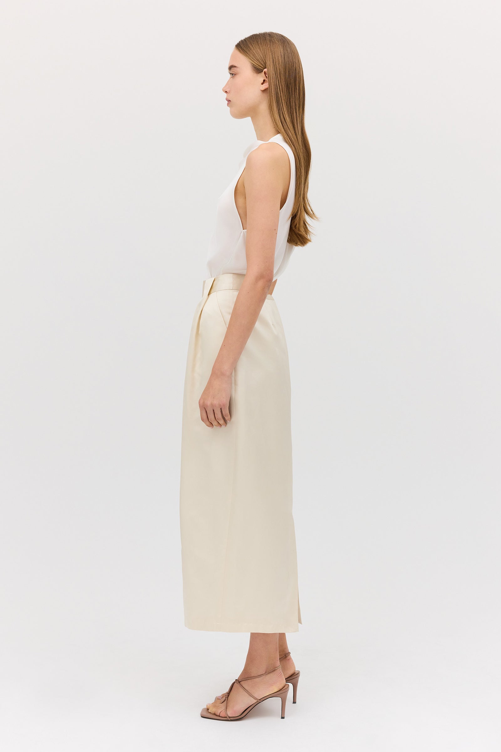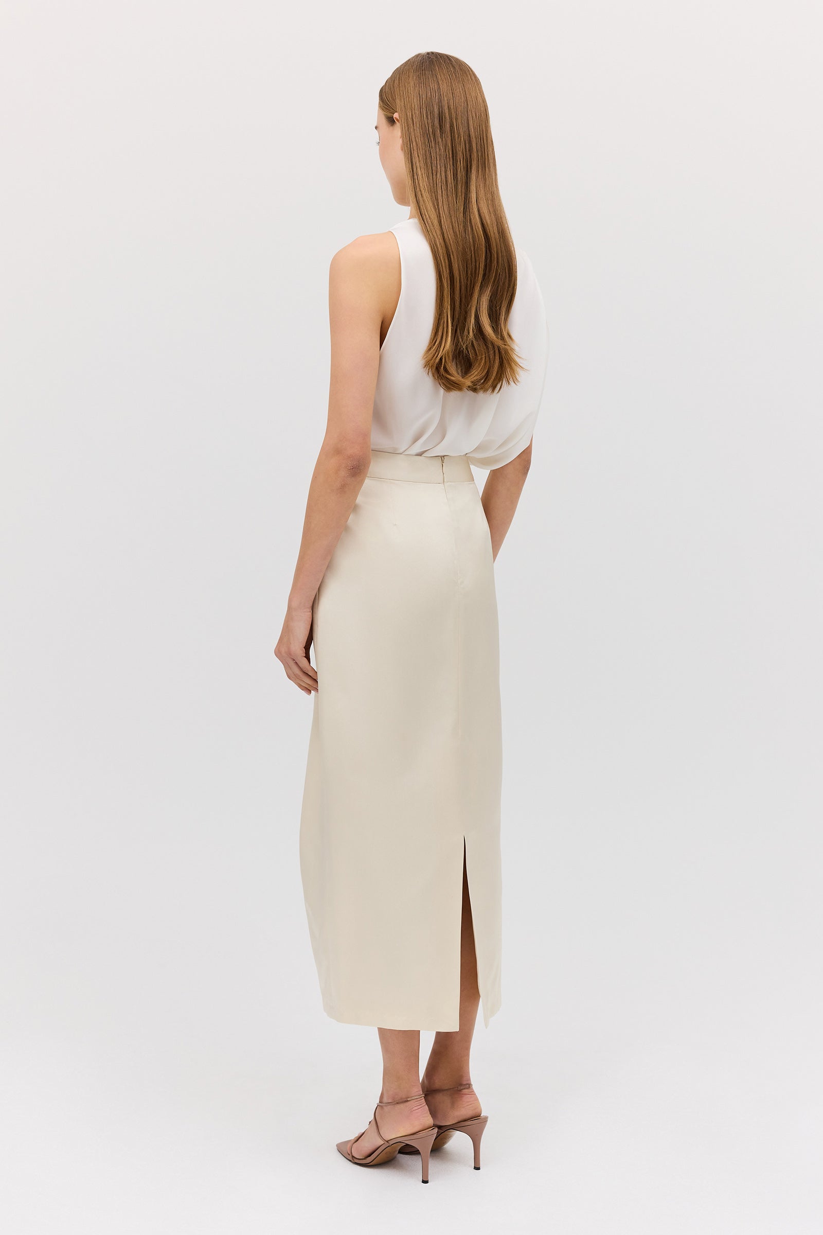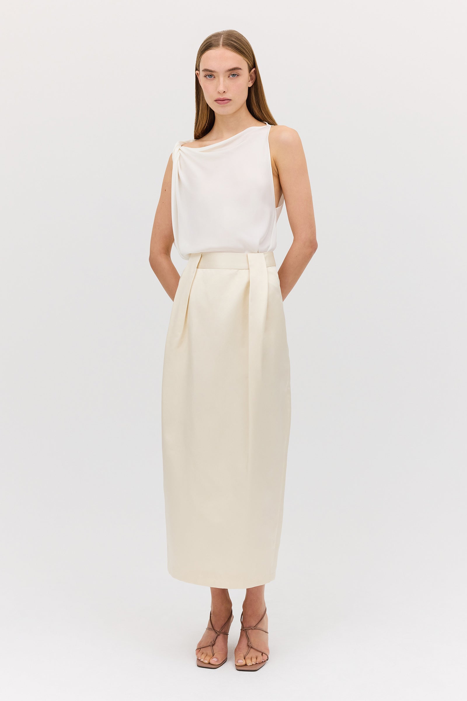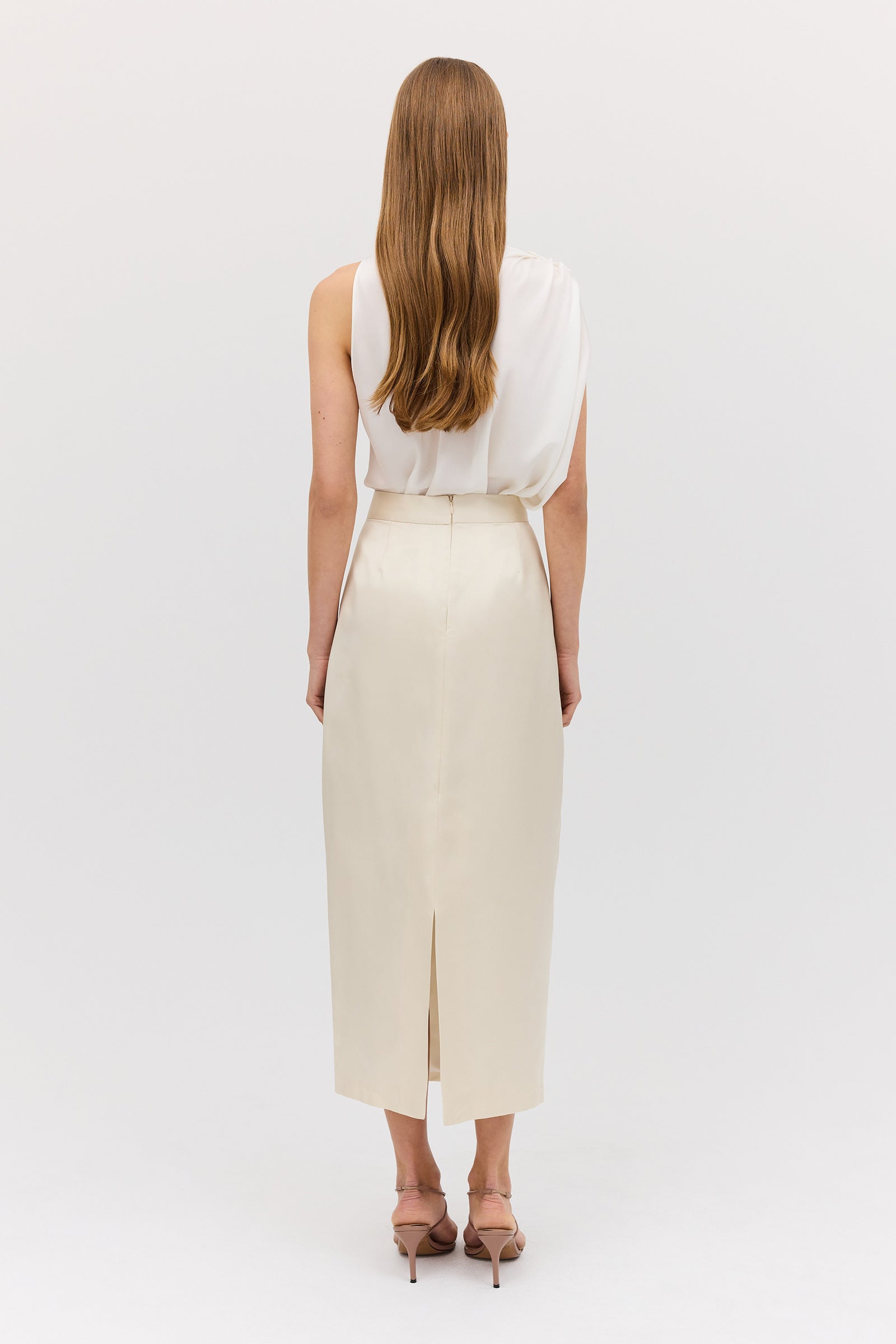 This delicate silk piece looks beautiful paired with cream silk separates, like the Cream Wool Caress Skirt, or for a chic evening look, the Cream Satin Affinity Skirt. Anchor the delicate nature of the Ivory Silk with a tailored trouser in a textural, earthy tone.