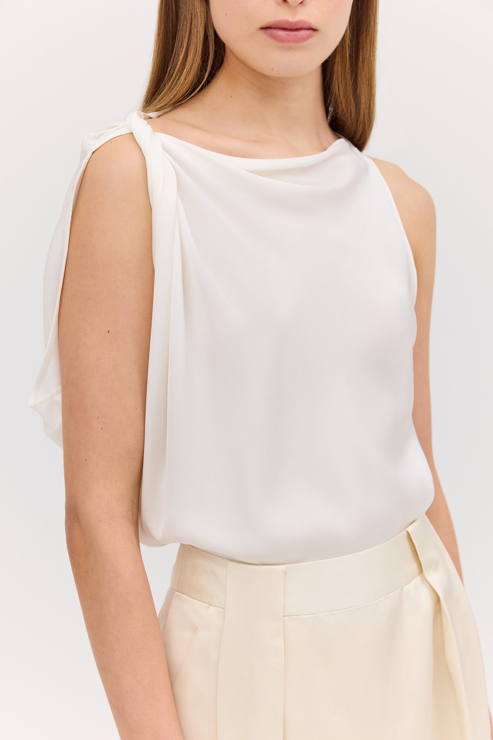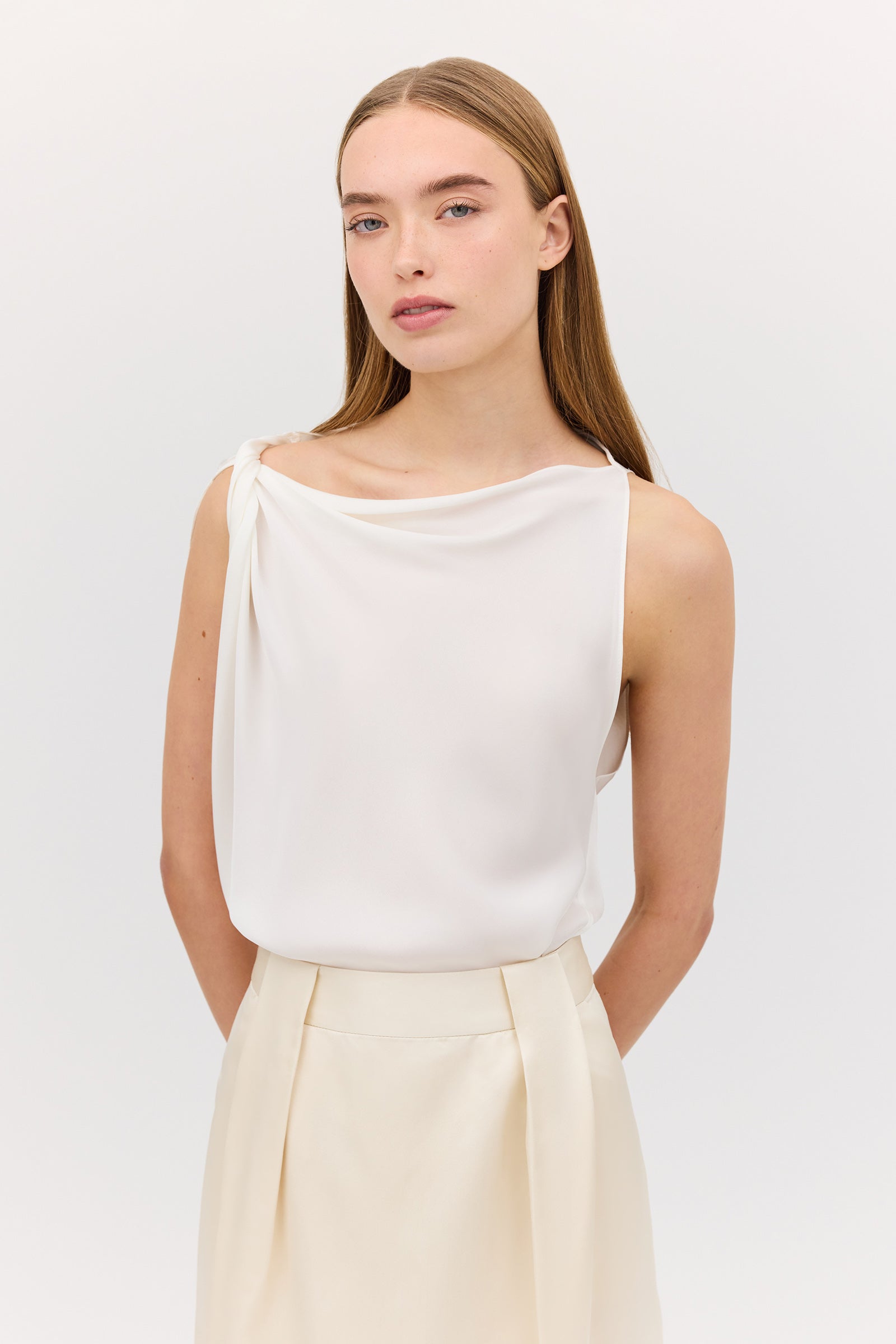 Introducing the Roma Top, we're so excited for you to meet her! Based on our best-selling Roma gown, this universally flattering shape allows Bianca's signature draping style to shine. Featuring a boat neckline, the liquid-like satin fabric falls and flows to allow ease of movement and a sense of breath and air. A versatile piece, this top may also be worn pulled down off the shoulder.