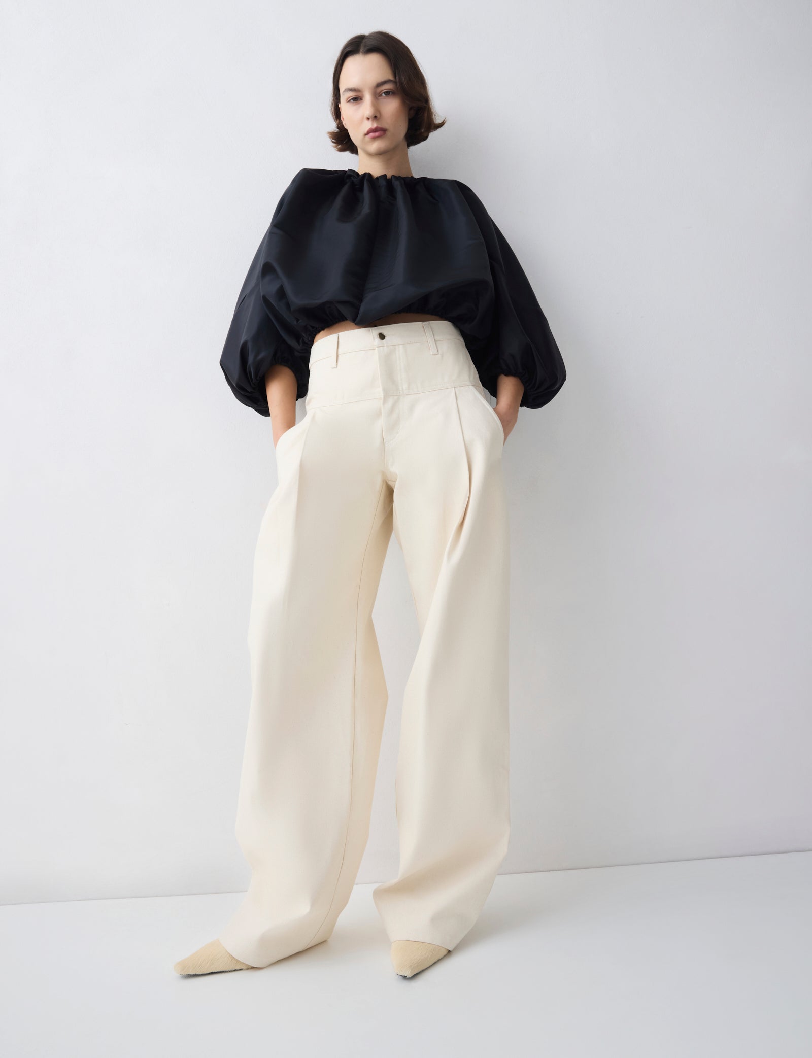 WHITE COTTON SHIRTING BYSTANDER TOP