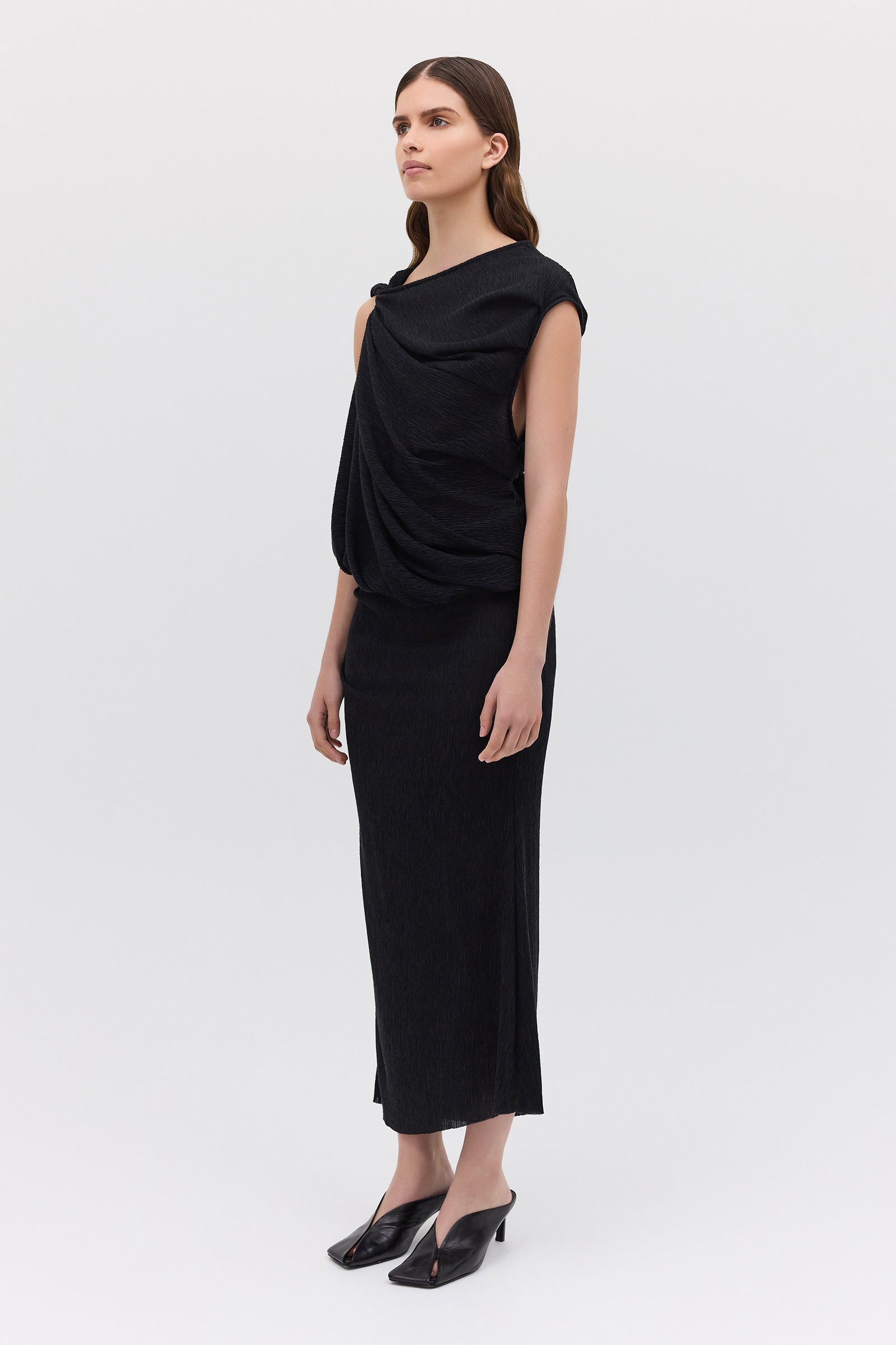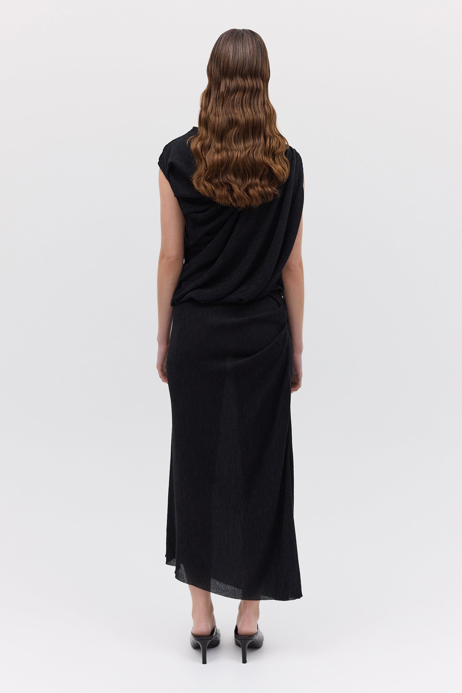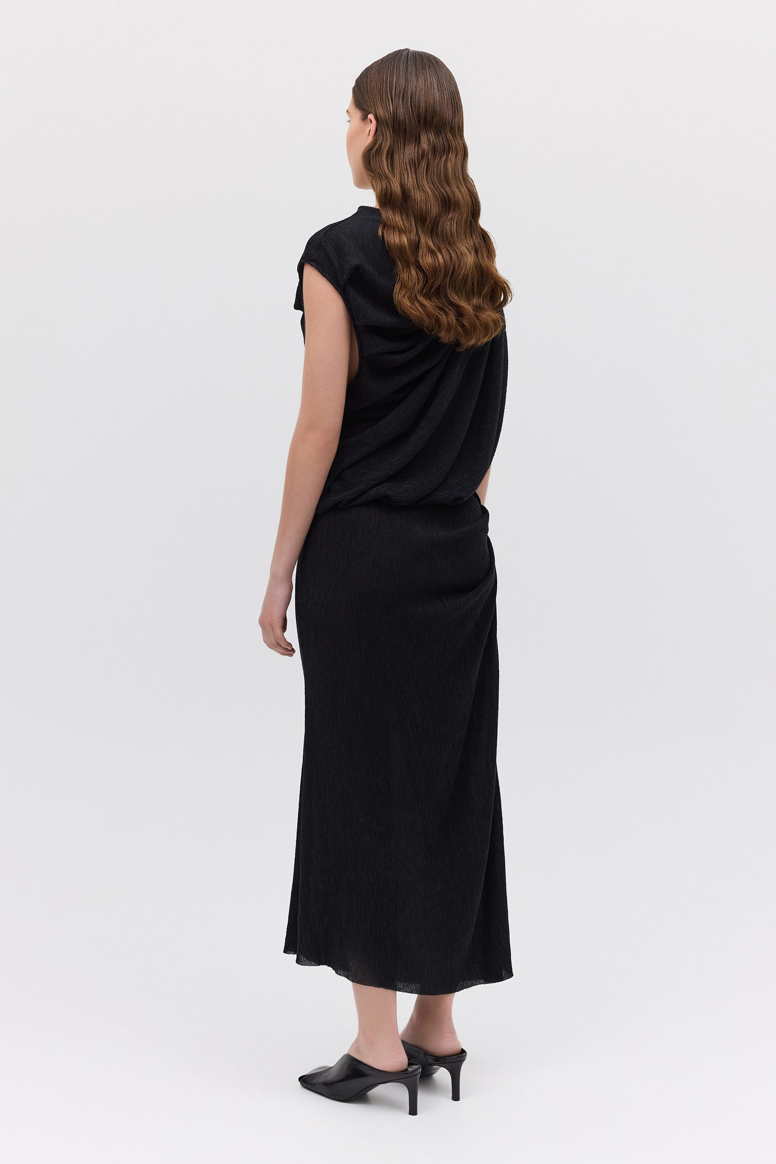 BLACK CRINKLE TUMBLE DRESS