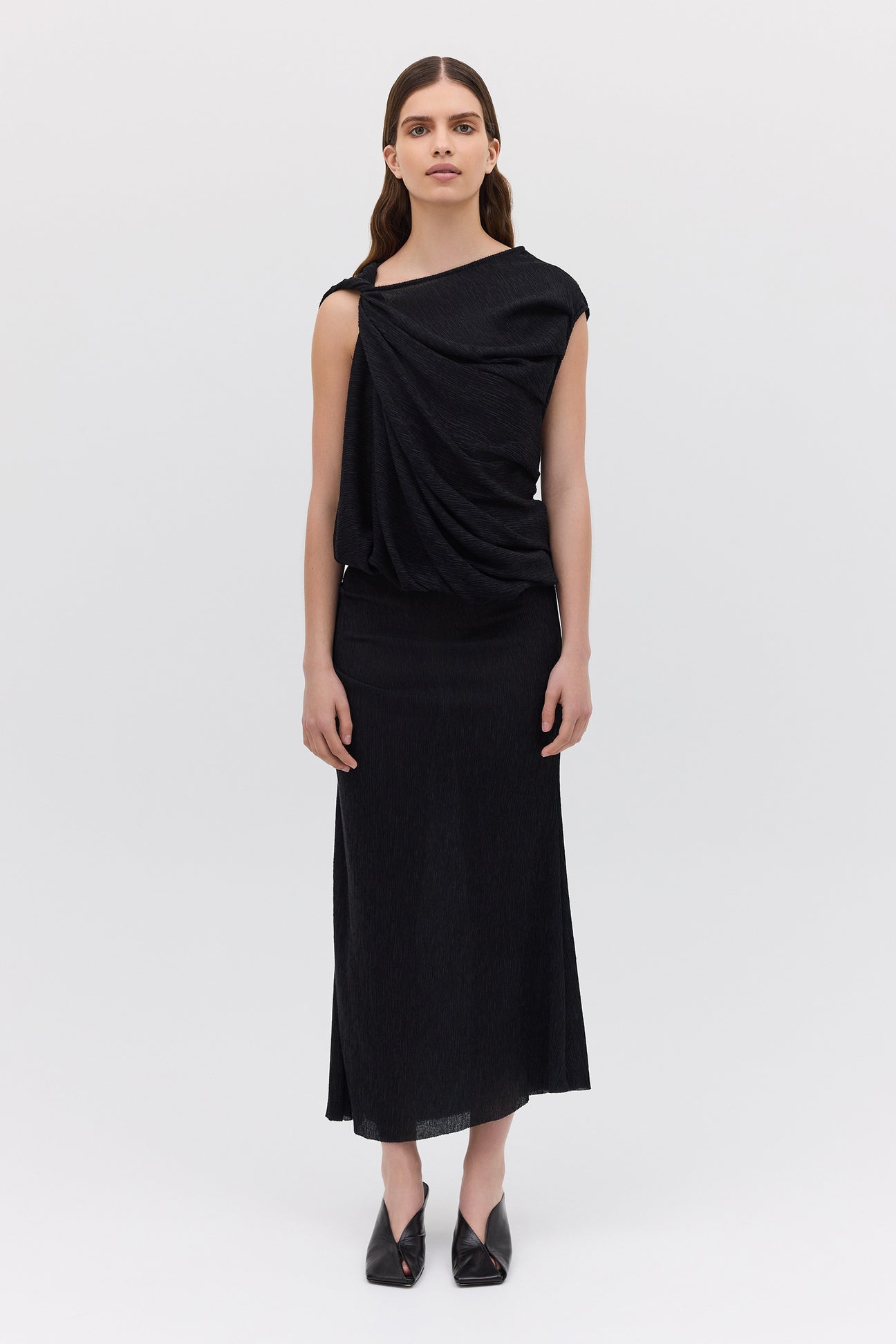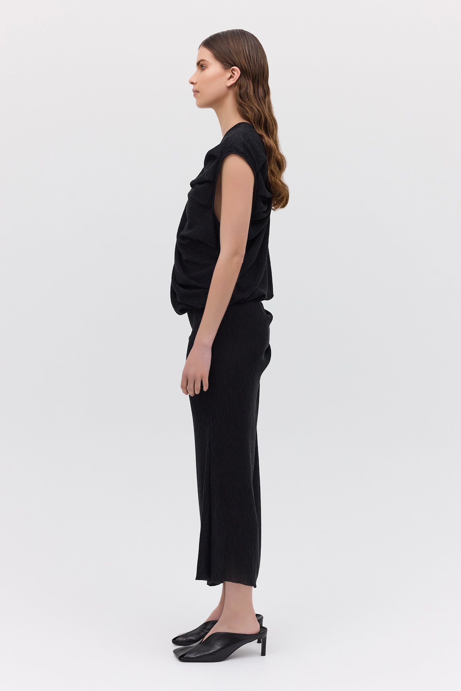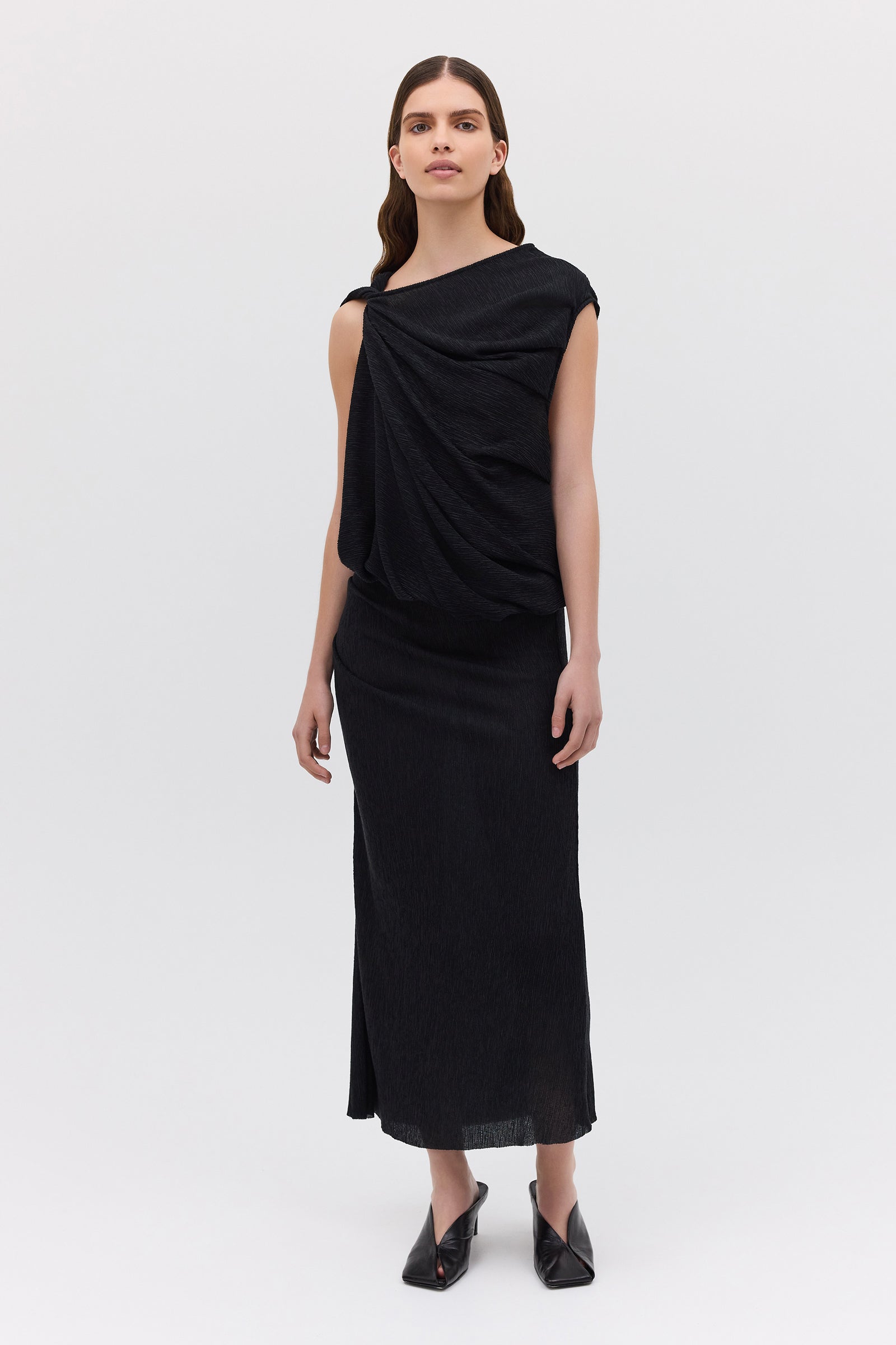 BLACK CRINKLE TUMBLE DRESS
