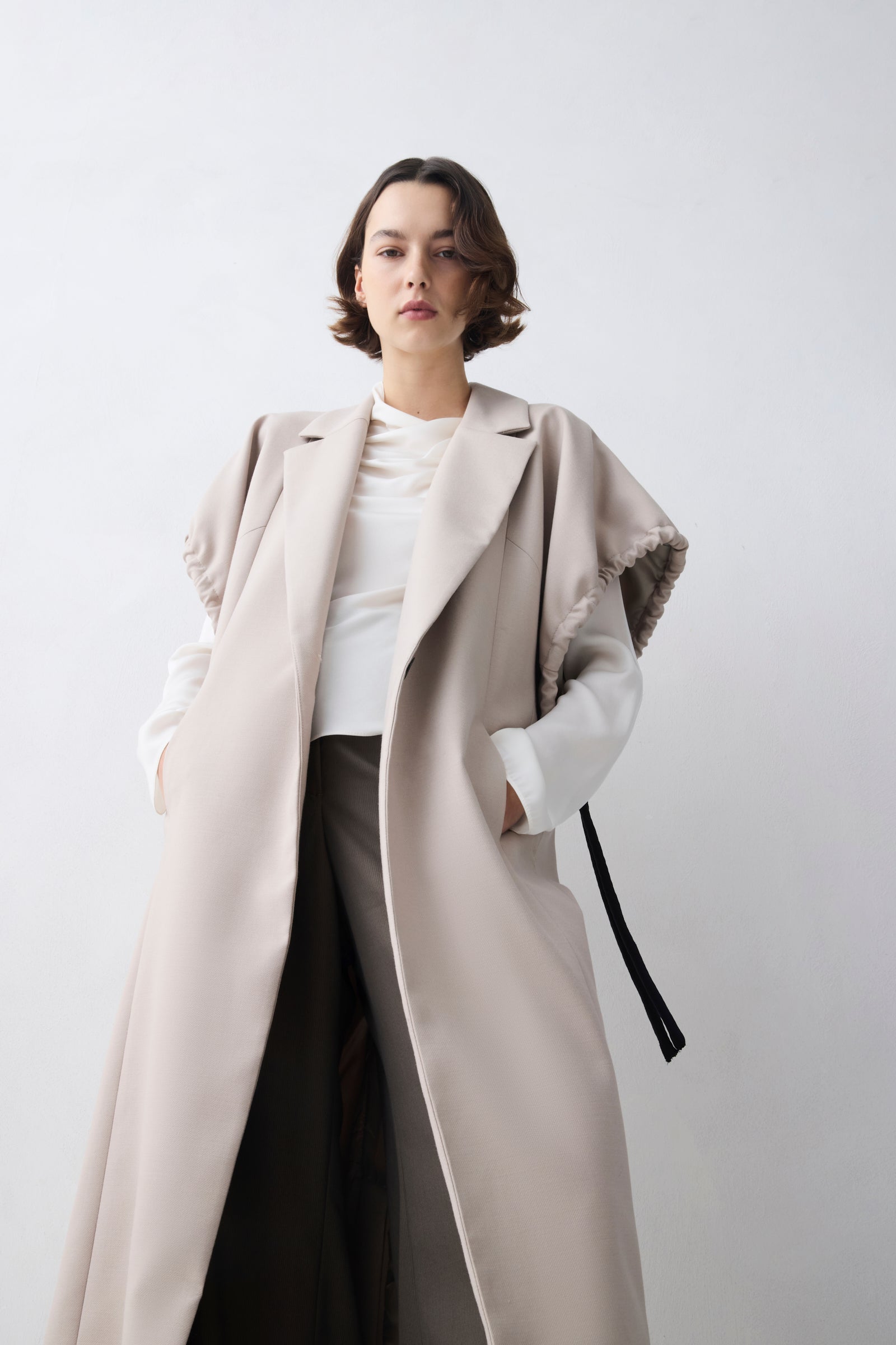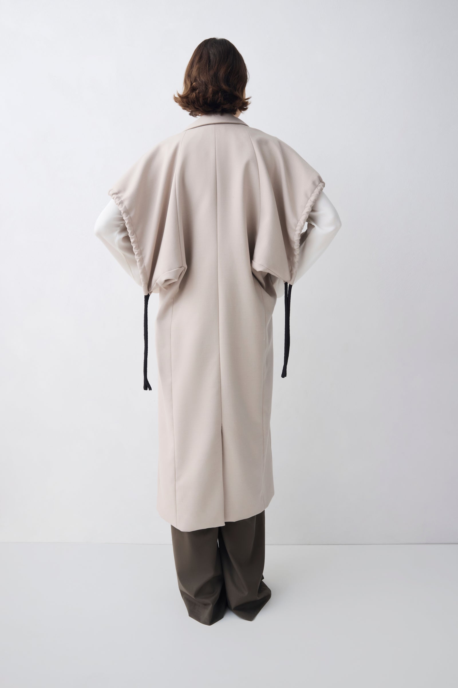- Elongated coat silhouette