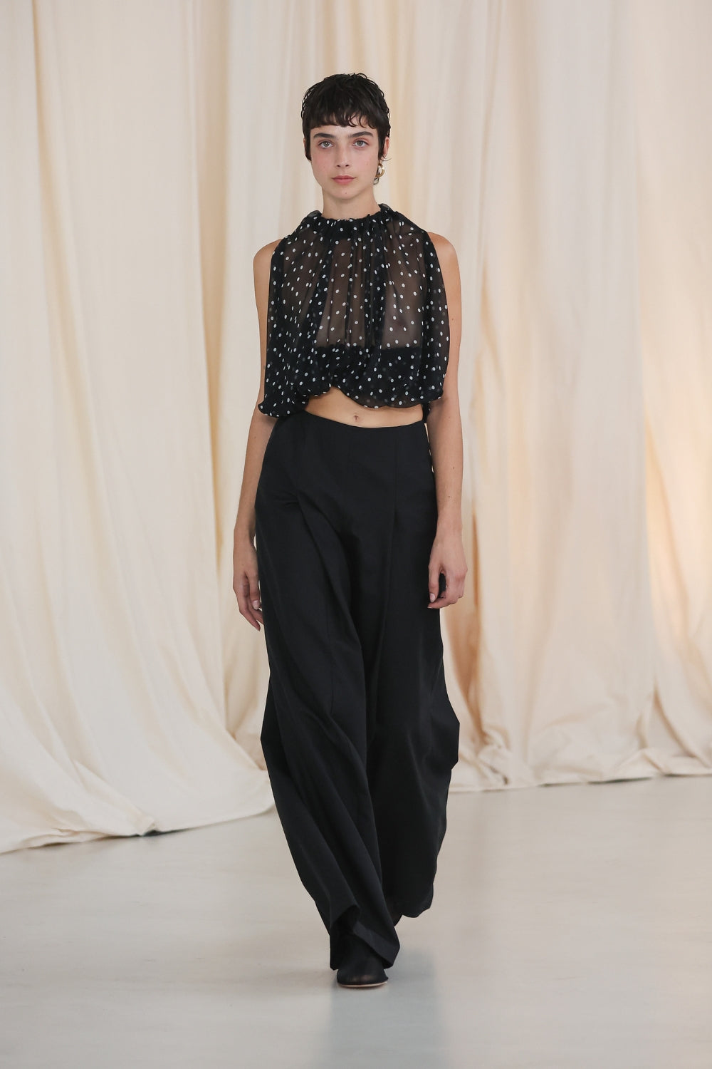 LOOK 9 - BLACK POLKA DOT SILK EMERGE TOP- AVAILABLE NOW. Shop here.