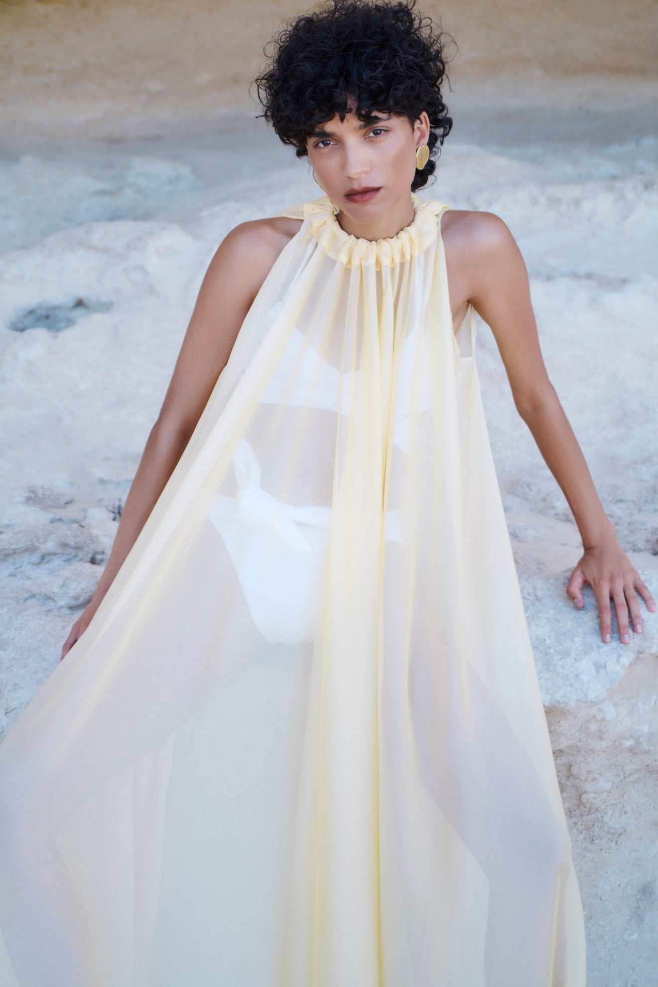 CHAMPAGNE LIQUID ORGANZA DECODE DRESS