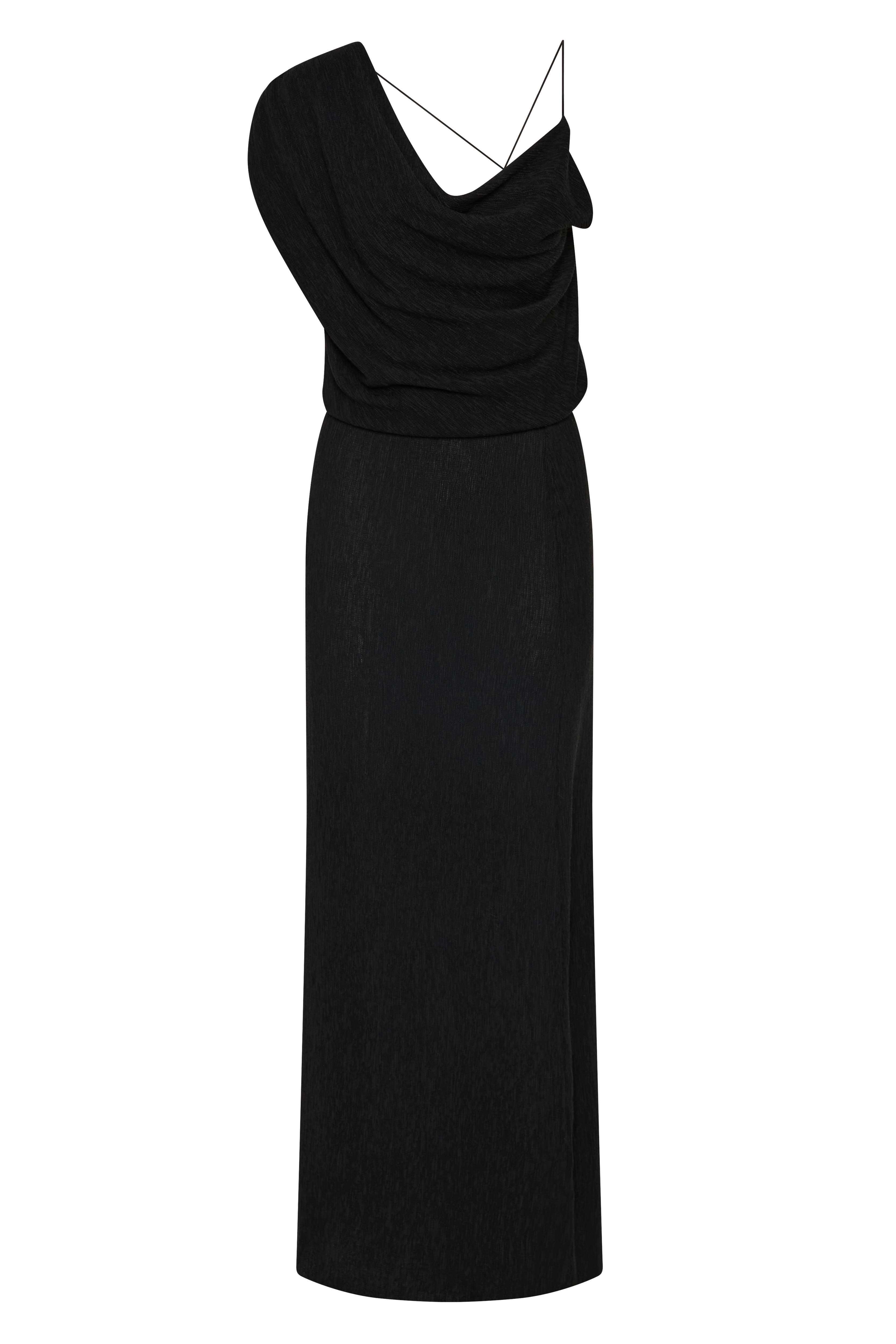 A new interpretation of our bestselling Liquid silhouette, now reimagined as a full-length dress in lightweight Japanese crinkle. Sculptural drape and soft asymmetry define the form - the cowl neckline falls effortlessly across the body, while the single strap and fluid folds create a sense of quiet drama.