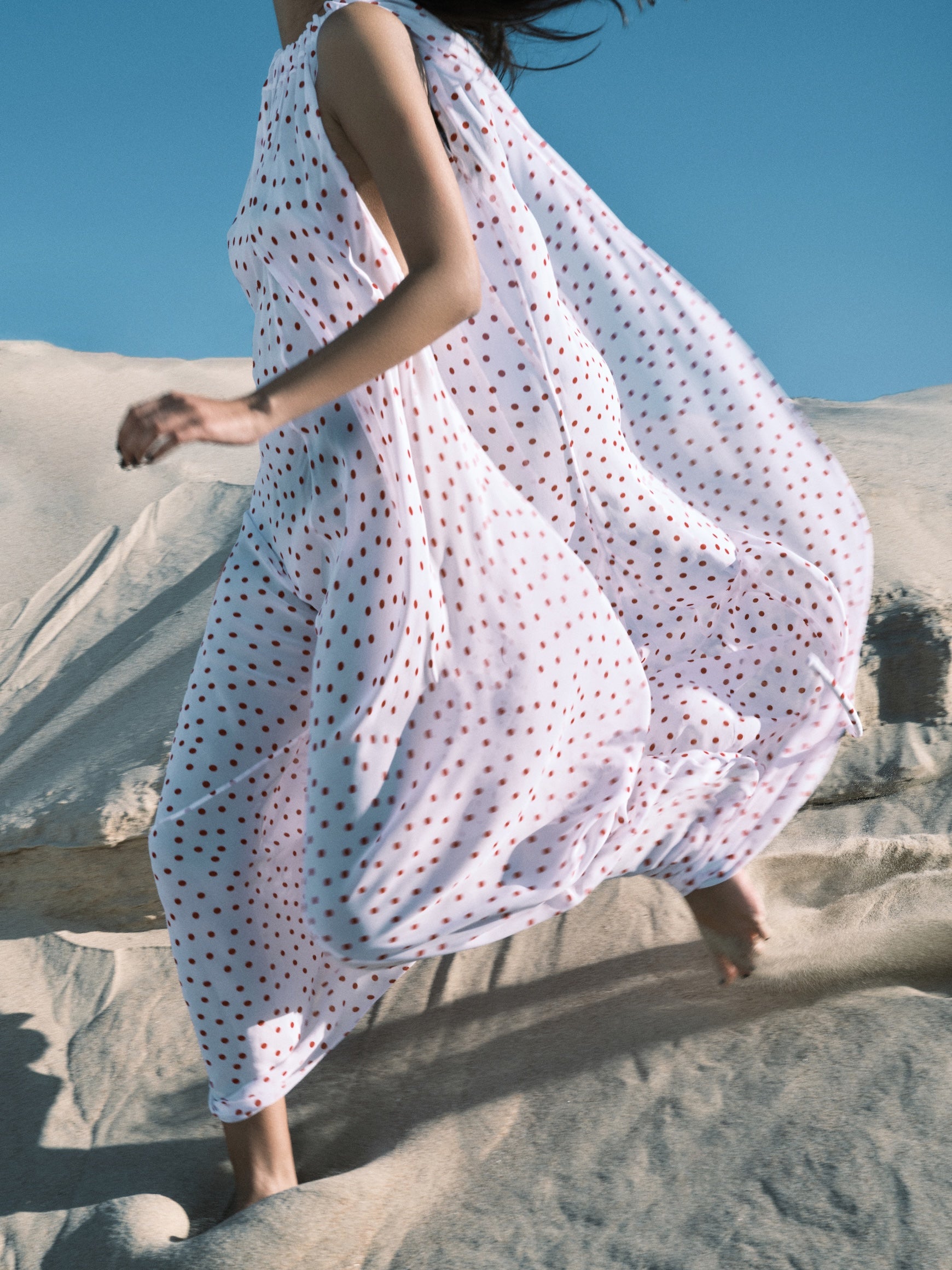 RED POLKA DOT CHIFFON TUMBLE DRESS