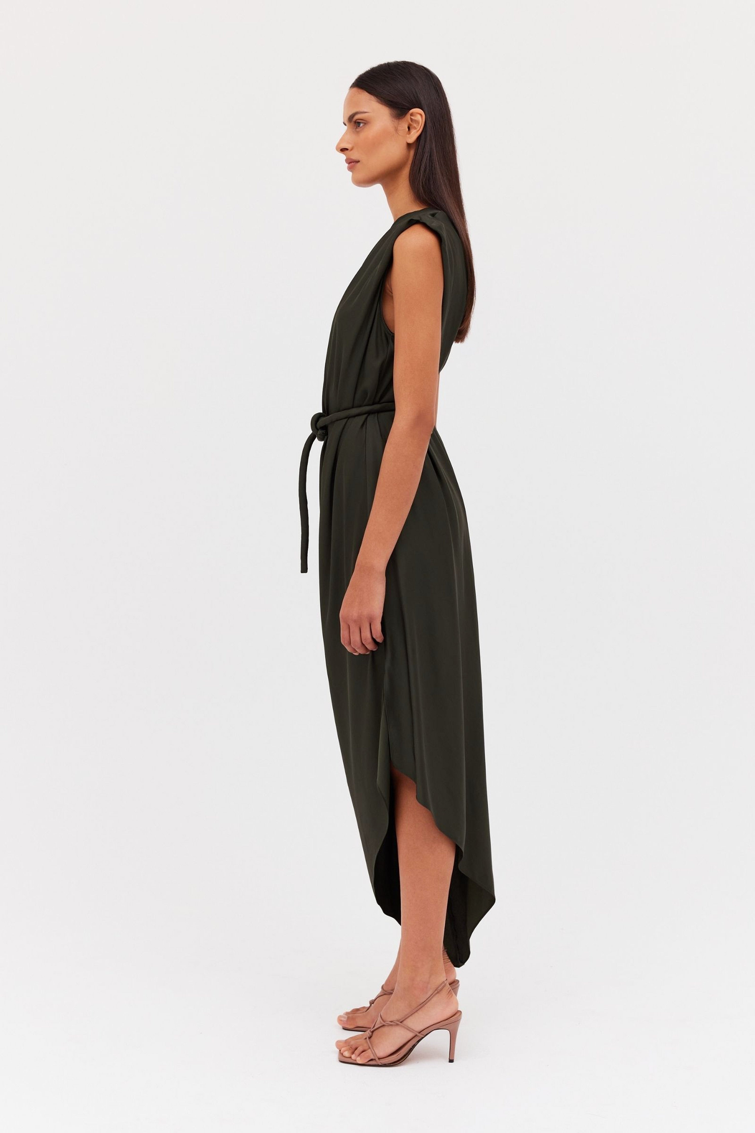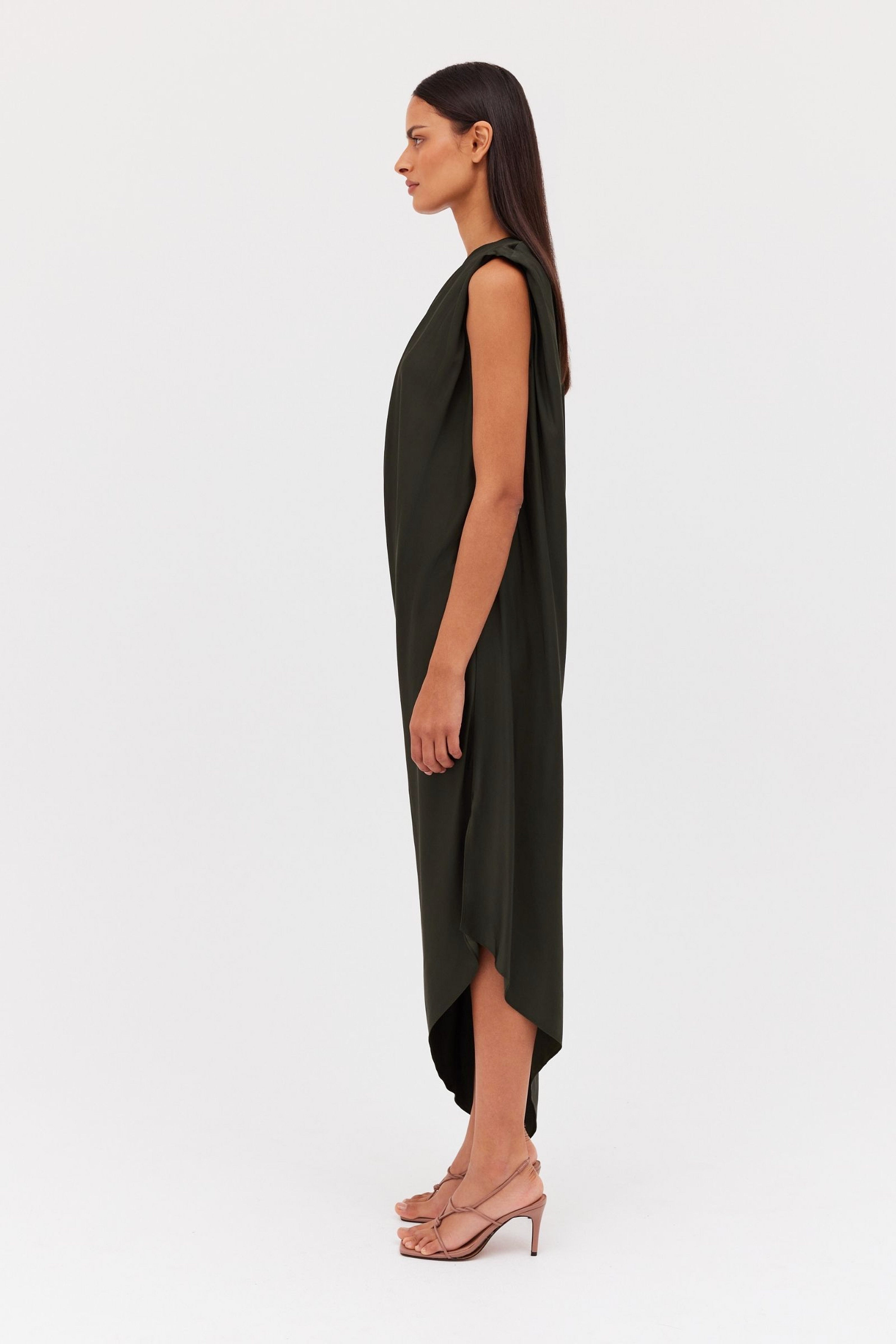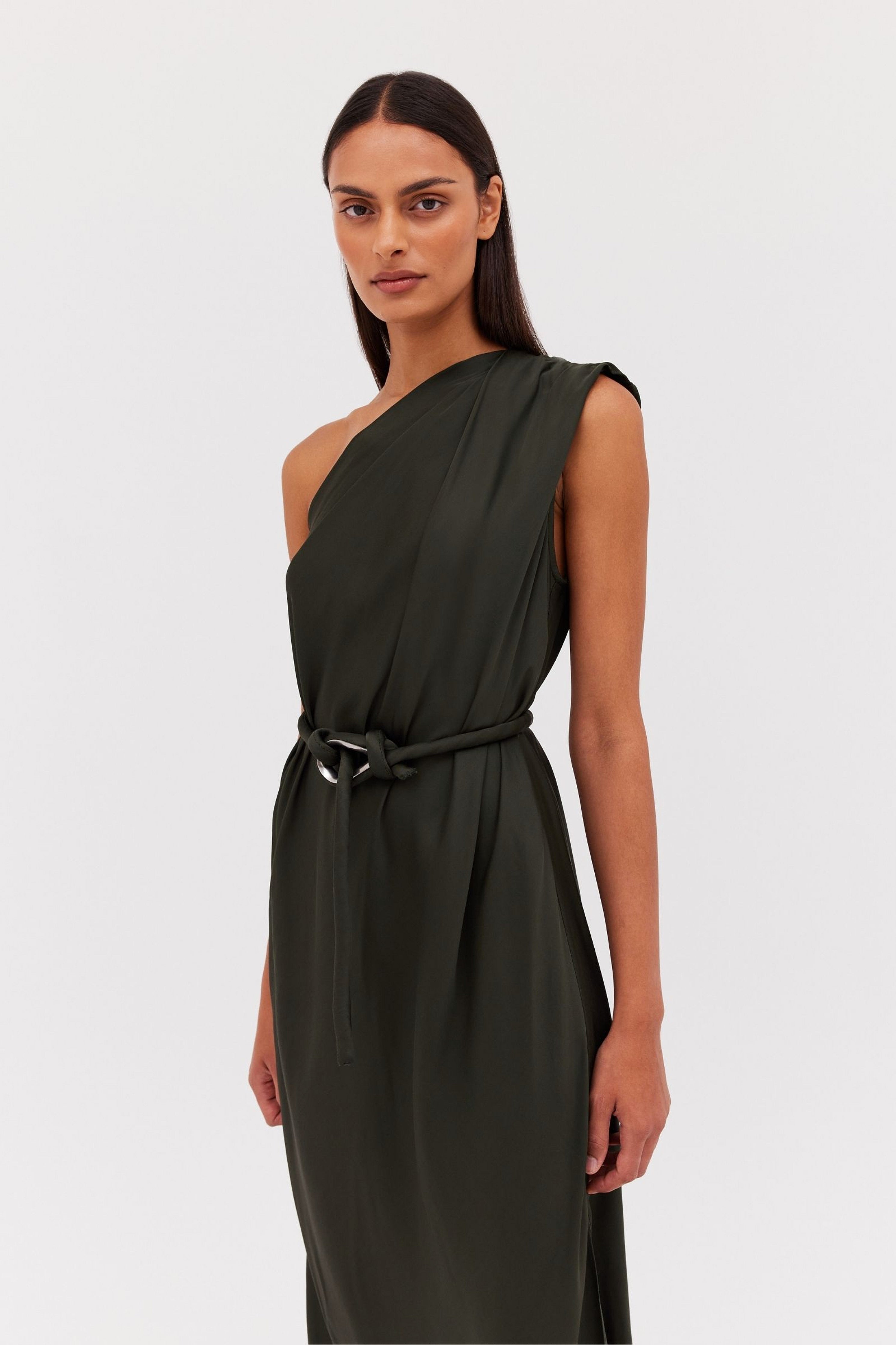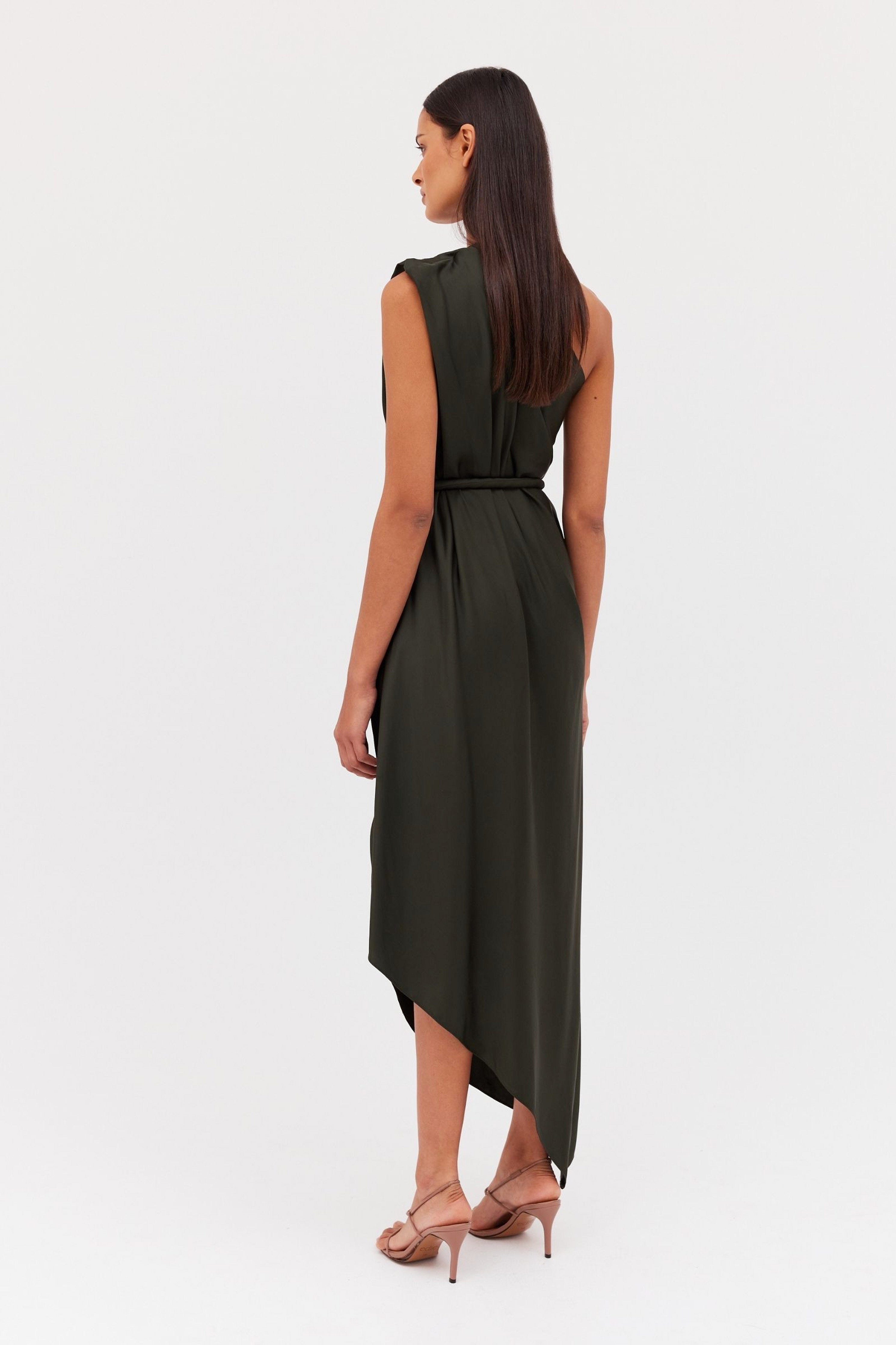 Effortless and understated chic. Cut from Satin Ecovero, this dress has a loose shape with artfully placed tucks on the shoulder. Temper it with a twisted rope matching soft waist belt.