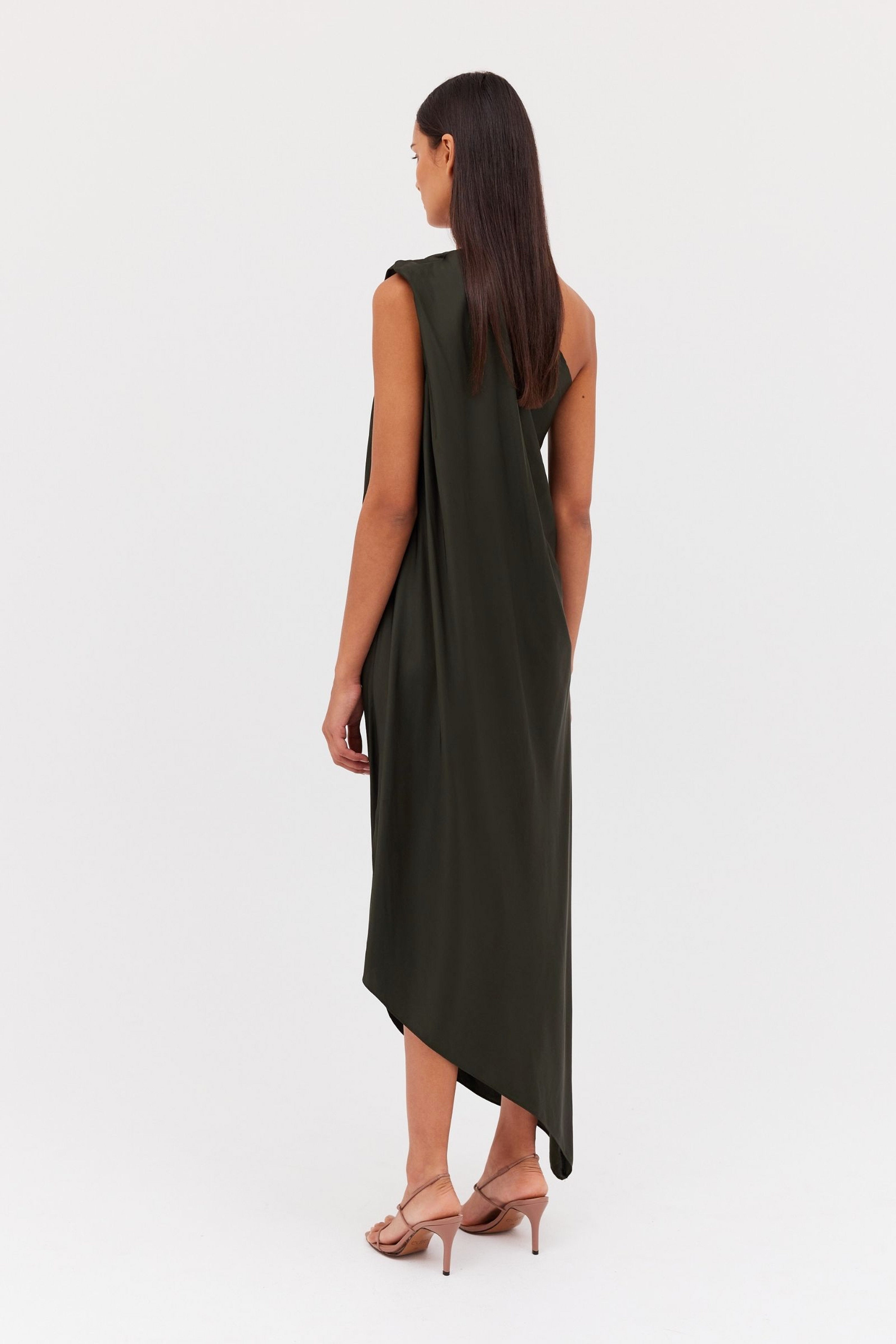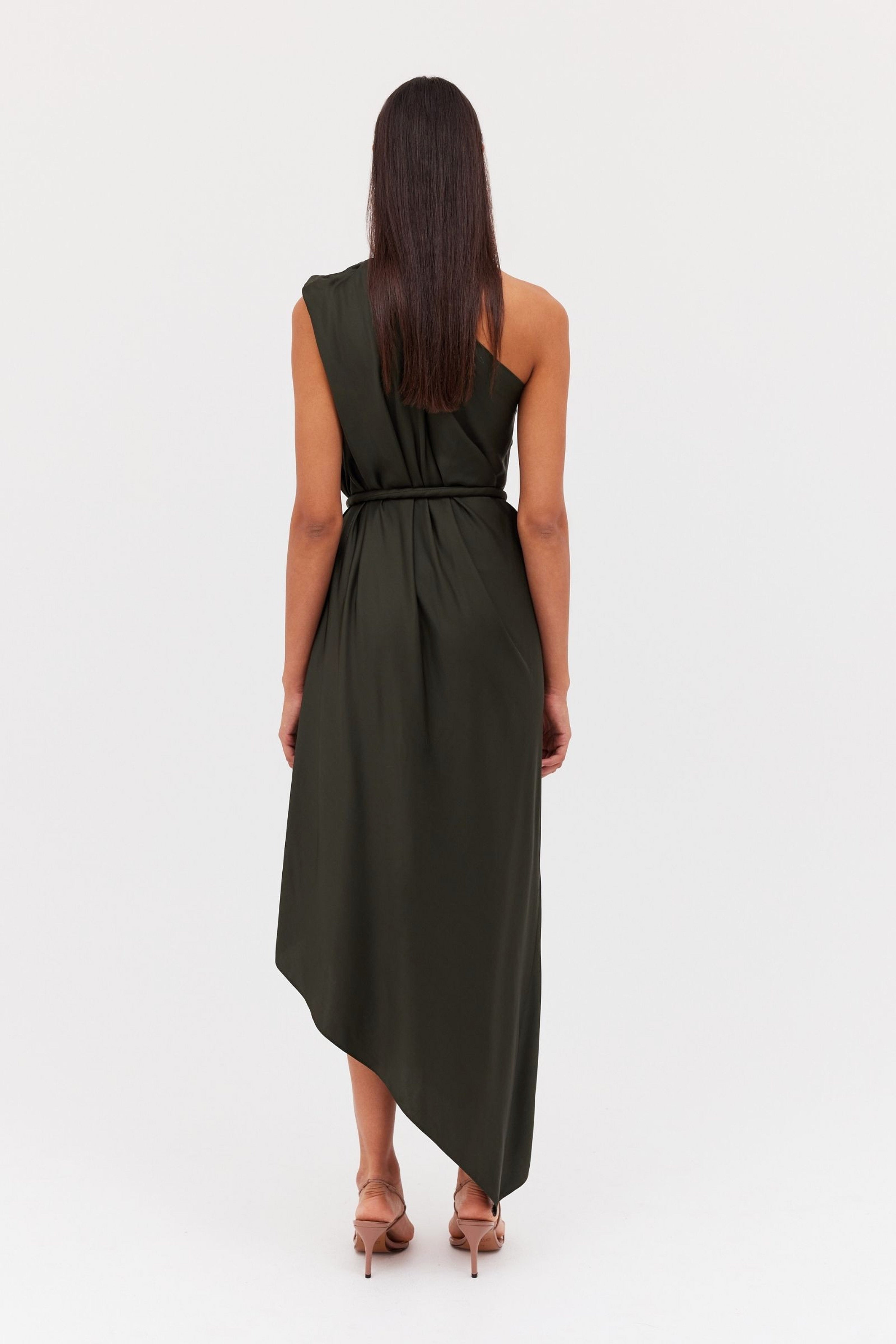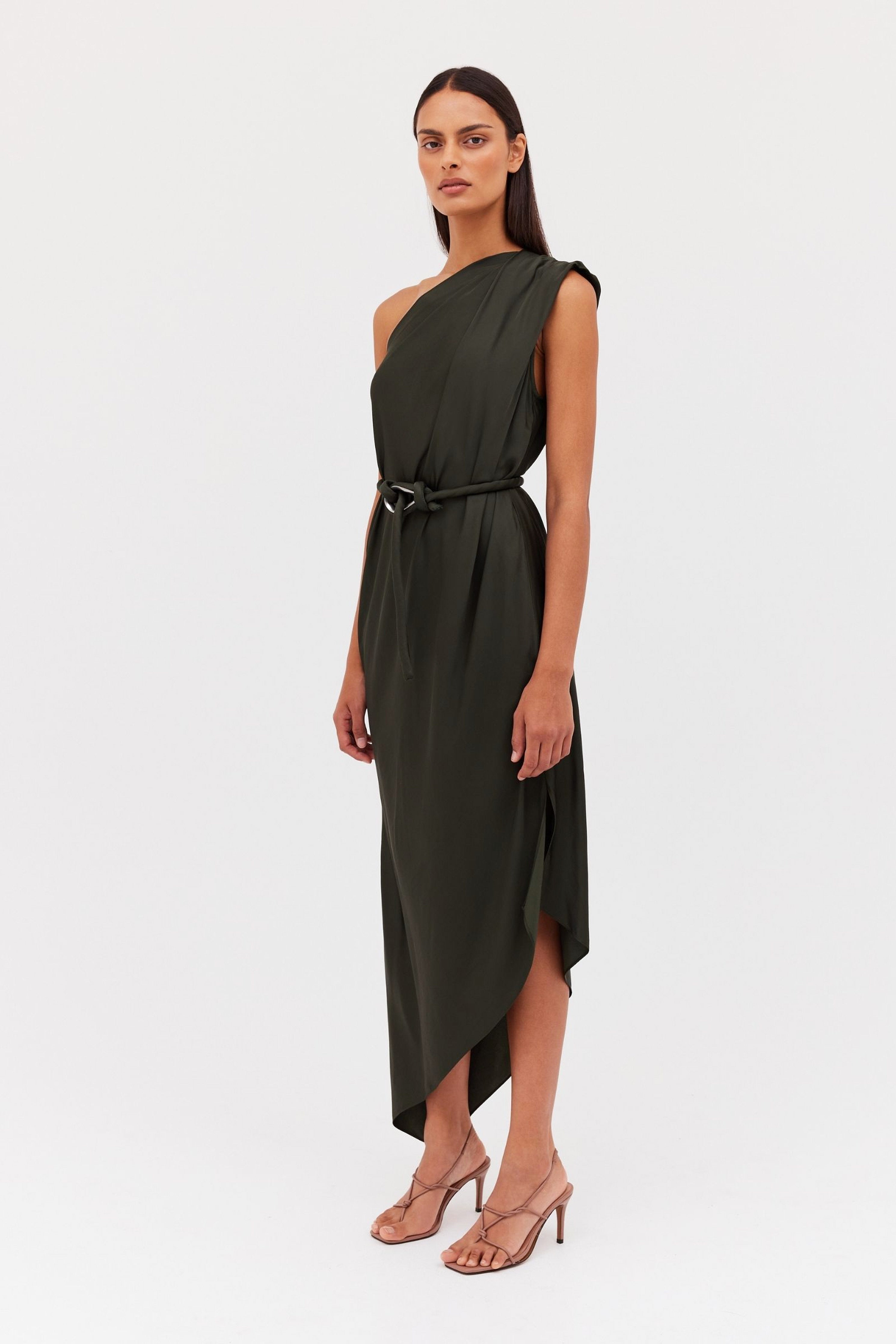 Effortless and understated chic. Cut from Satin Ecovero, this dress has a loose shape with artfully placed tucks on the shoulder. Temper it with a twisted rope matching soft waist belt.