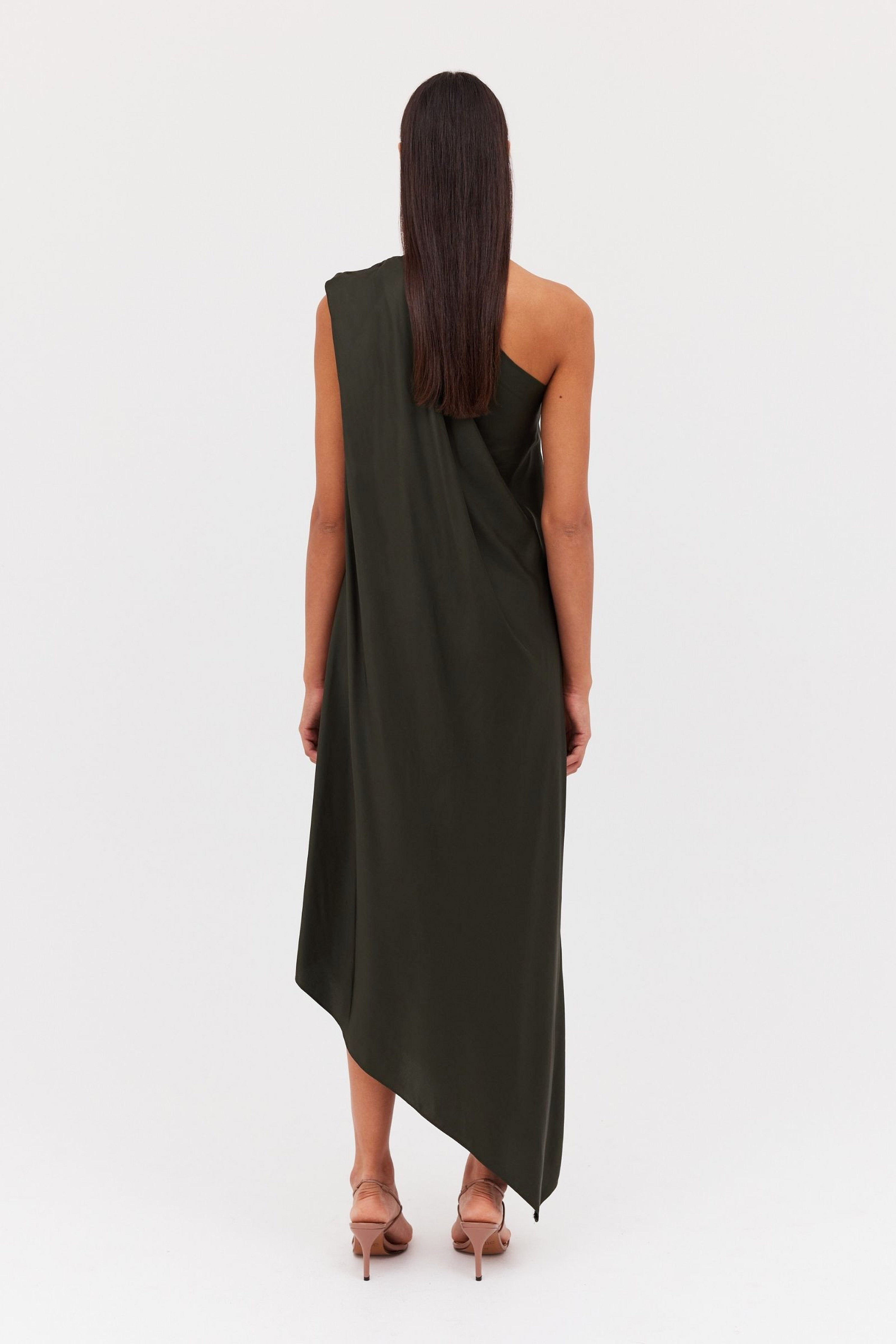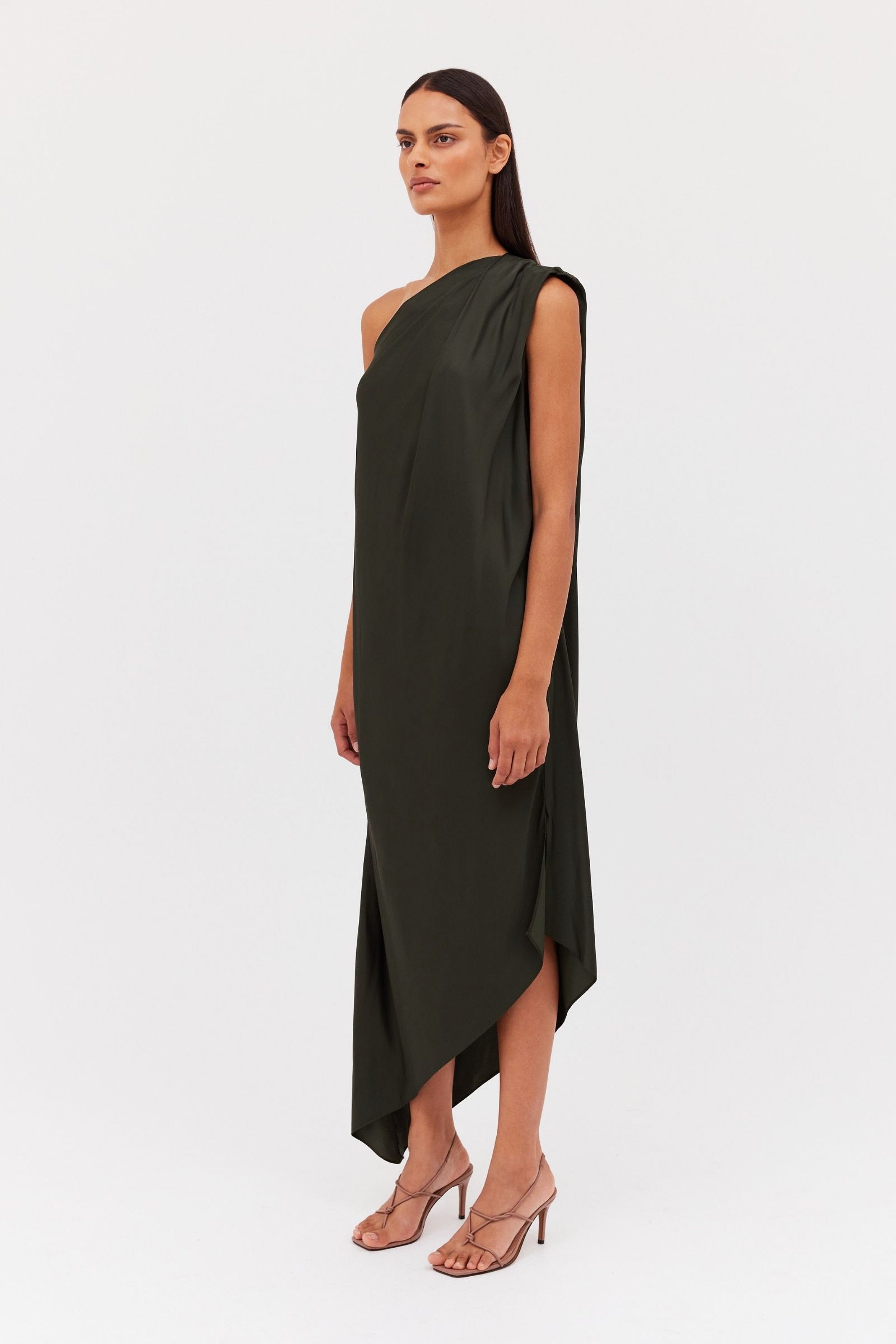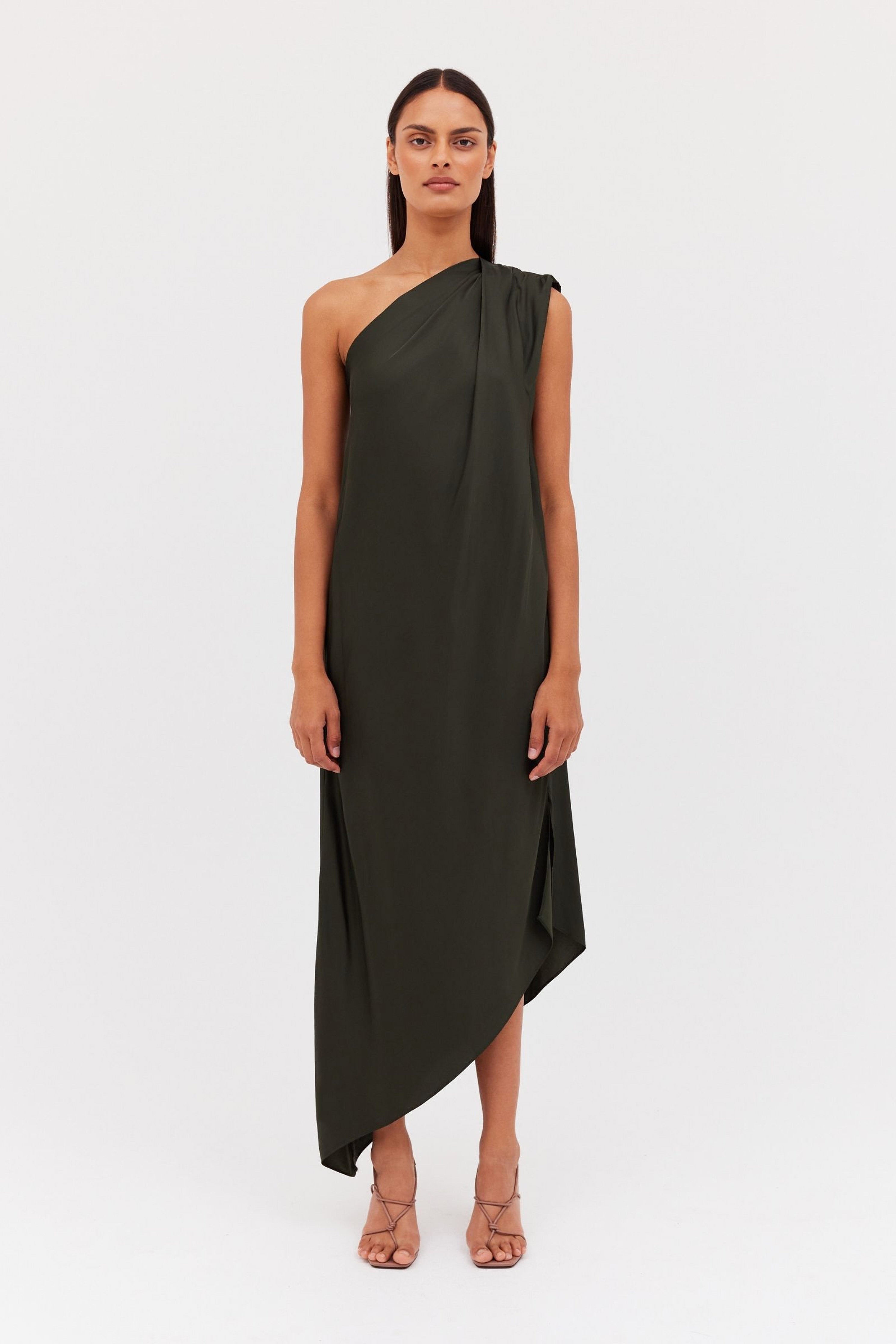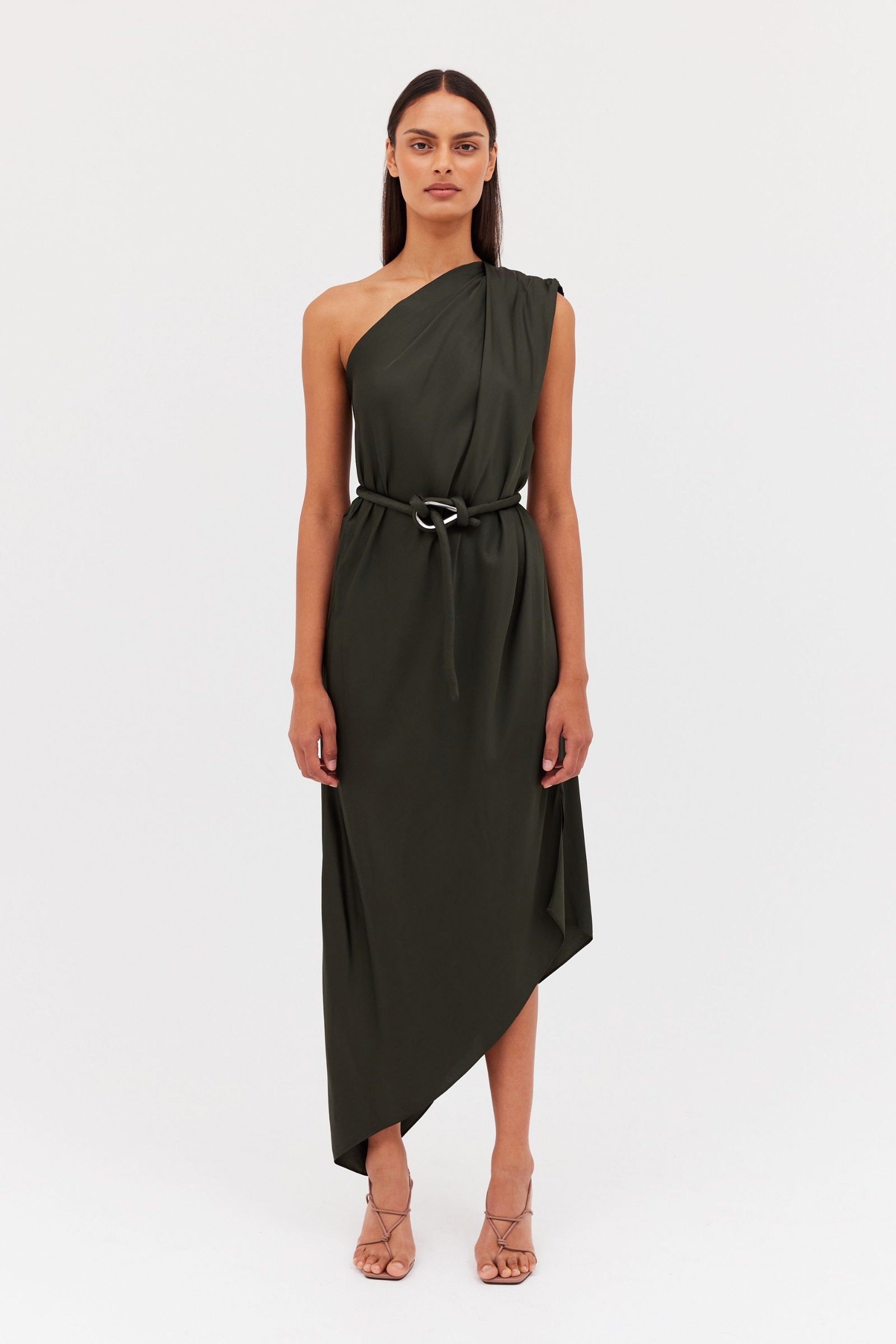Effortless and understated chic. Cut from Satin Ecovero, this dress has a loose shape with artfully placed tucks on the shoulder. Temper it with a twisted rope matching soft waist belt.