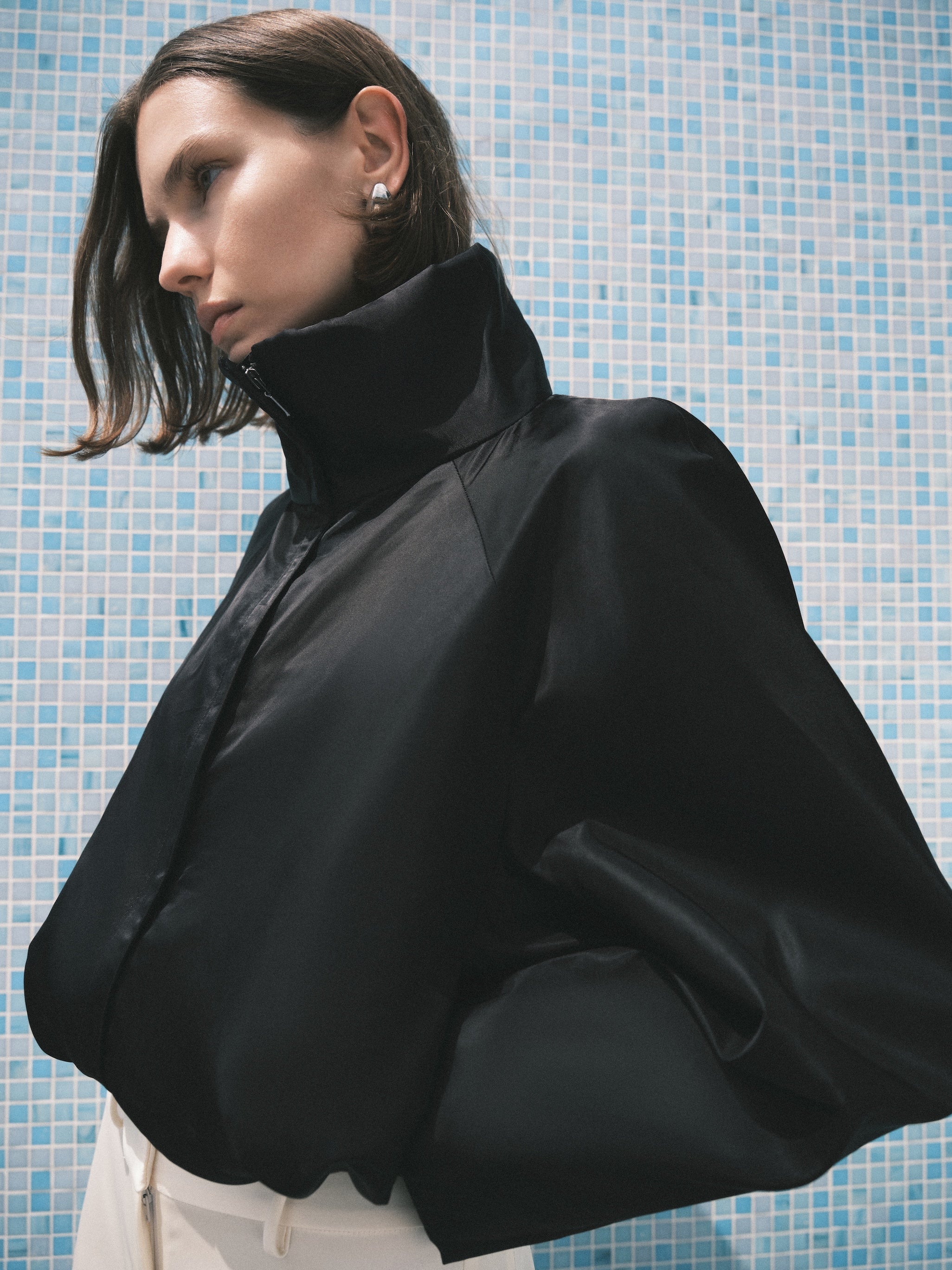 BLACK SATIN SUITING CAMPBELL BOMBER