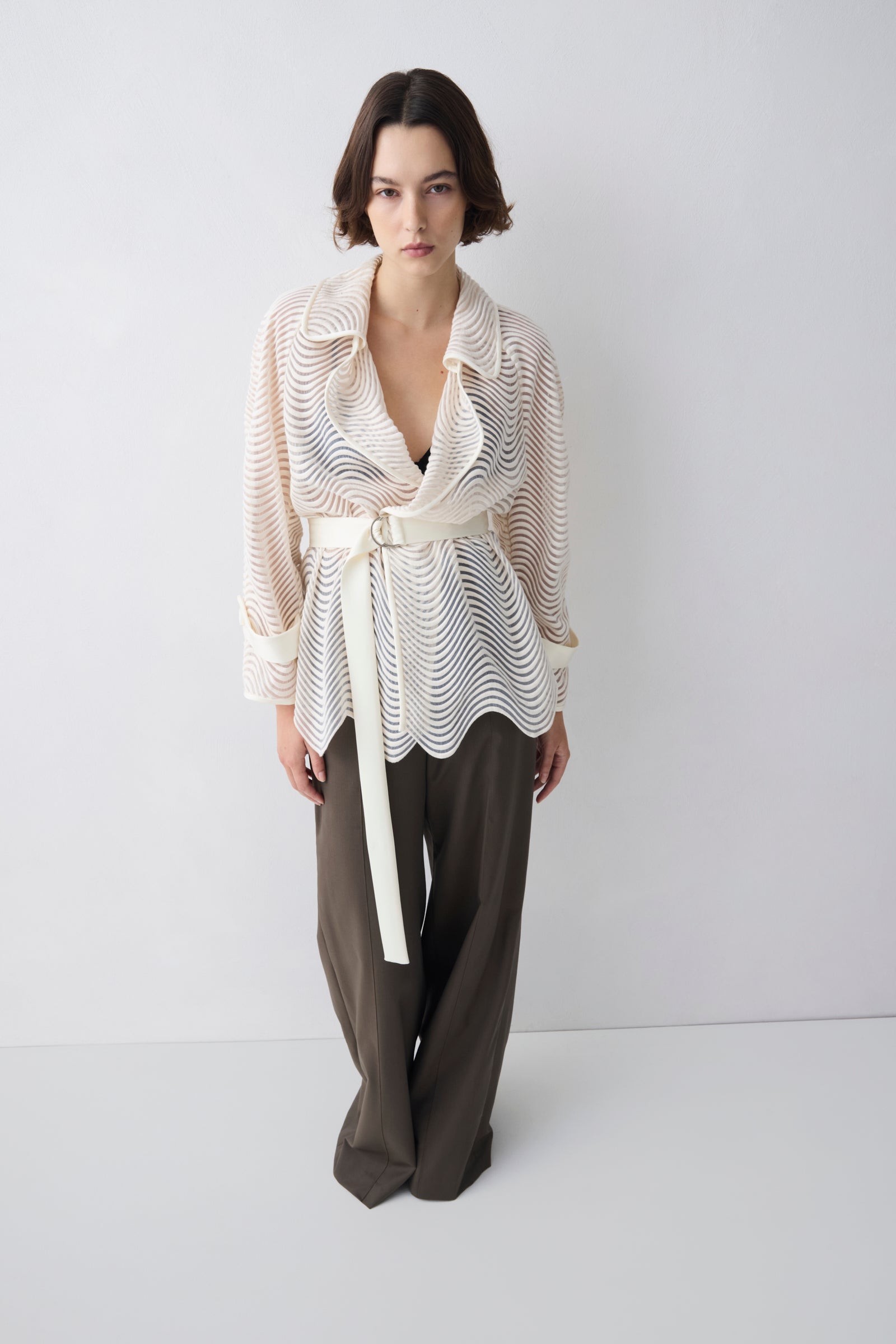 IVORY SCALLOPED LACE HENRI CROPPED TRENCH