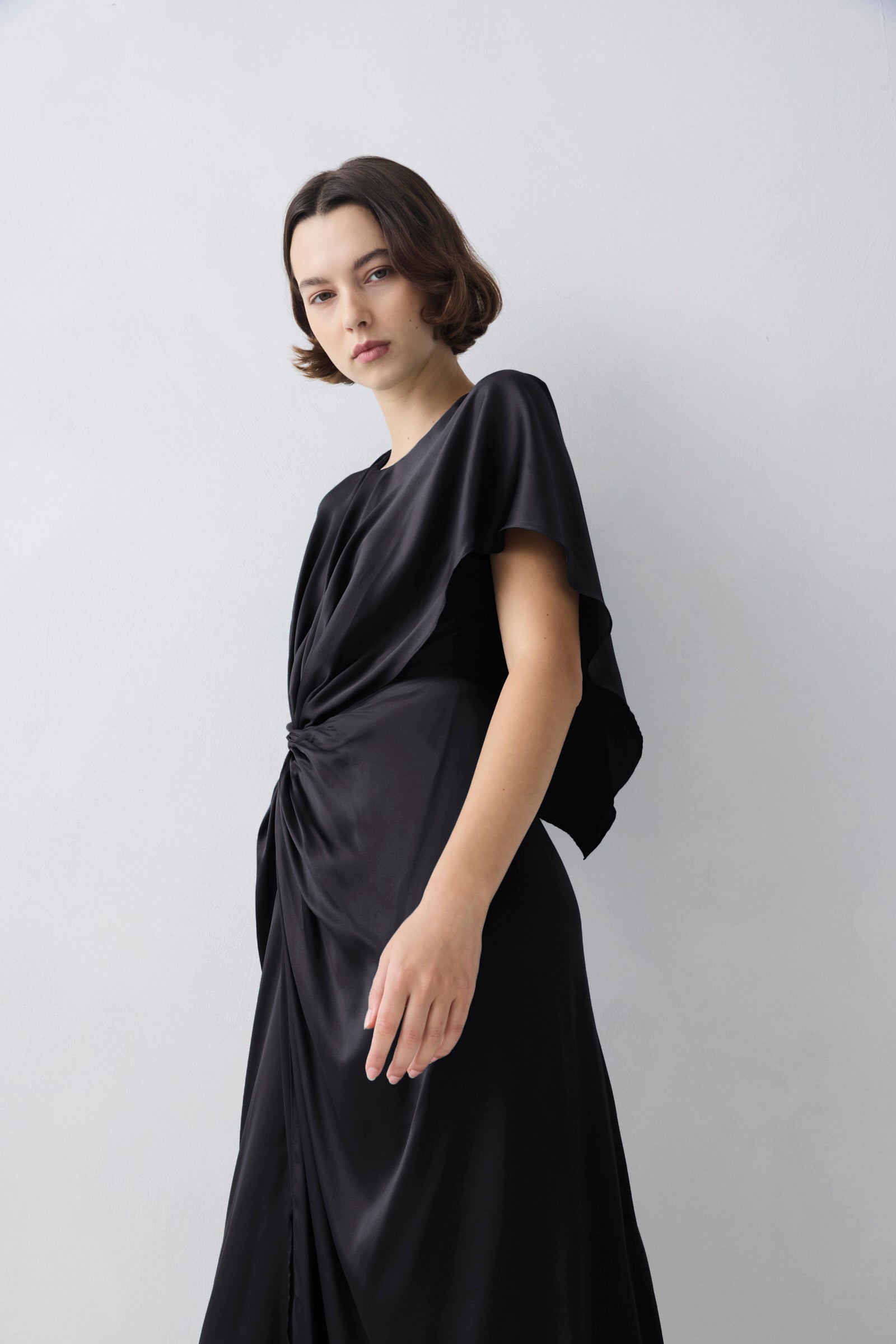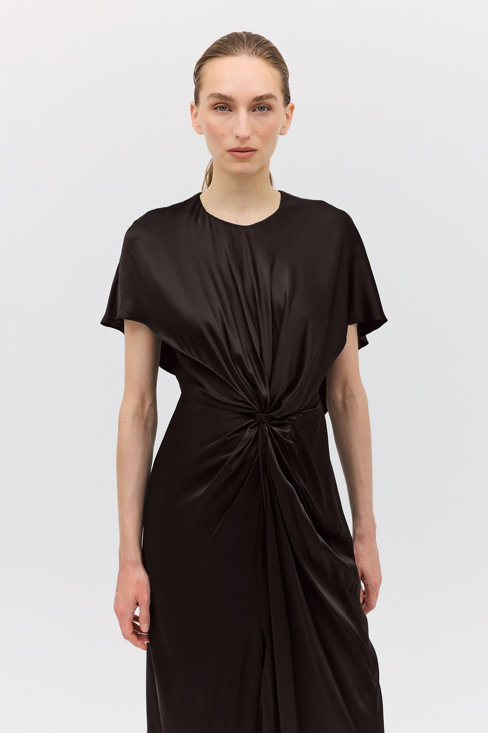 CHOCOLATE SILK SATIN ILLUSIONIST DRESS