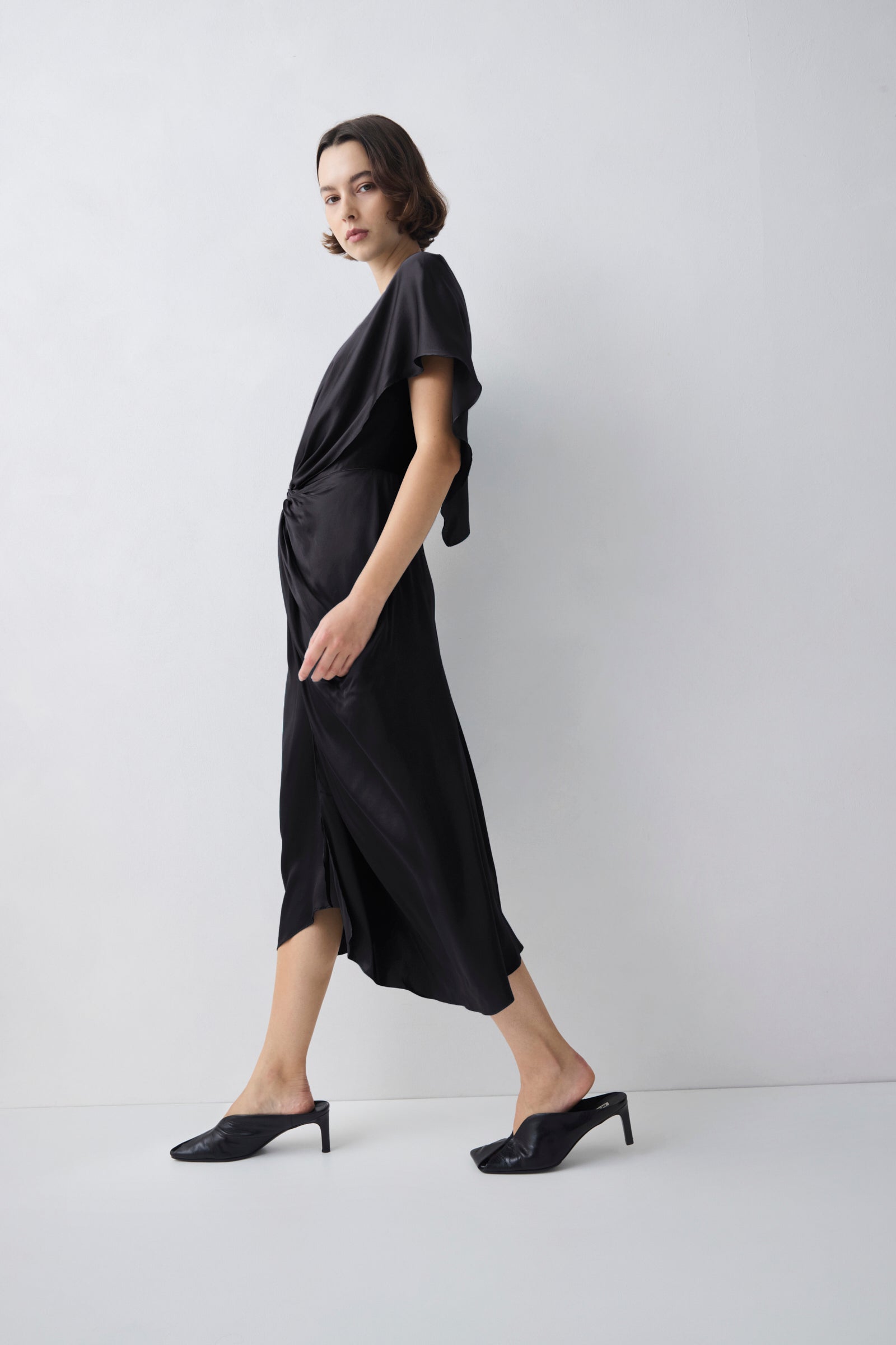 BLACK POLKA DOT SILK VALENCIA DRESS