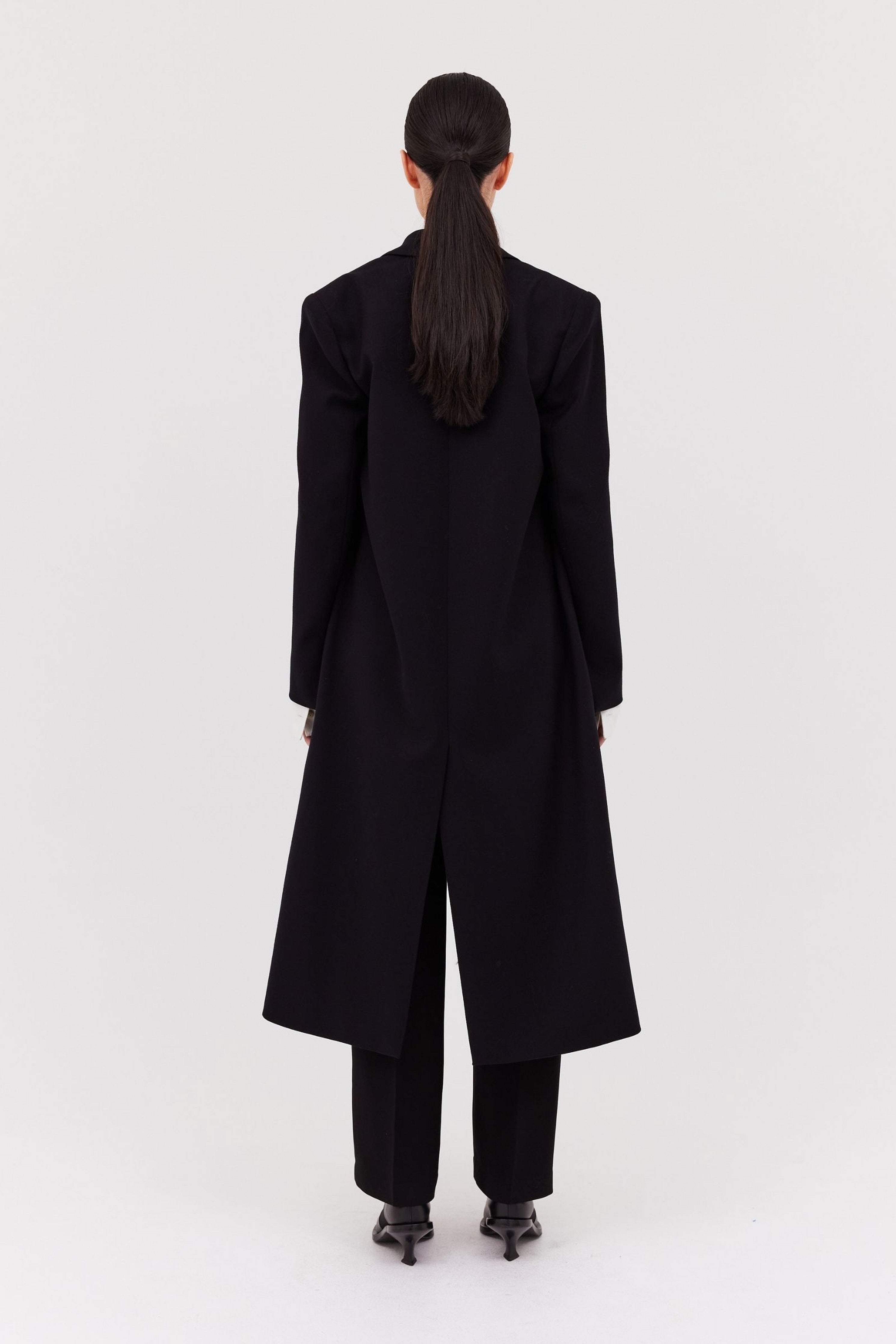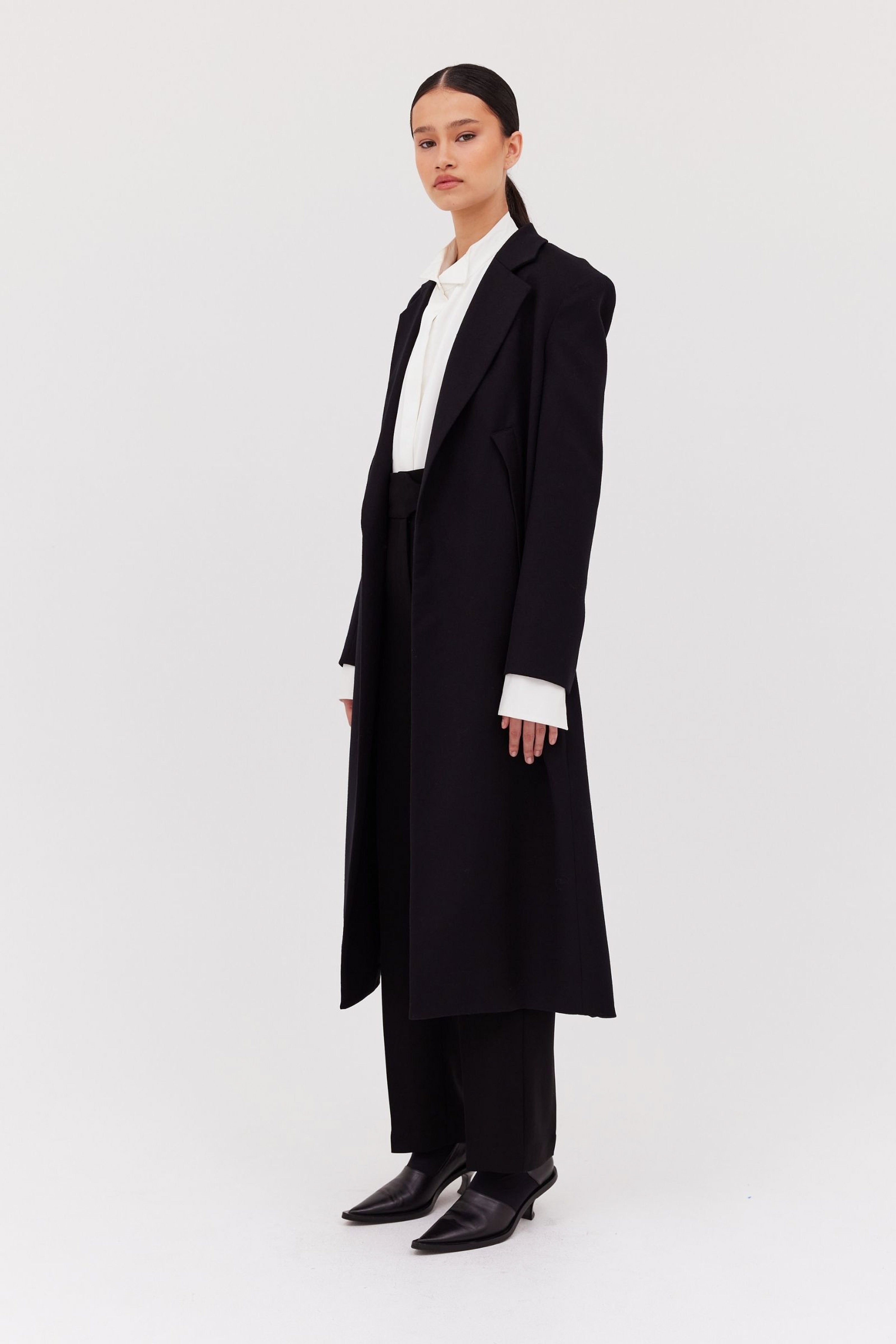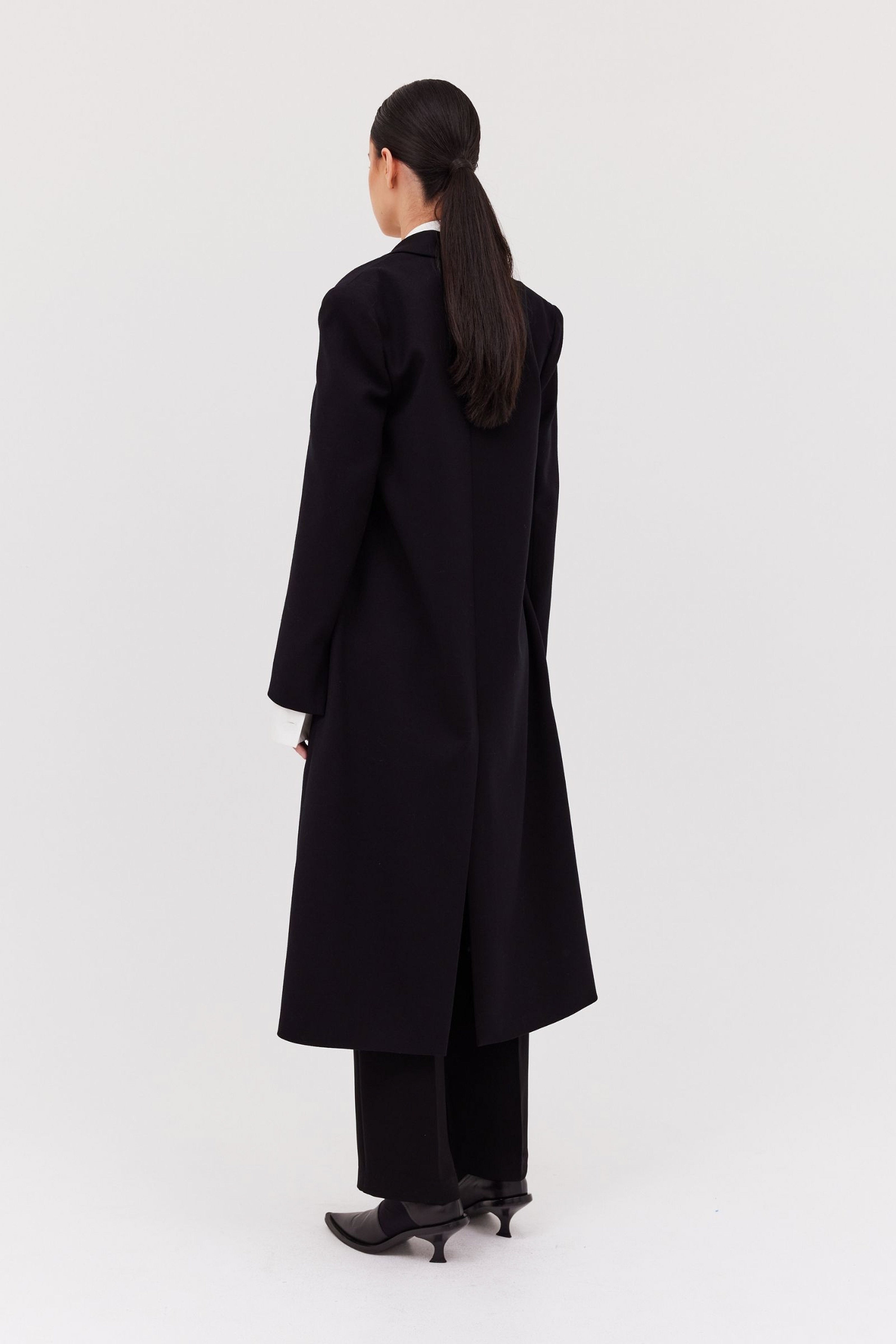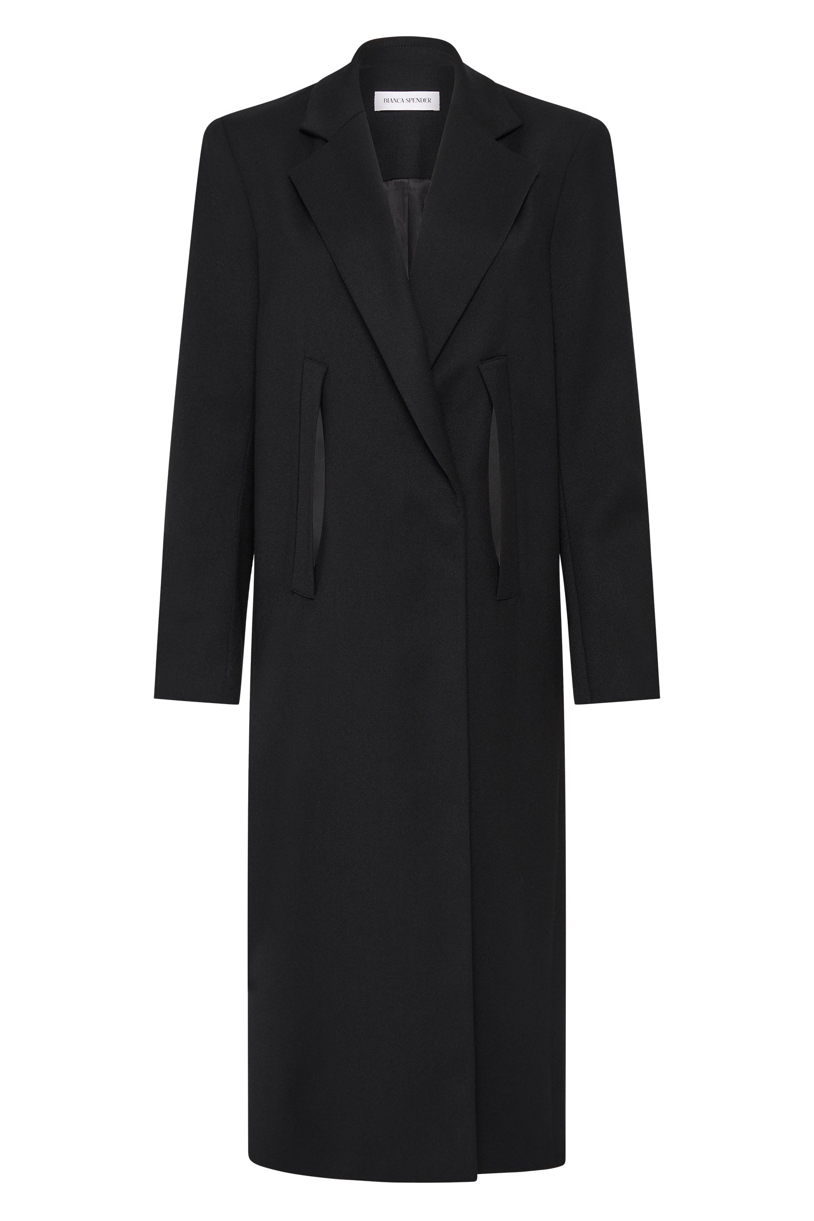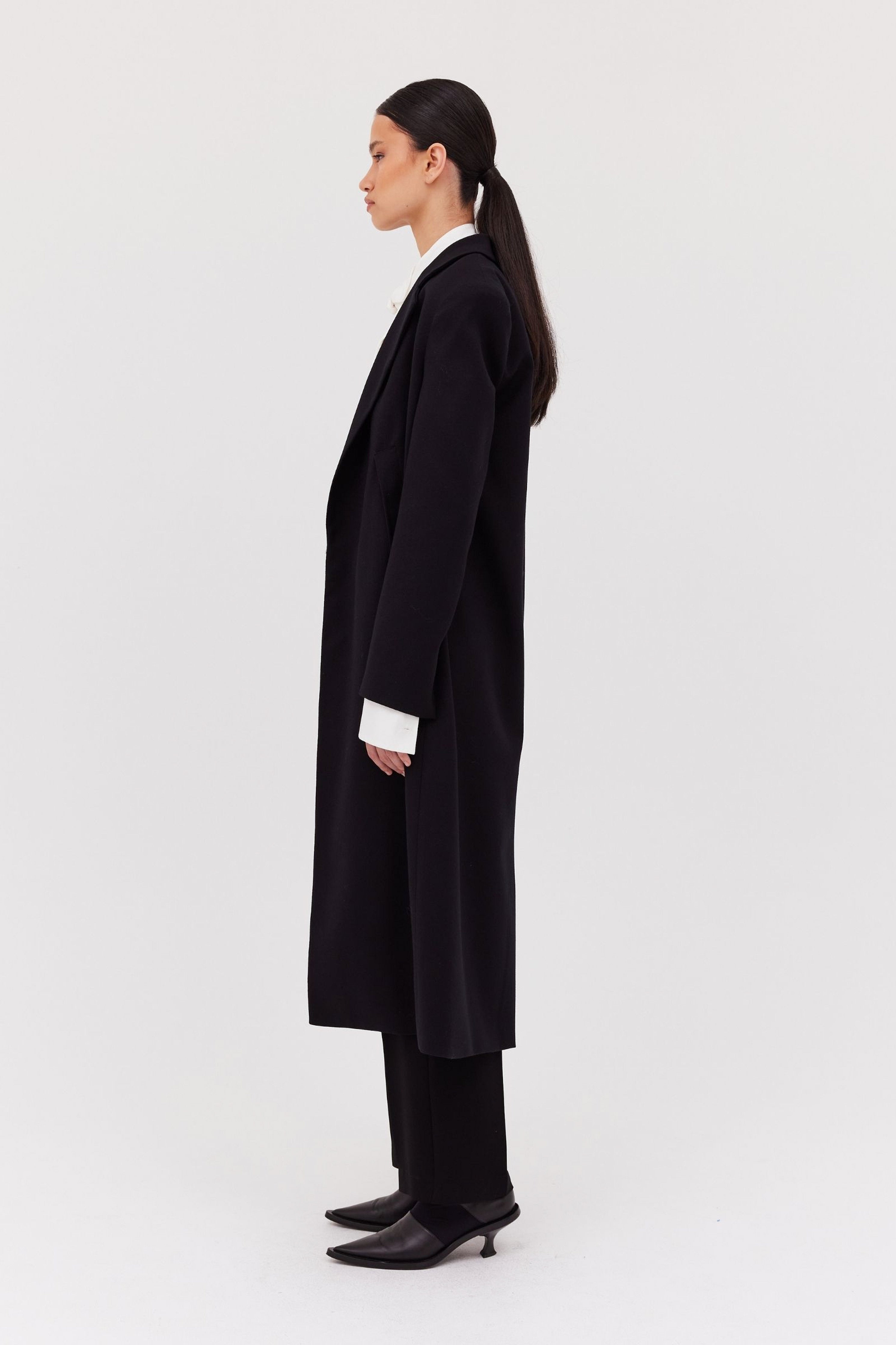 Effortless sophistication for the day into night and a true investment to finish any look across the seasons. The Black Coating Tranquil Coat has been considerately designed to accommodate ease of movement as you go about your day-to-day, with an oversized, structured fit. The coat has a generous fit and finishes mid-calf. In classic black, this piece will be come a much-loved wardrobe staple.