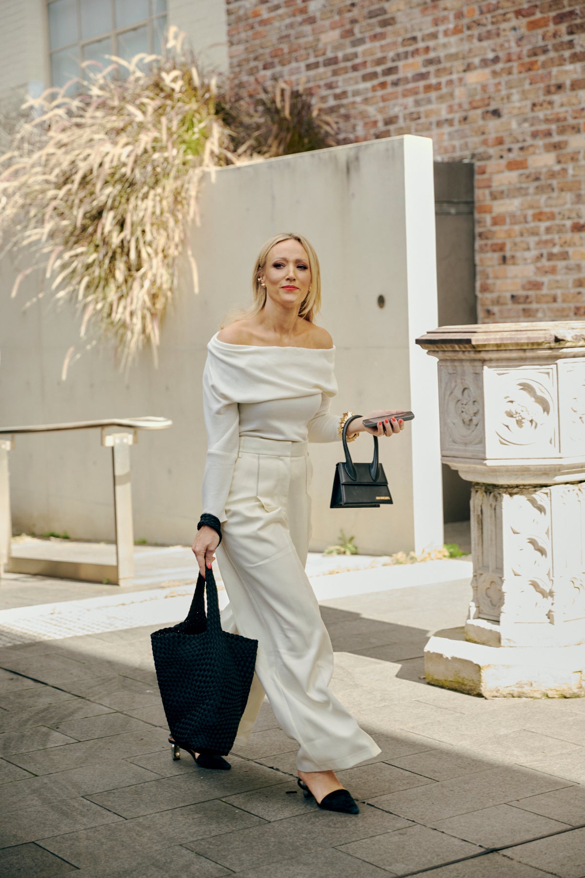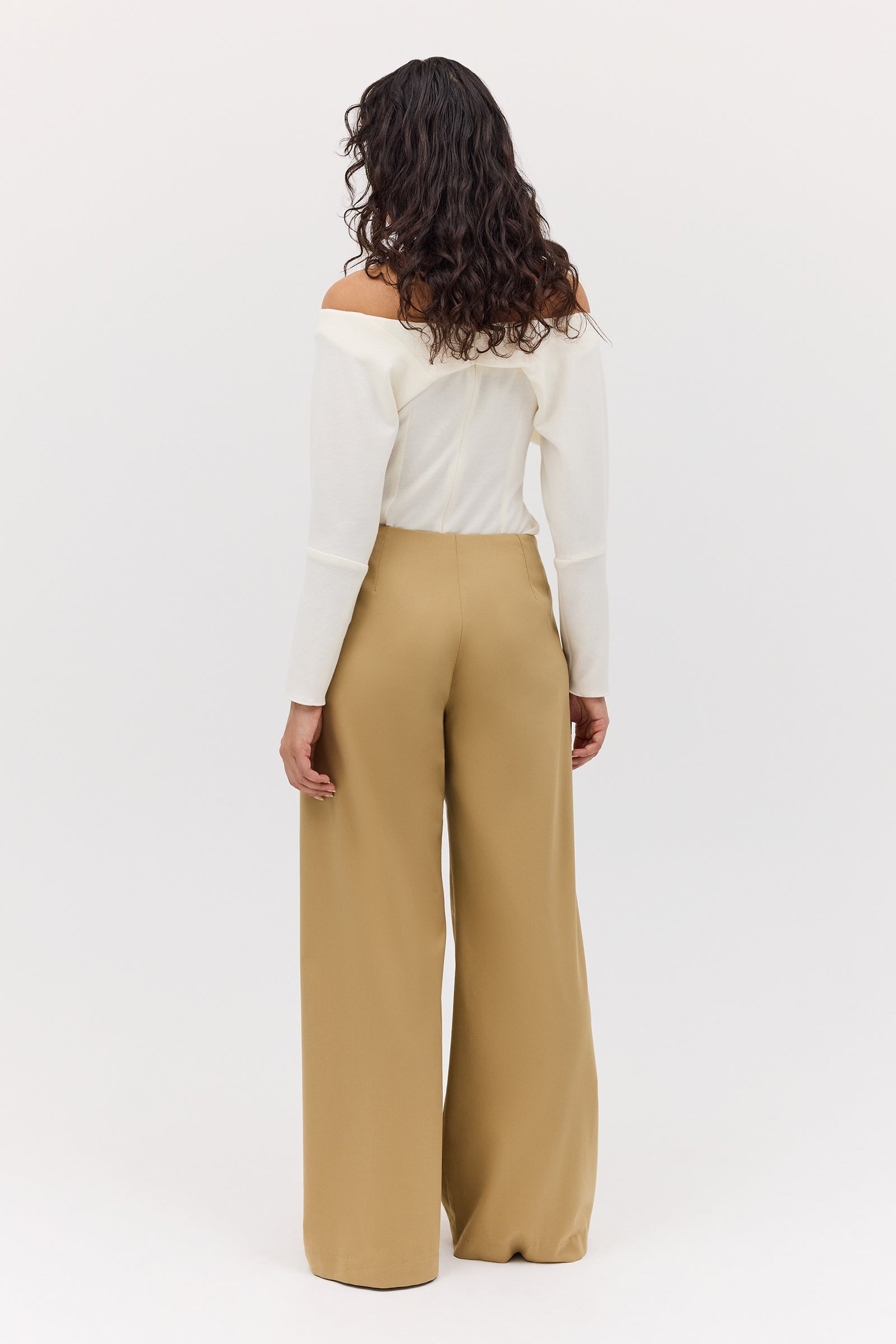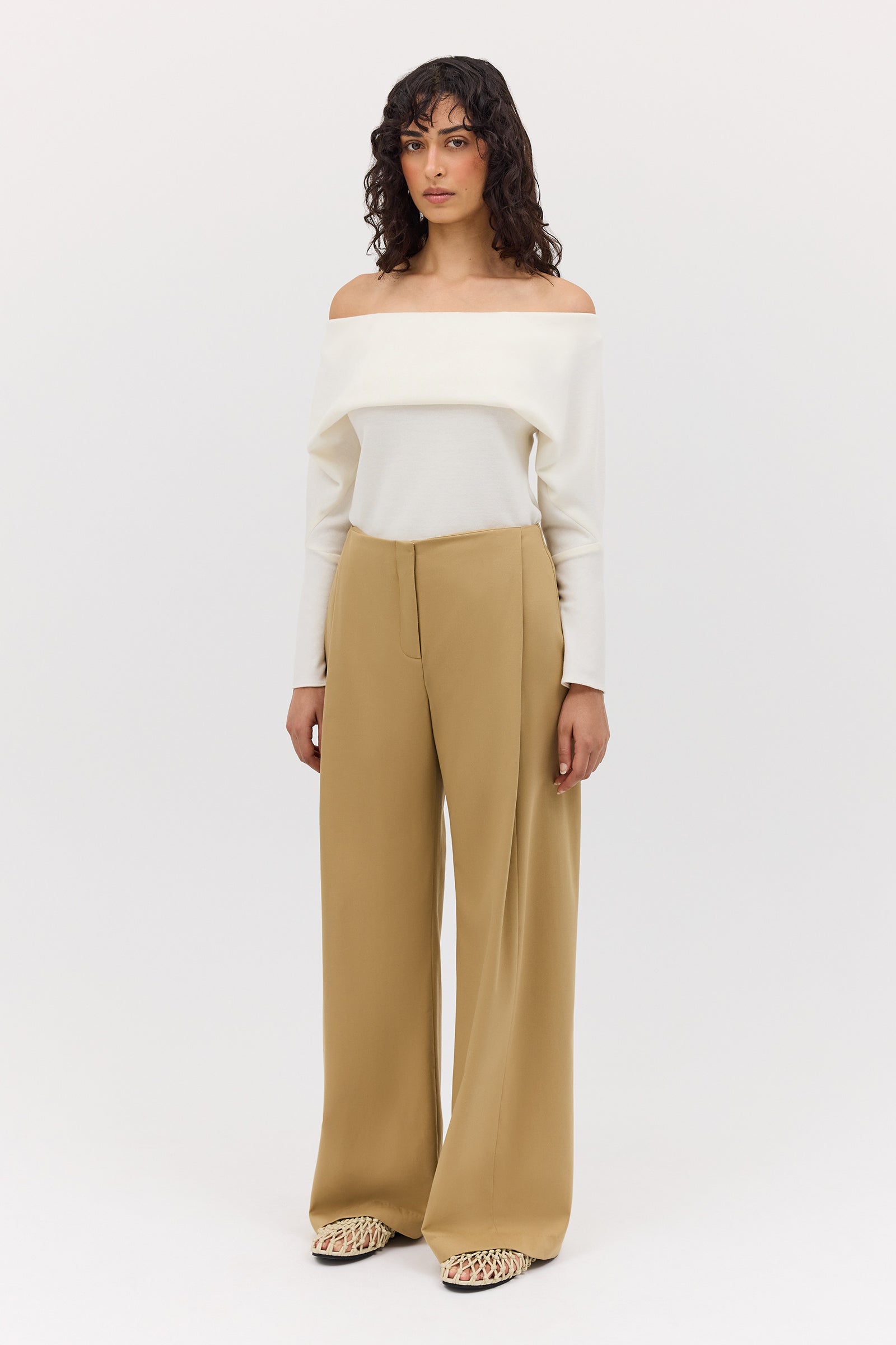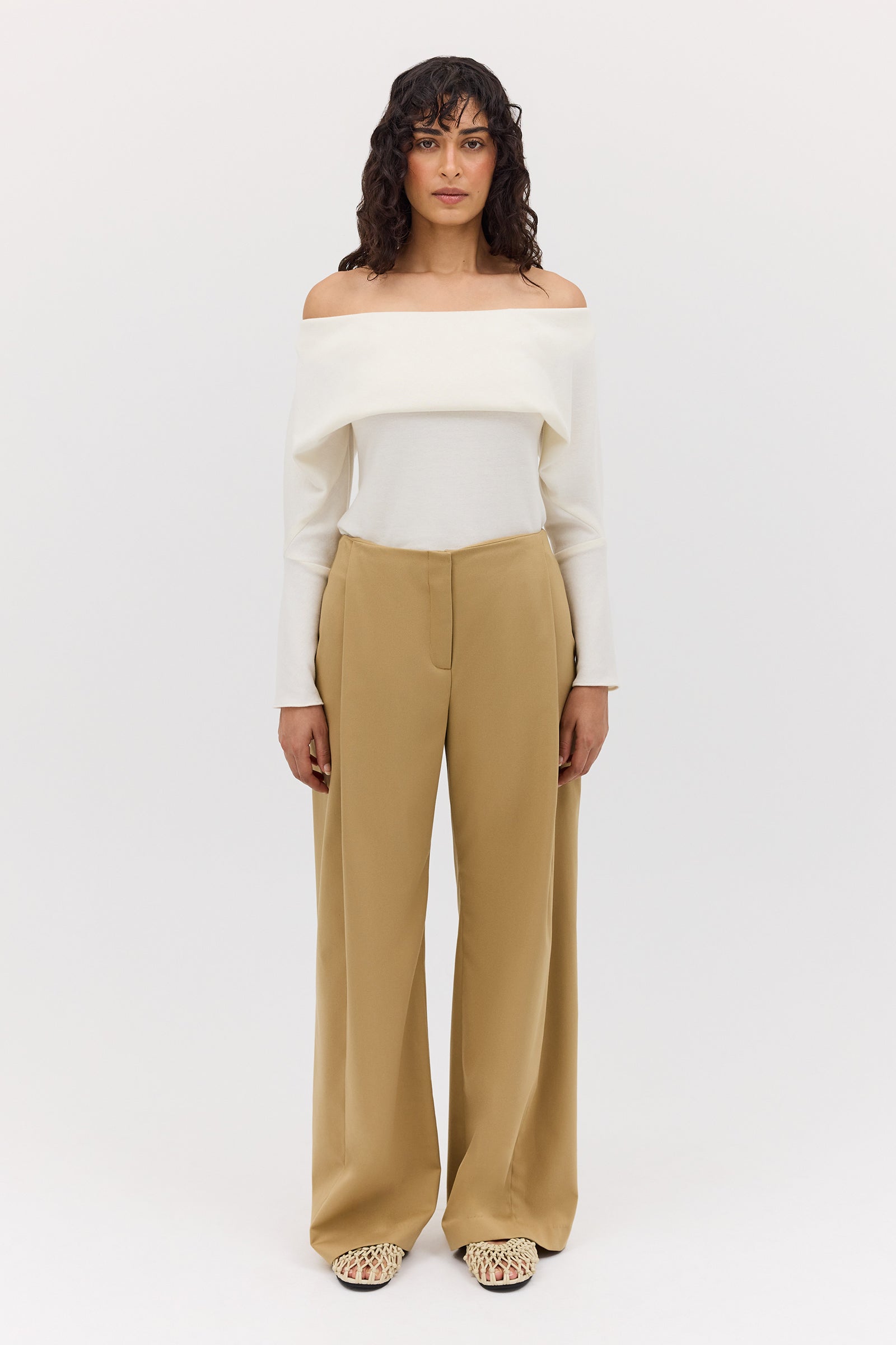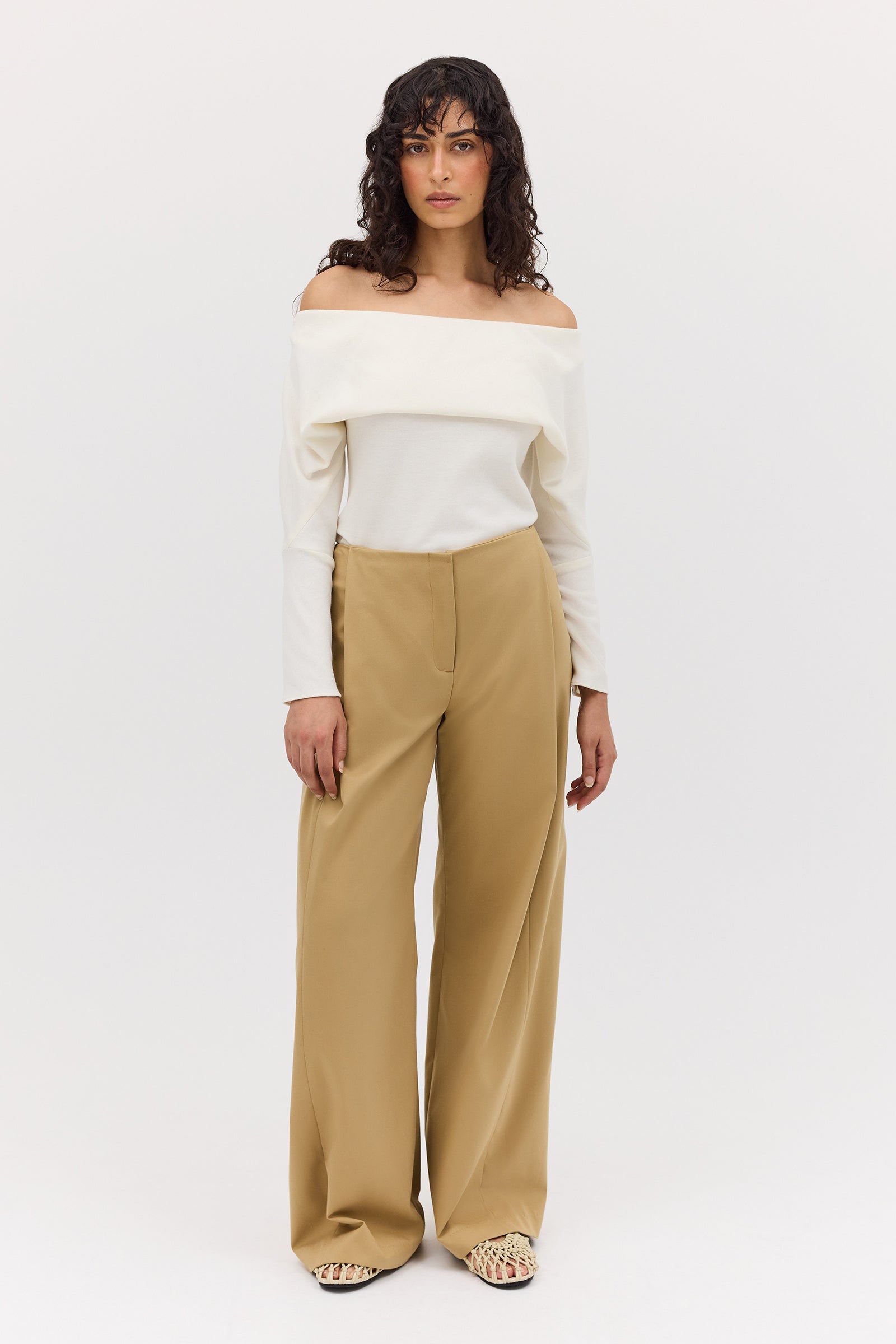 We love the Cream Jersey Bijou Top styled with the Sand Suiting Ray Pant for a relaxed yet chic workwear ensemble, layer the Sand Wool Suiting Peruse Jacket to complete the look.