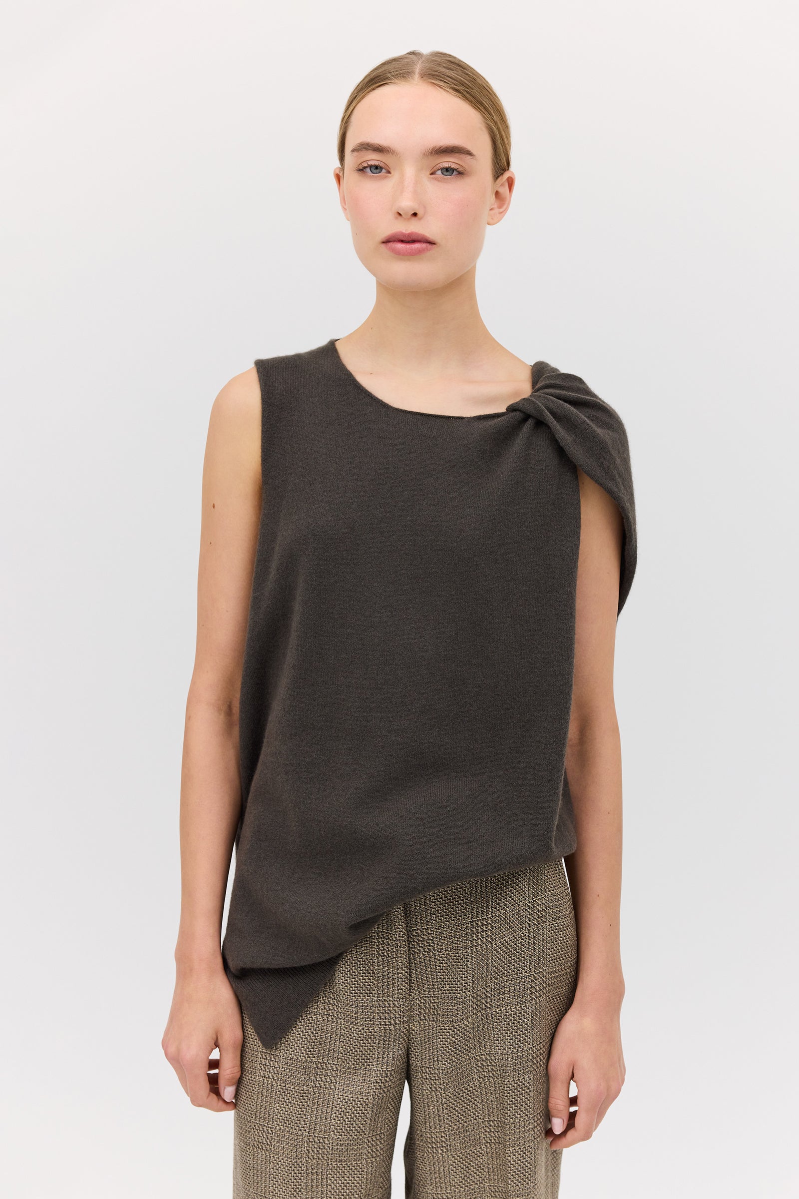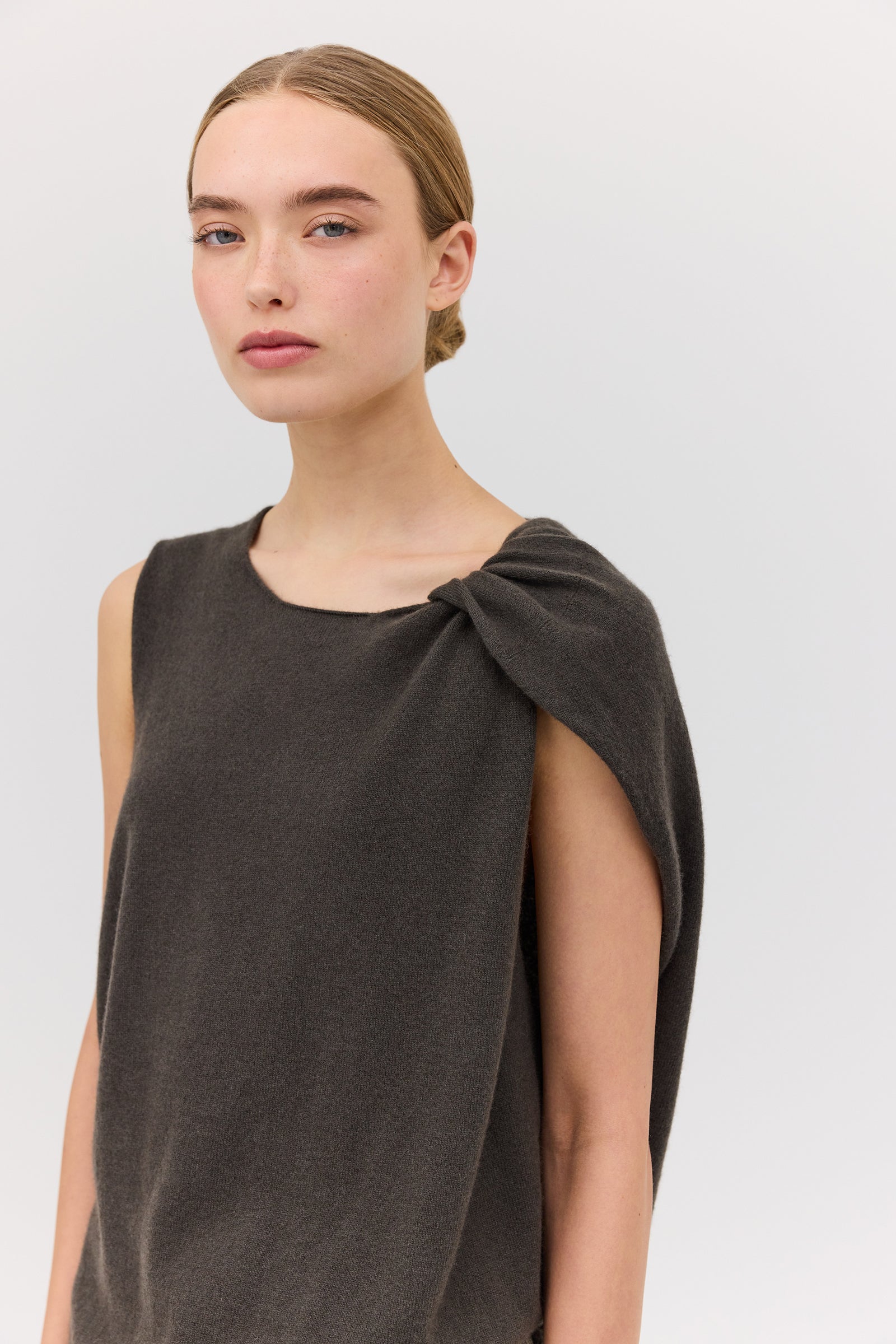 The Liquorice Gentle Knit embodies signature design and our effortless yet refined handwriting. Featuring twist detailing at the shoulder, crafted from luxurious 100% cashmere. A relaxed fit through the body, the Gentle Knit feels soft and lightweight against the body, adding warmth while allowing a sense of air.