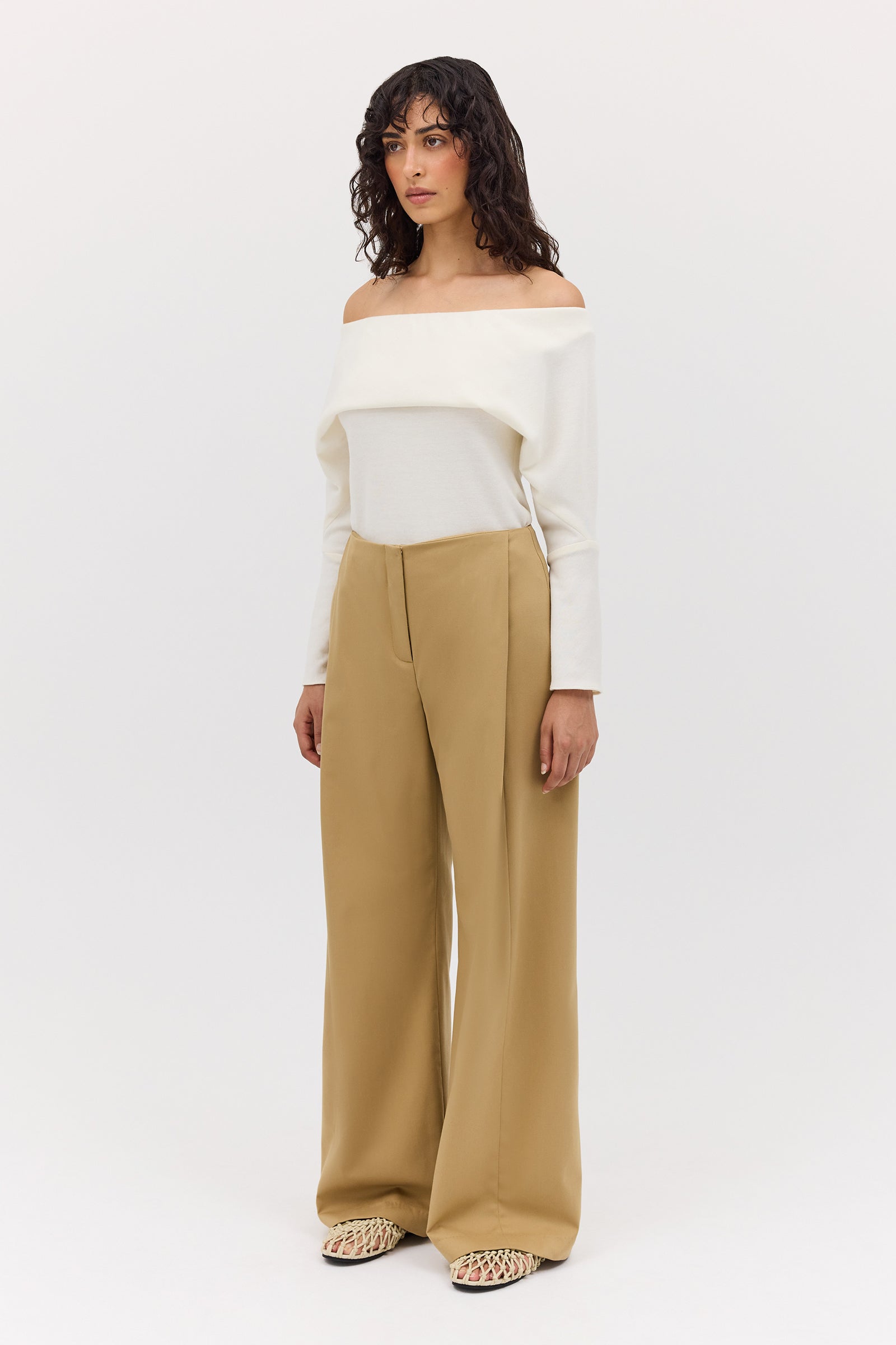 Make a statement with the matching Sand Wool Peruse Jacket, or Pair with the Cream Wool Jersey Bijou Top to elevate the everyday. Also pairs back beautifully with the Cream Wool Jersey Envelop Top, for an easy-lightweight vacation ensemble.