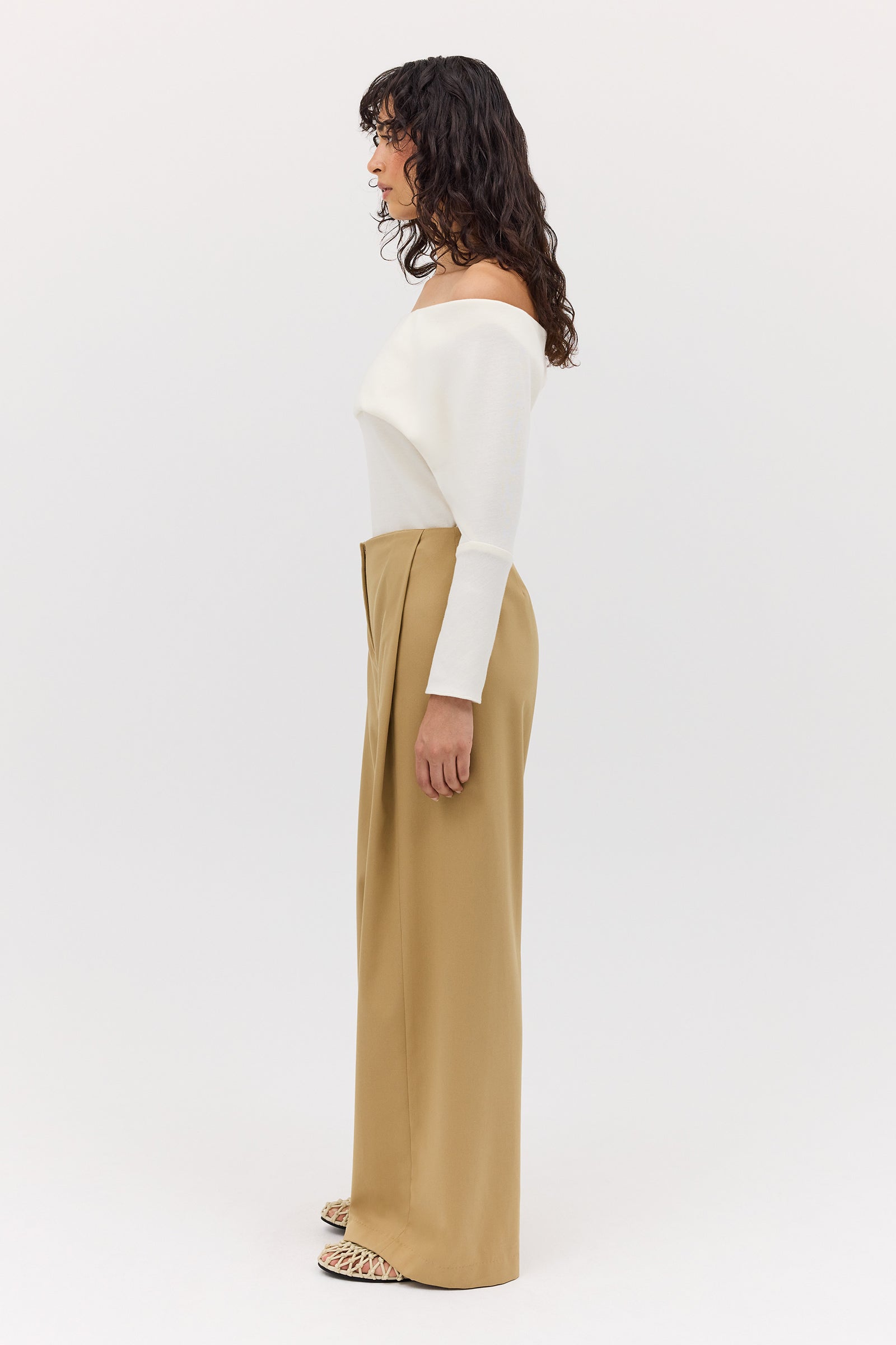 Your most-loved Ray Pant is back, reimagined for a new season. The Sand Wool Suiting Pant features an inverted tuck down the front of the leg, a zip and hook and eye fastening and flowing into a wide-leg trouser designed to touch the floor.