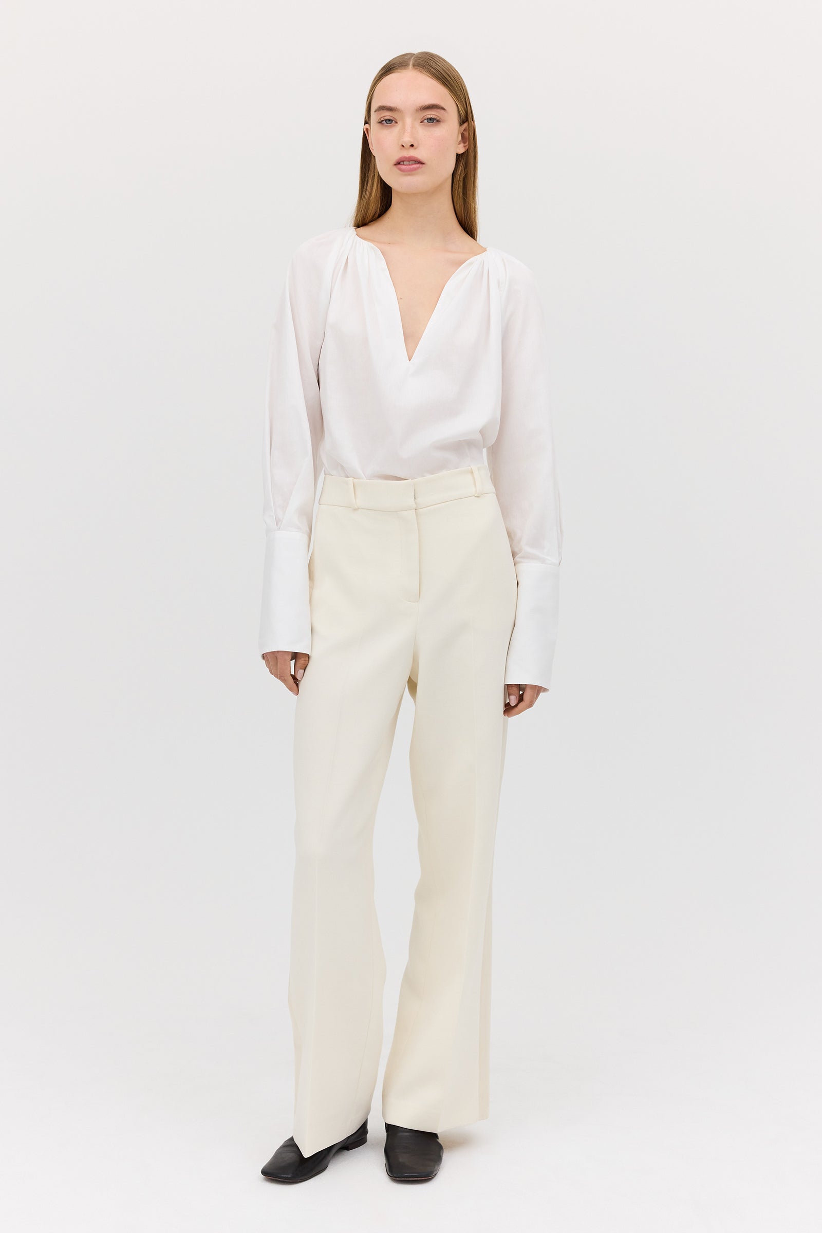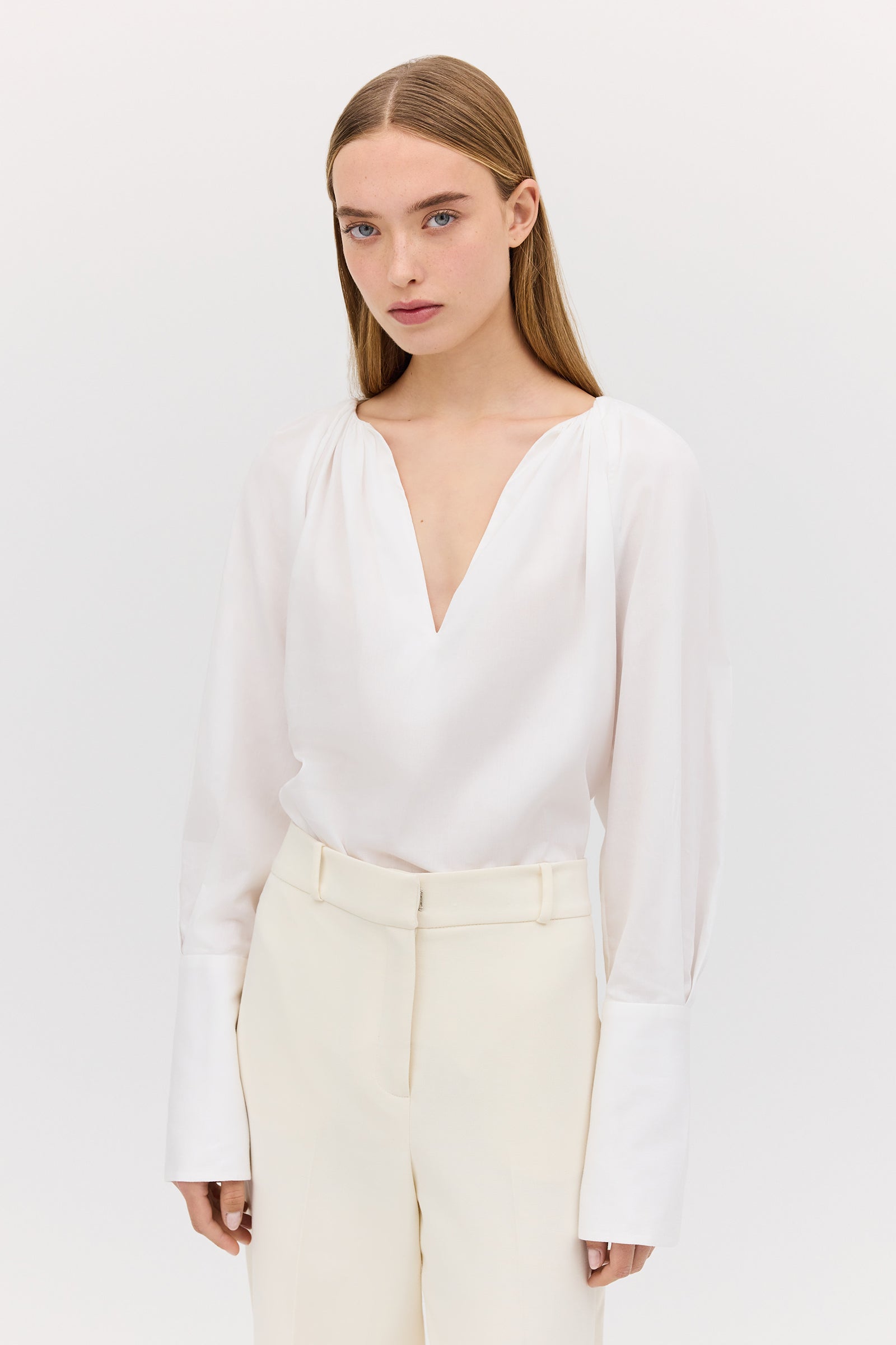 The most-loved Circa Shirt is back, re-imagined for a new season. An adaptation of our original Circa Top, Bianca Spender takes on cotton shirting. This new Circa Shirt features a deep slit in the front neck, a cuff and placket, and a slightly more voluminous billowing sleeve.