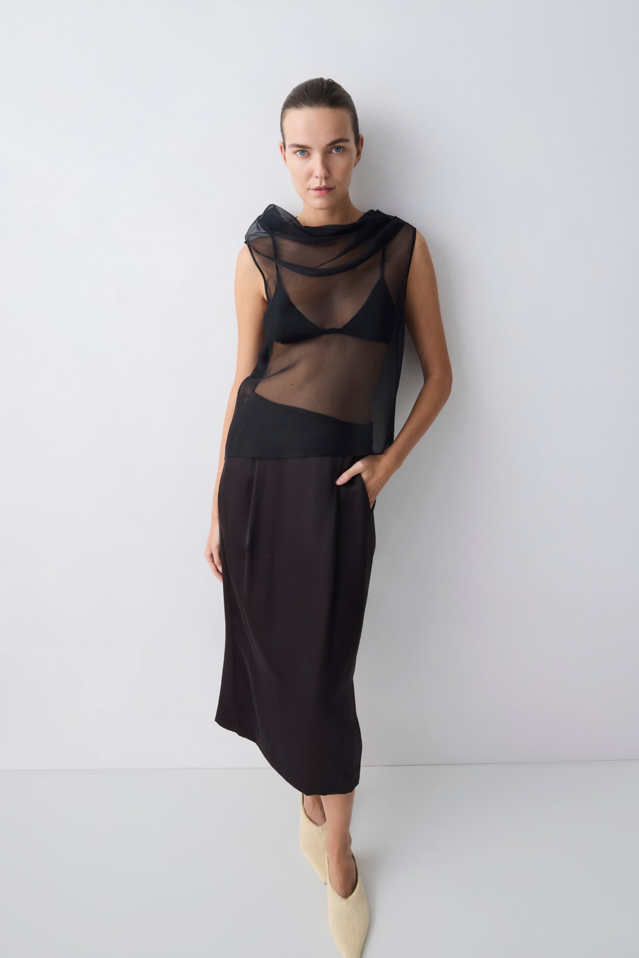 Wear the Cezanne Top with the languidly draped Black Satin Oblique Skirt, or add contrast to the soft organza by pairing it with tailored wool suiting.