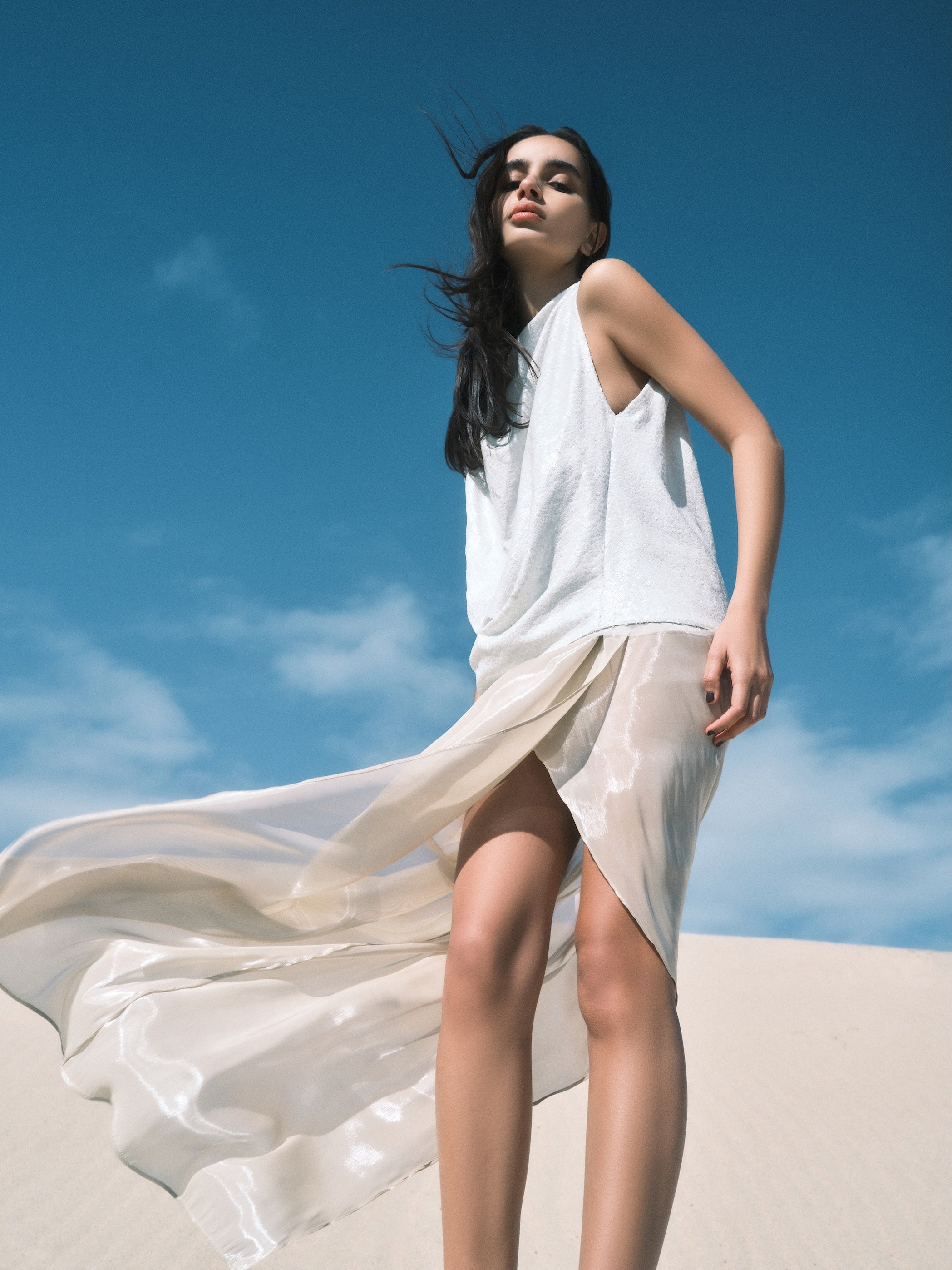 SKY ORGANZA CURVATURE SKIRT