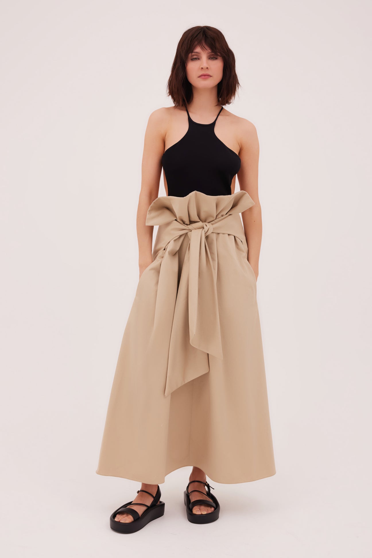 Our model is 179cm (5'9") tall, with a bust measurement of 84cm, waist measurement of 61cm and hip measurement of 88cm. She is wearing a size 1.