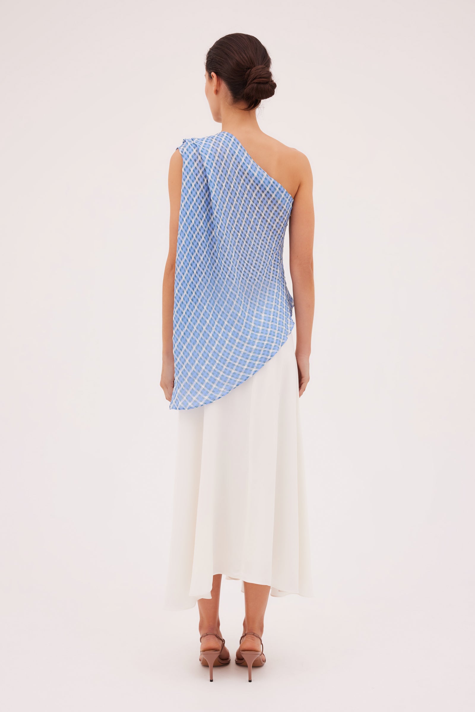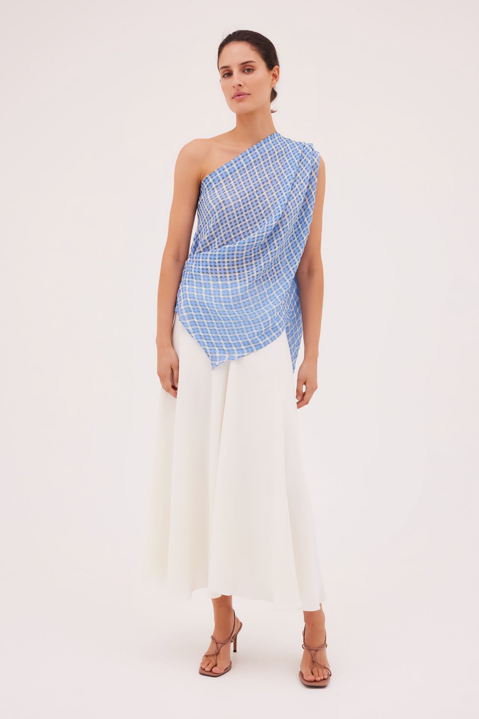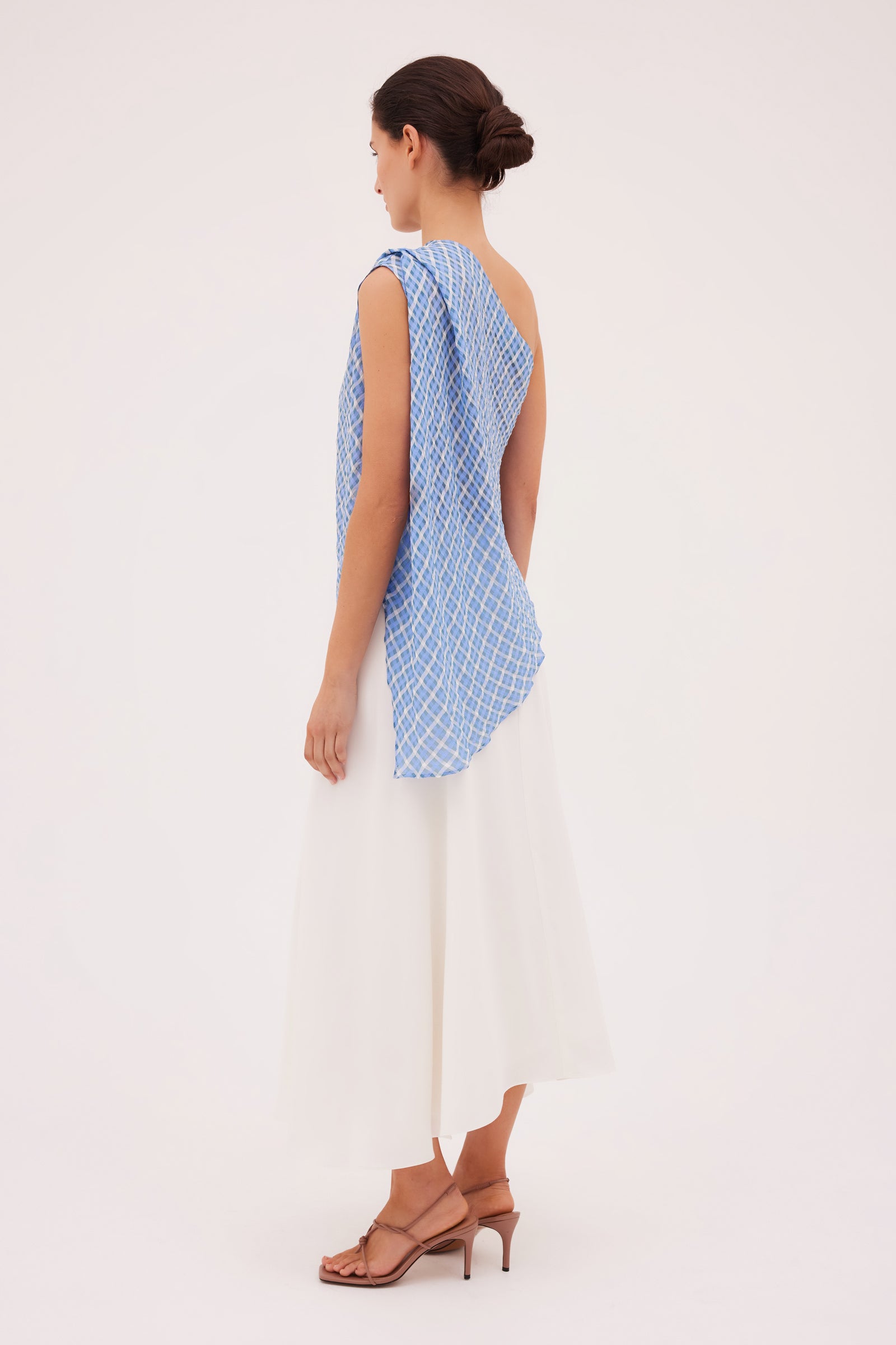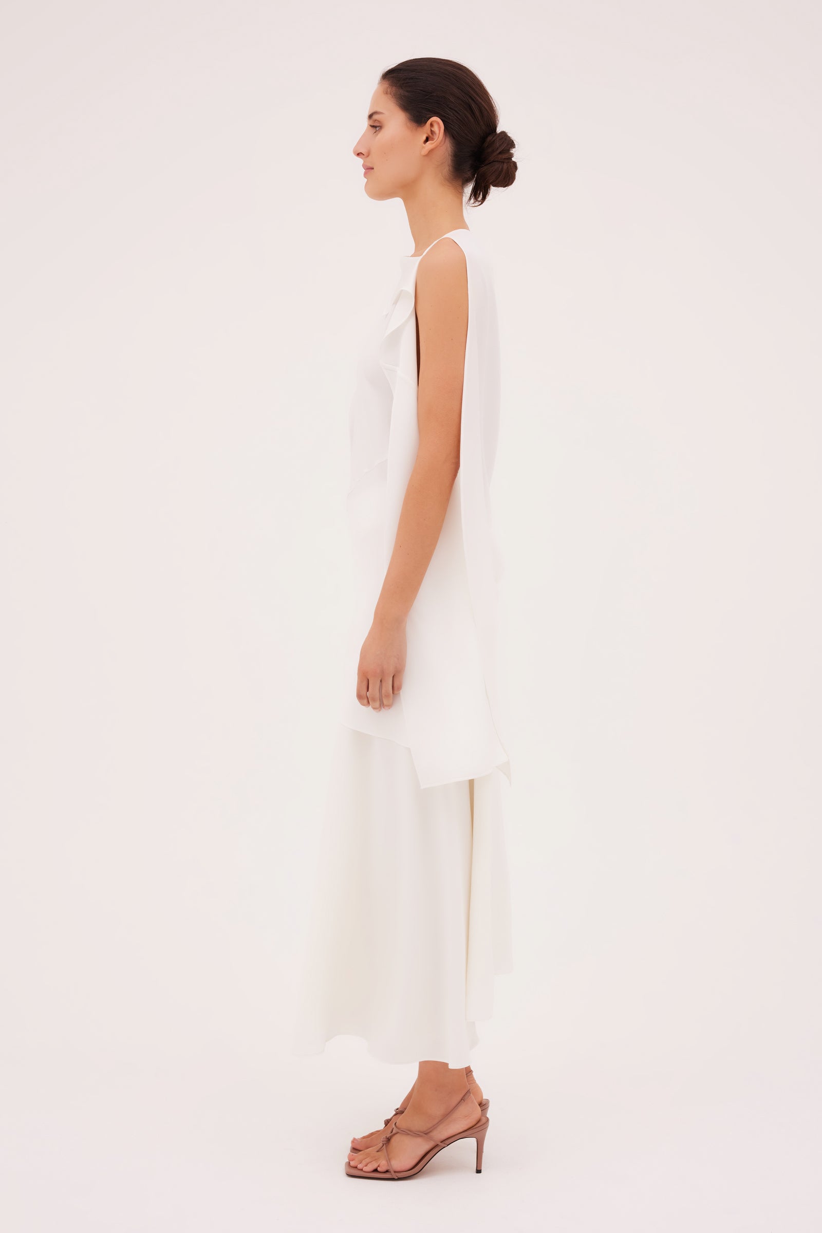 Evoke a sense of nostalgia with this Ivory Crepe Skirt. The Lennon Skirt sits high on the waist, with a seam that sits below the hip which flares into soft drapery at the top of the leg. A perfect midi skirt for any occasion.