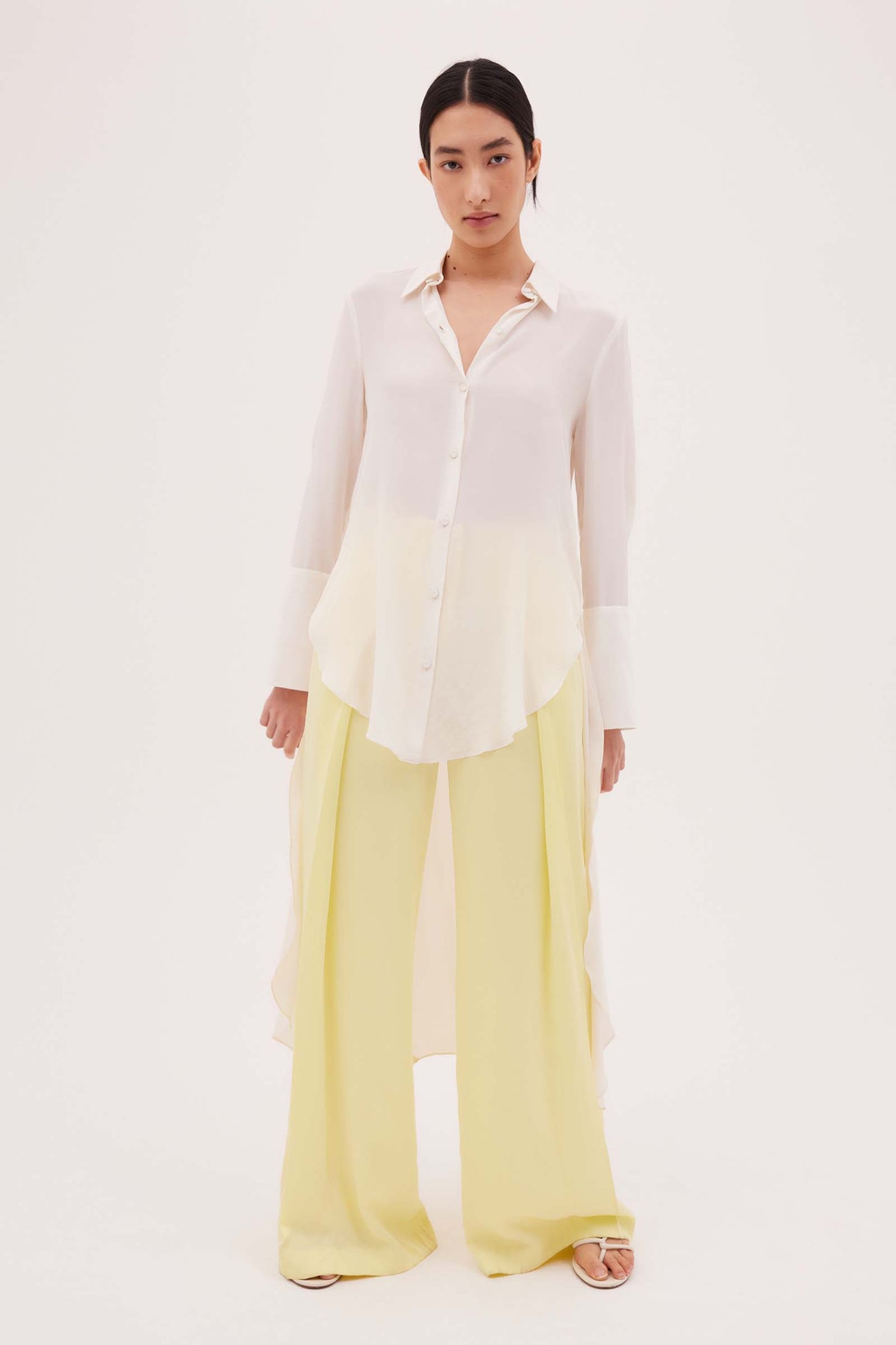 Sharply tailored in a soft Lemon Satin fabrication for modern confidence, it strikes a balance between masculine nonchalance and feminine grace. A deep inverted front tuck, hip pockets and a front fly fastening allow you to stride out in style. Pair with our matching Lemon Satin Claude tank for a playful twist on event wear, or our Navy Claude Tank for a contrast fit for any occasion.