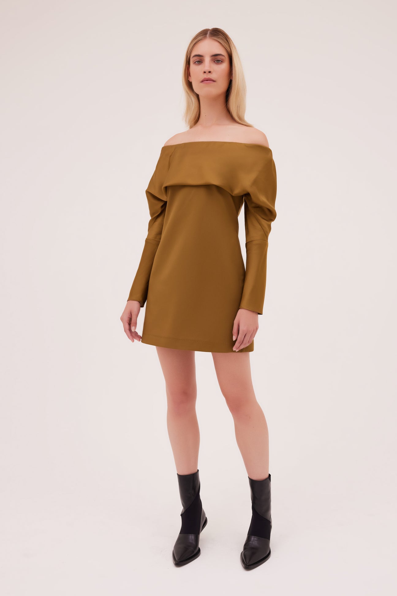 The Bijou Mini dress is crafted from Gold Satin crepe fabric for a playfully exquisite look. Long sleeves and a zipper at the centre back ensure a perfect fit, while intricate draping creates an artful silhouette for an elegantly timeless statement. Inspire enviable style.