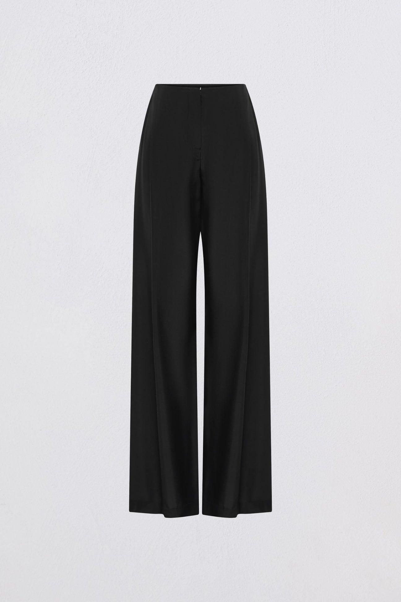 Your most-loved Ray Pant is back, reimagined for the Resort. The Black Silk Ray Pant features an inverted tuck down the front of the leg, a zip and hook and eye fastening and flowing into a wide-leg trouser designed to touch the floor.