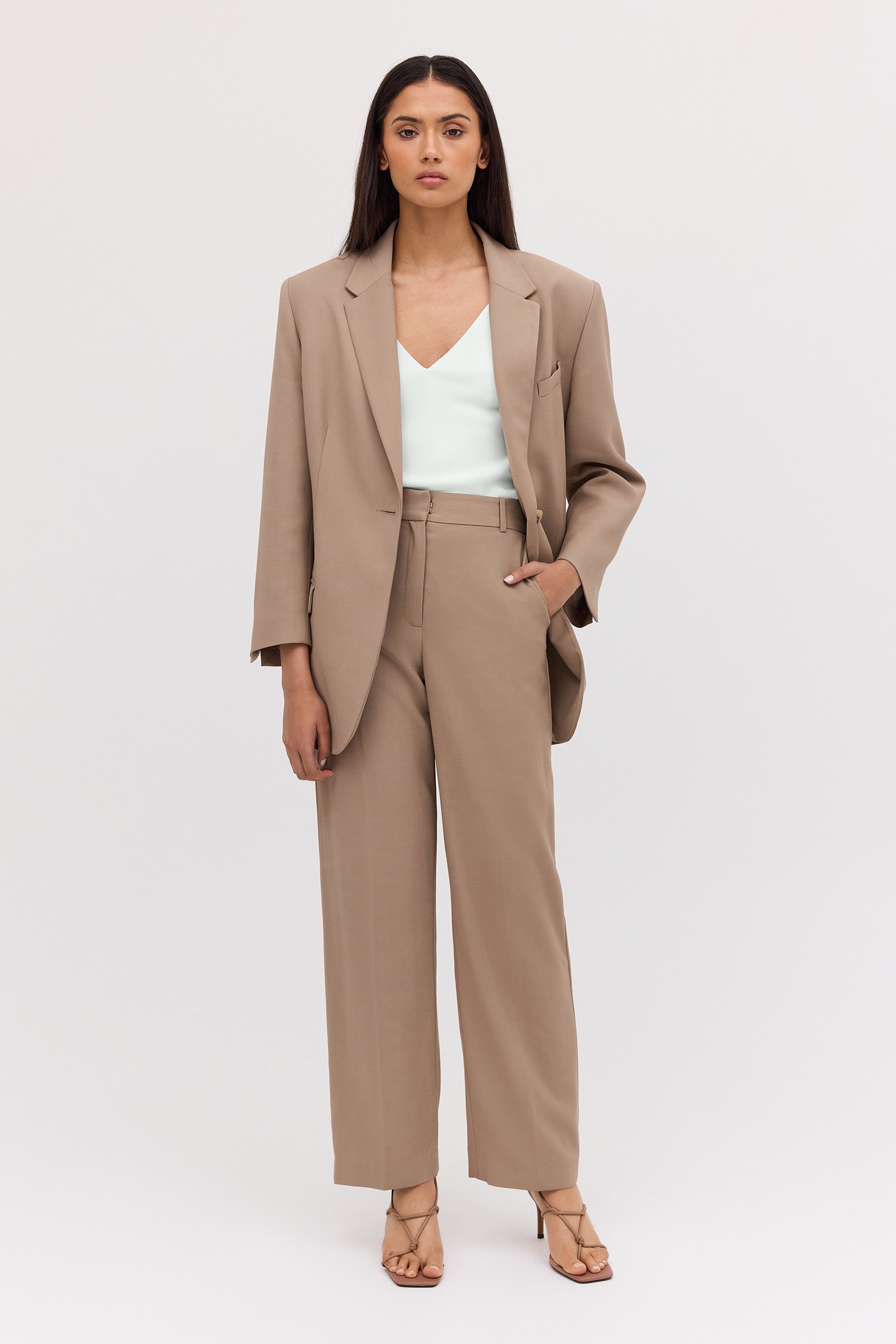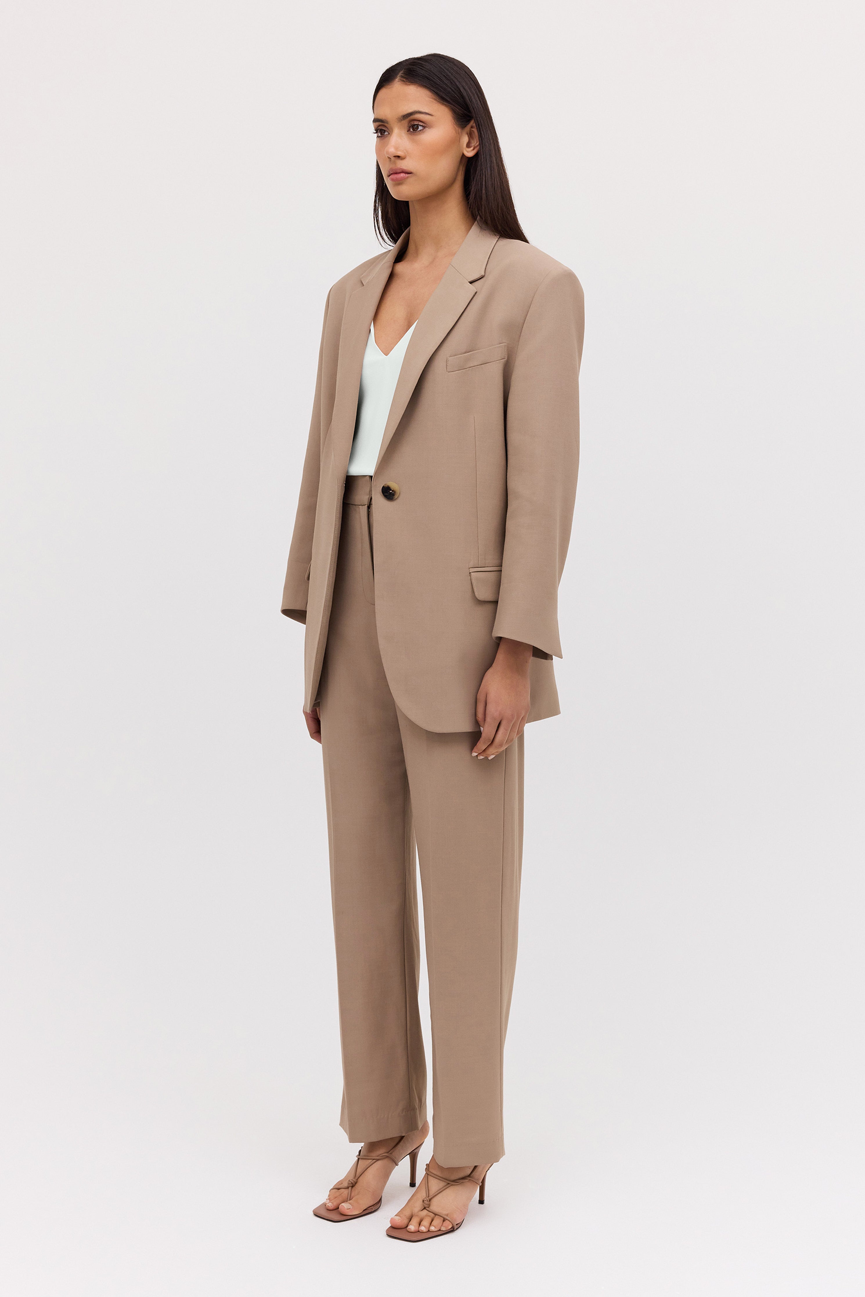 A fresh new season take on a most-loved Bianca Spender style, the Idle Pant. Known for their refined comfort and modern twist on power suiting, the Latte Suiting Idle Pant is a relaxed fit high-rise trouser, crafted from a lightweight wool blend, allowing breathability and ease of movement.