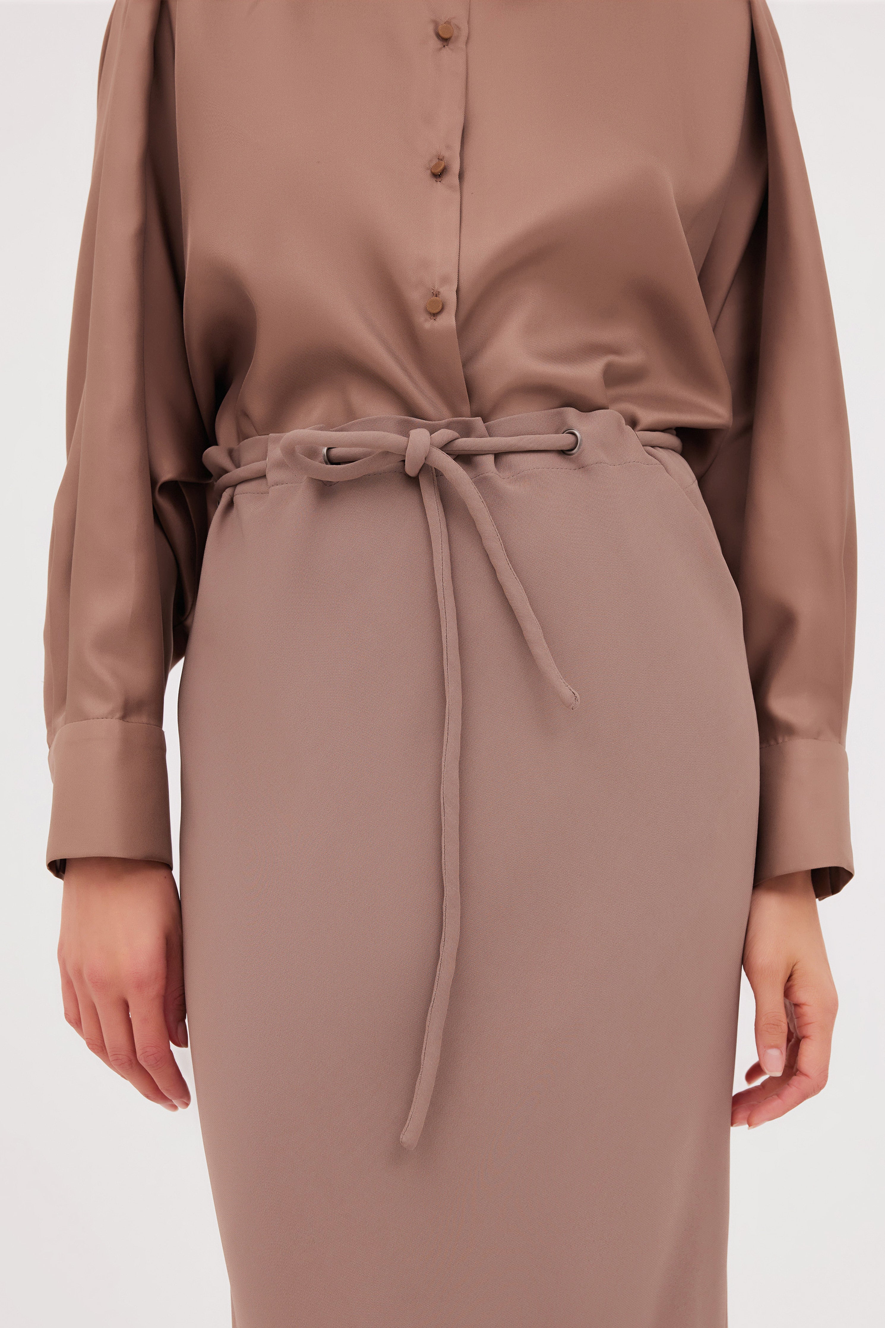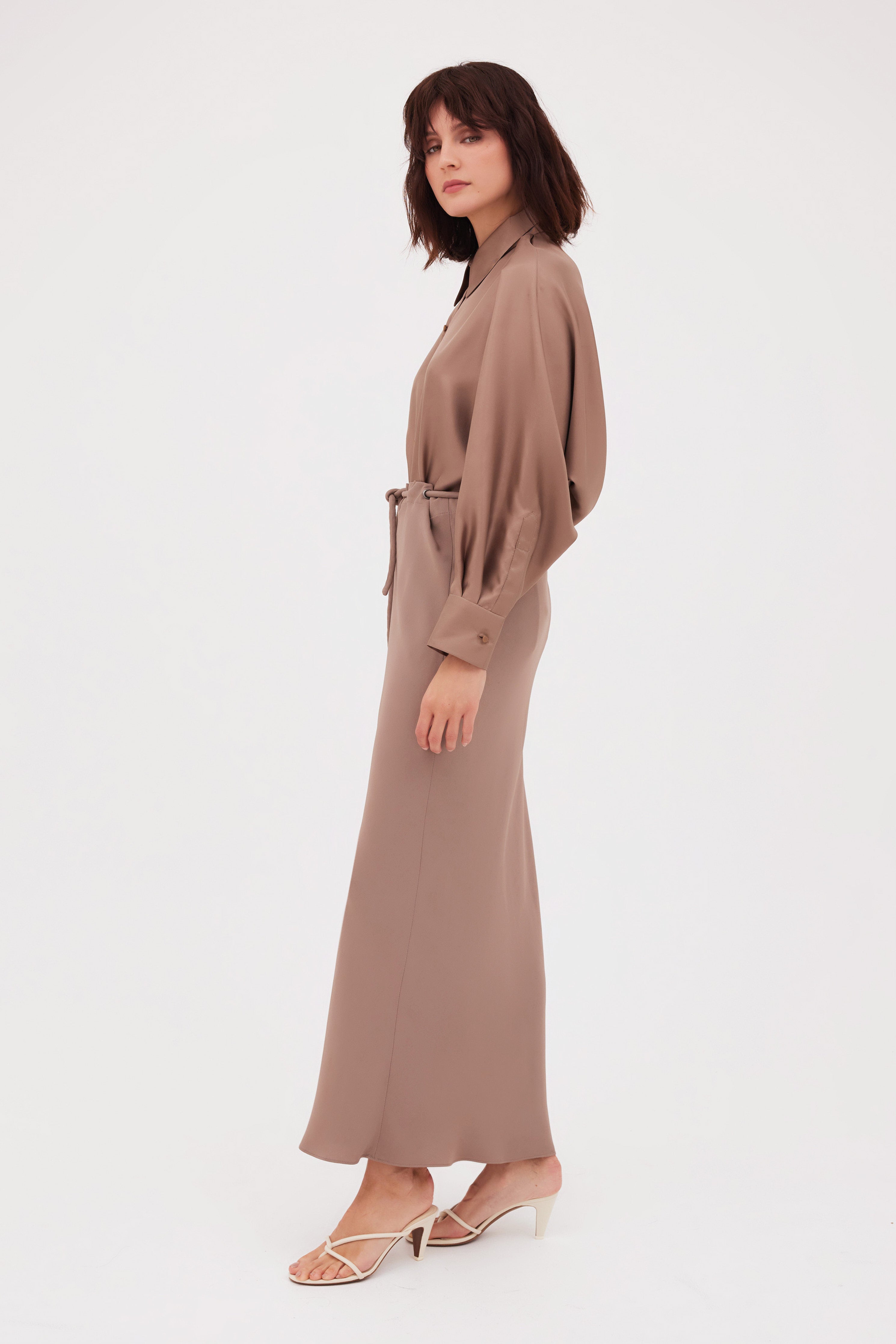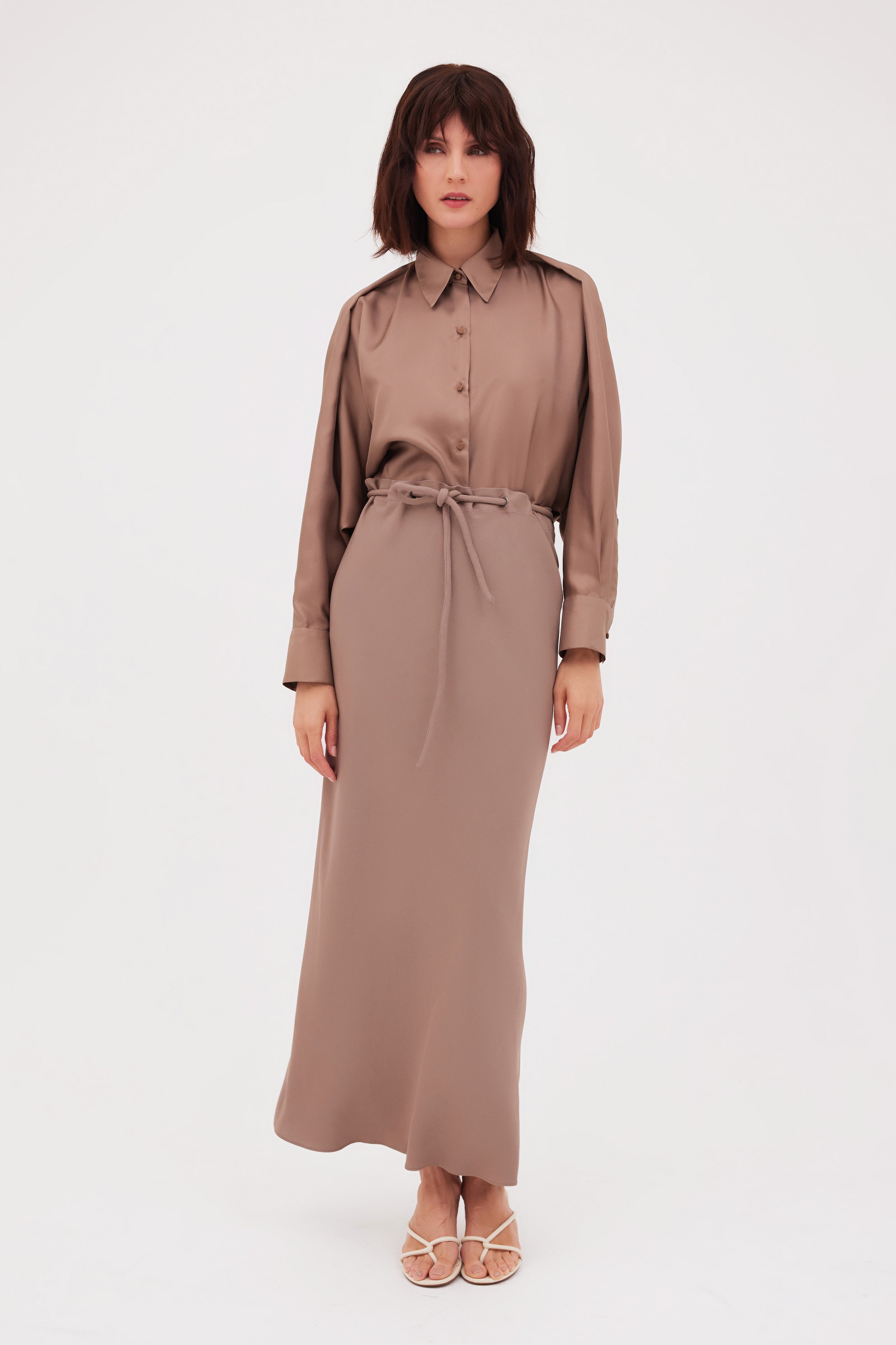 Effortless volume, drape and unexpected fold details bring ease and modernity to the typical tailored shirt. The Epitome Shirt in our deadstock (remnant) Taupe Silk fabric highlights relaxed tailoring, suitable to be dressed up or down.