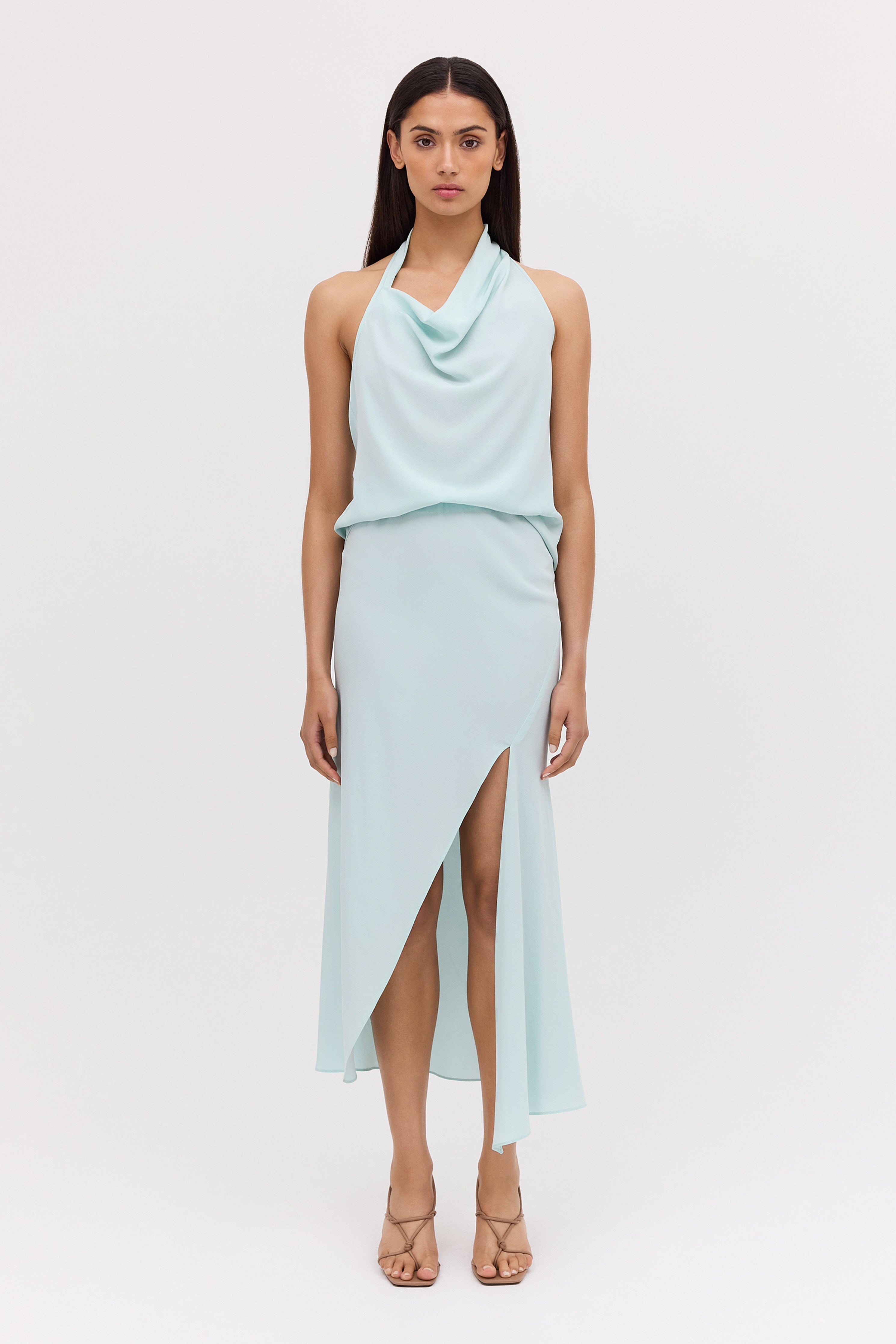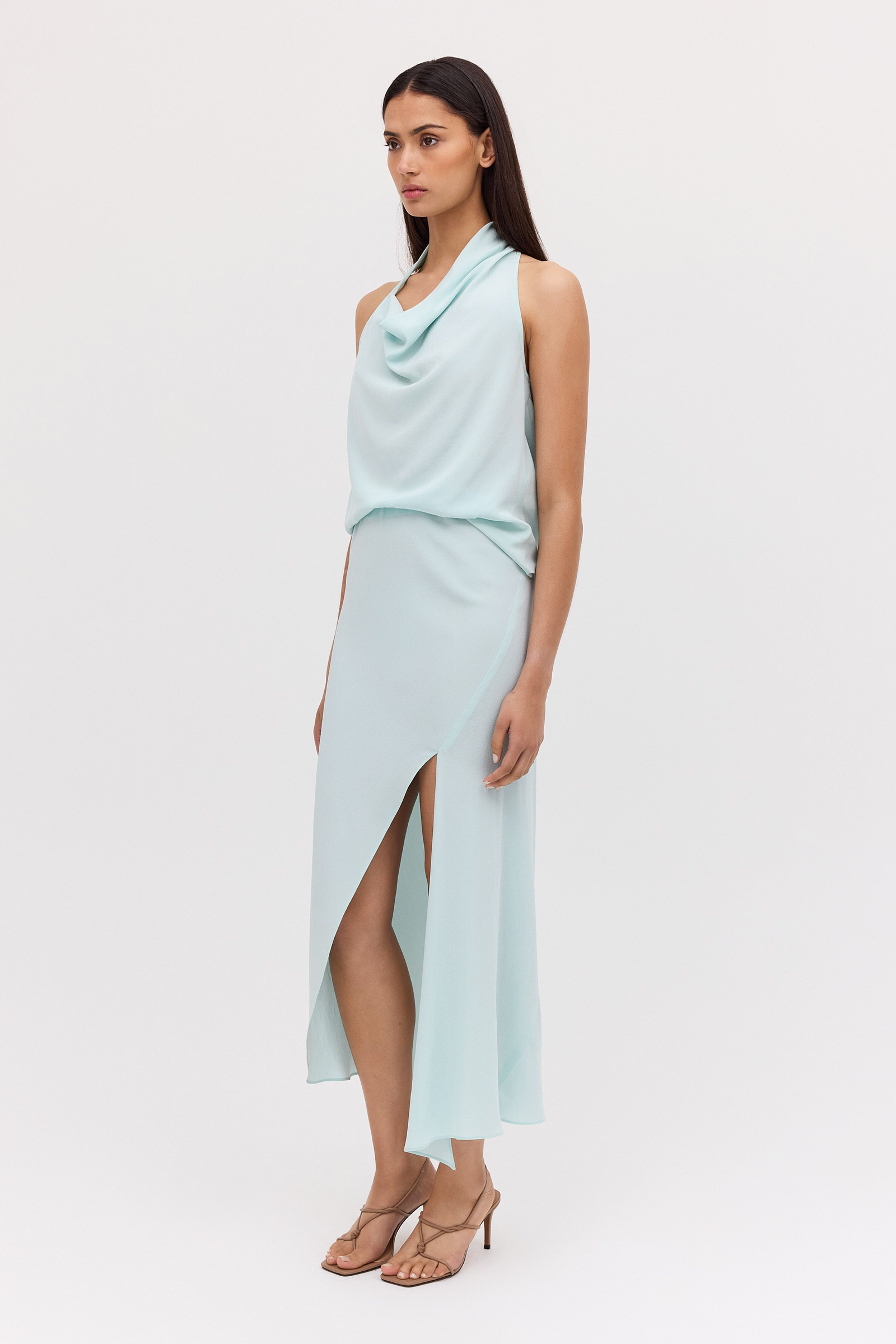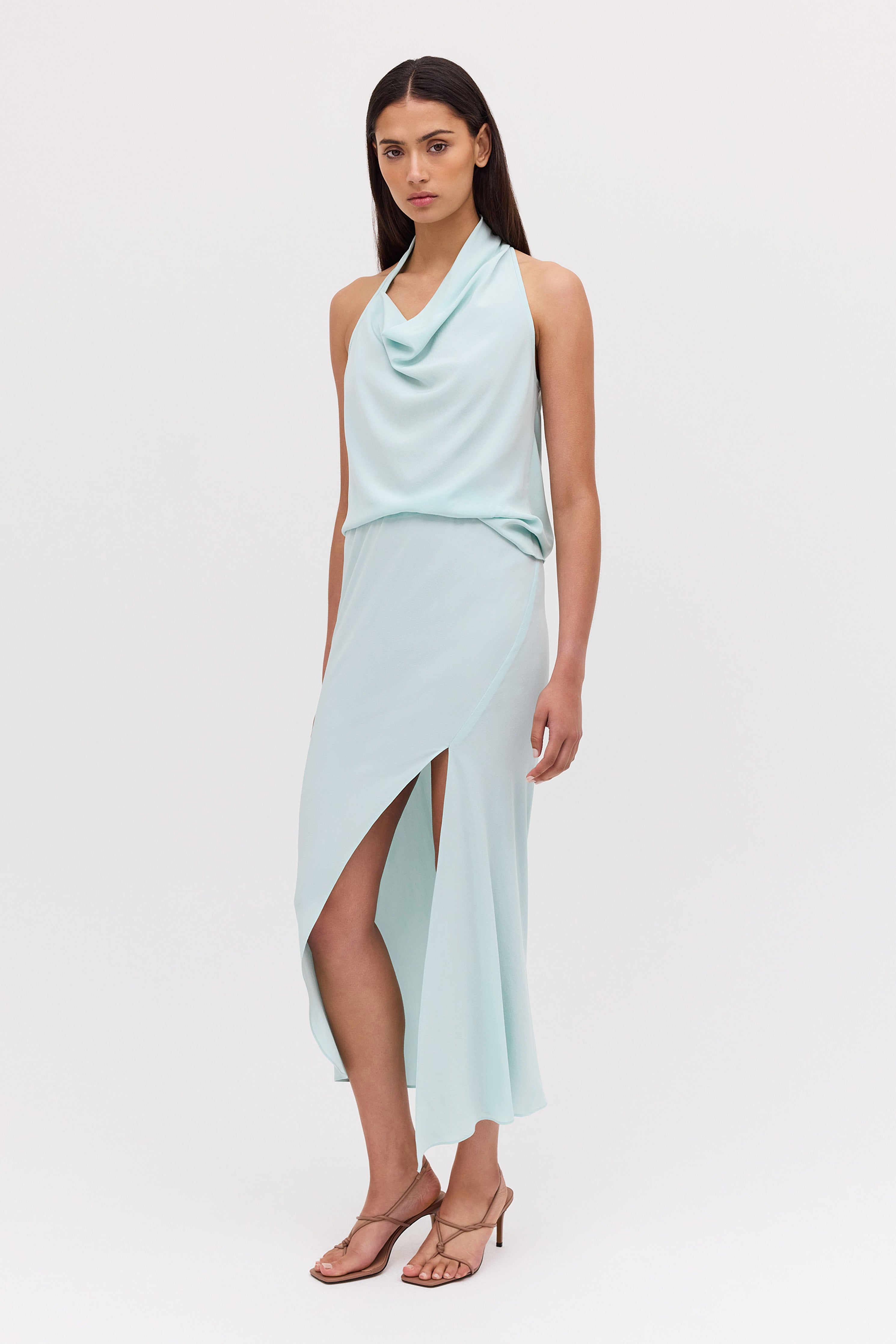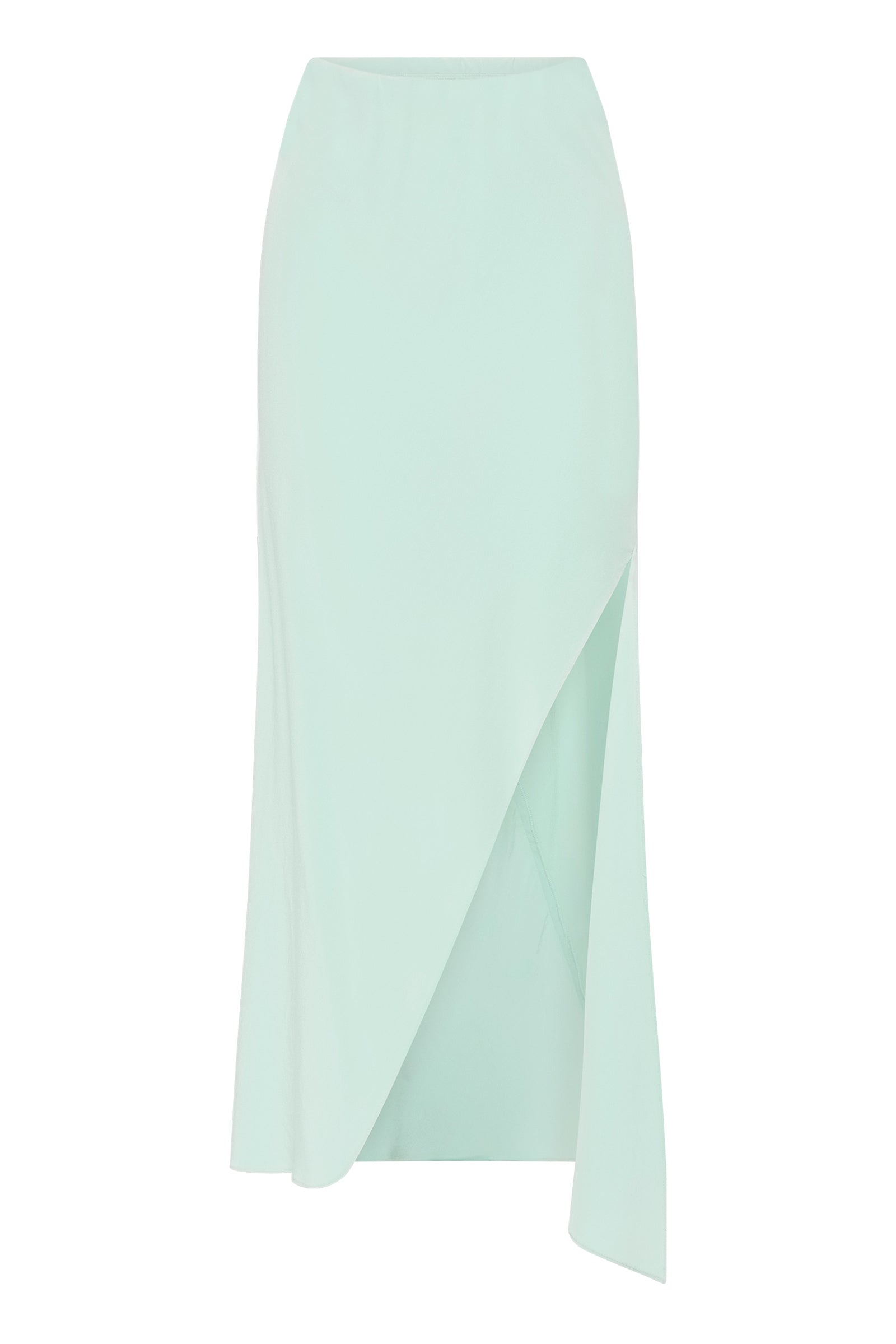 Evoke a sense of ease in the Aqua Silk Viscose Oblique Skirt, a fresh new season take on a most-loved Bianca Spender style. Cut on the bias and featuring Bianca's signature liquid drape, the Oblique Skirt softly skims and flatters the form.