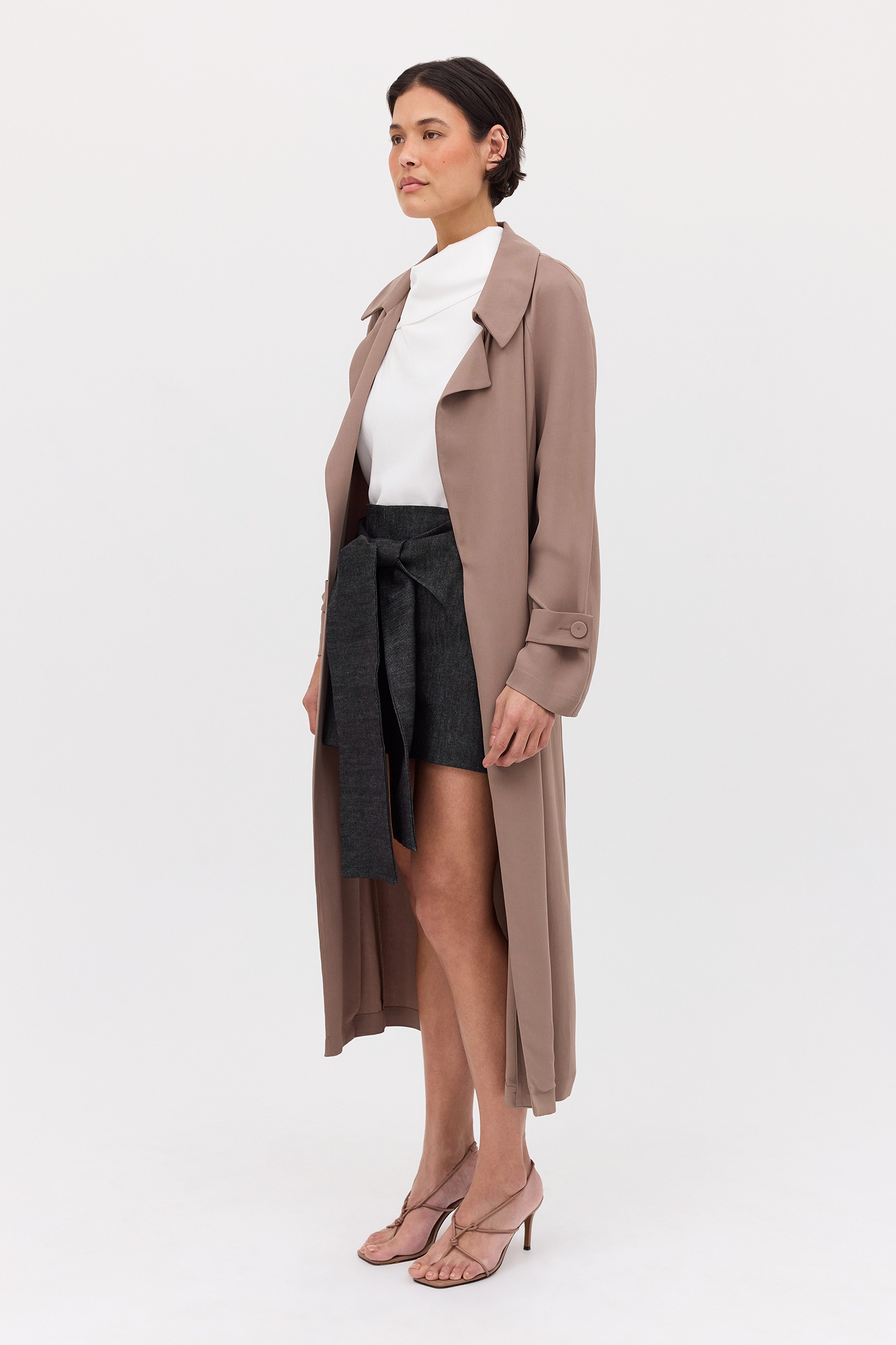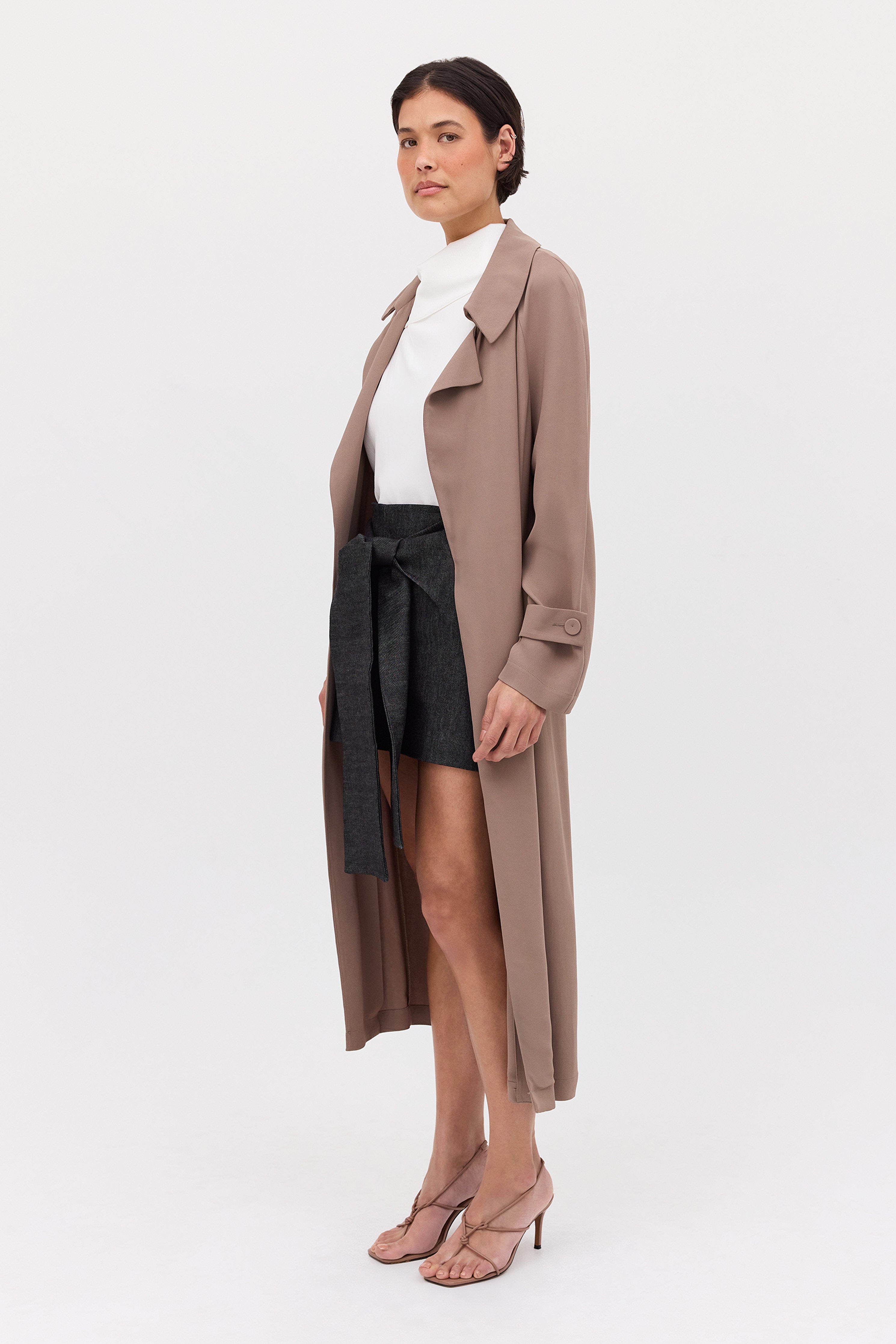 Elevate your everyday with the Black Denim Fluent Mini Skirt. Featuring signature Bianca Spender fold detailing to add instant polish and elevation. This statement mini skirt features an oversized tie-front, that can be adjusted to accommodate individual styling preferences. Crafted from a luxurious mid-weight denim, featuring slight stretch to allow ease of movement.