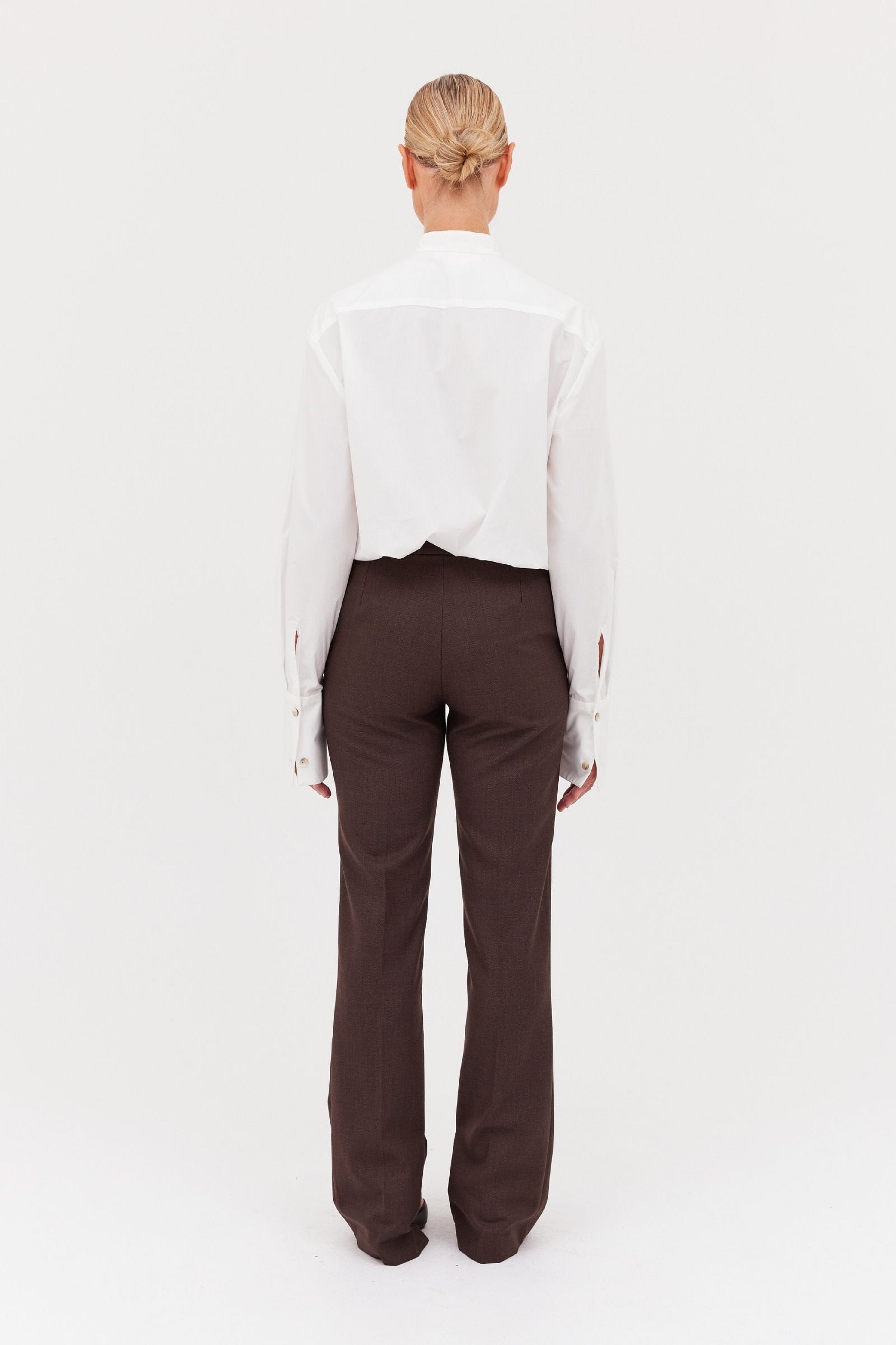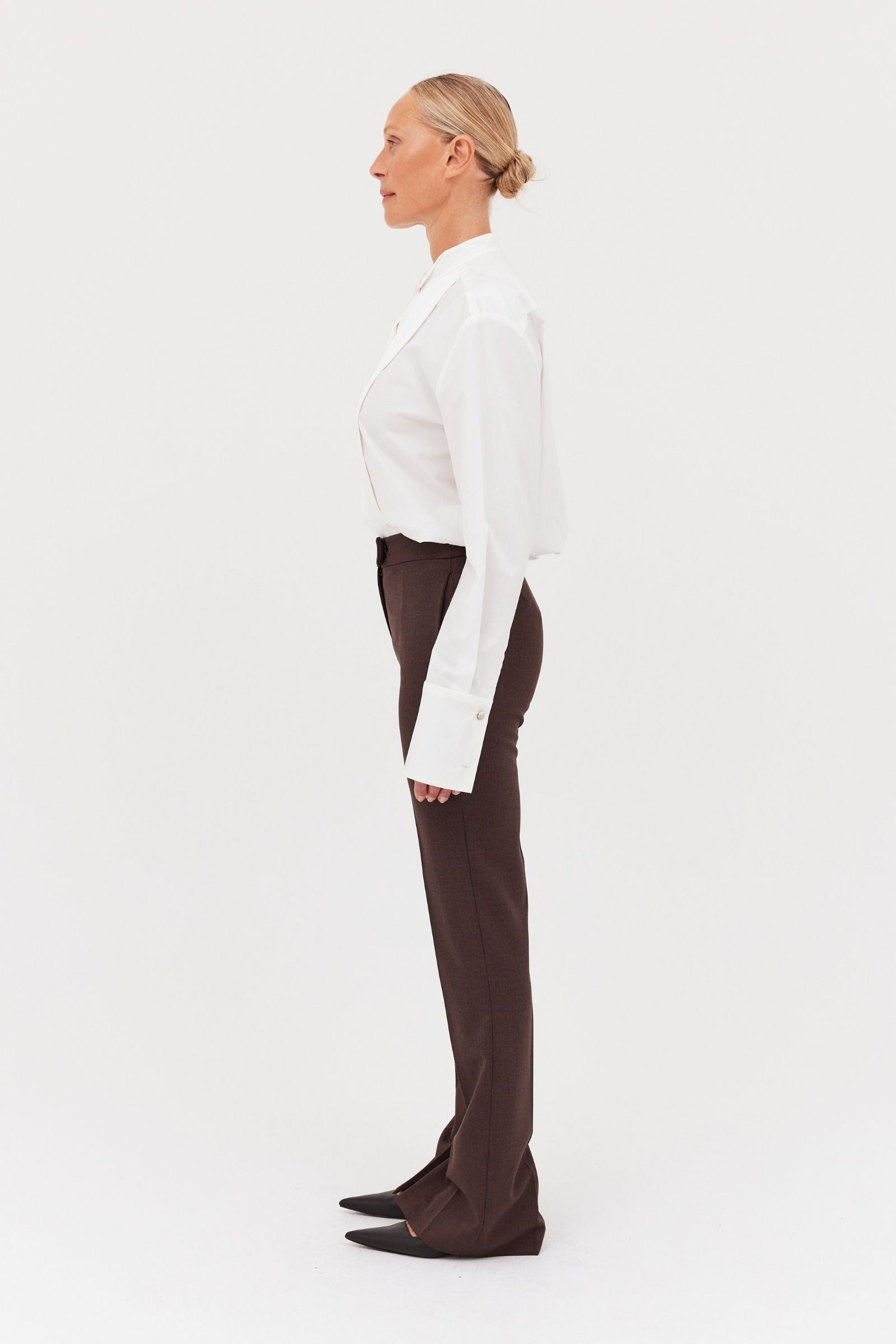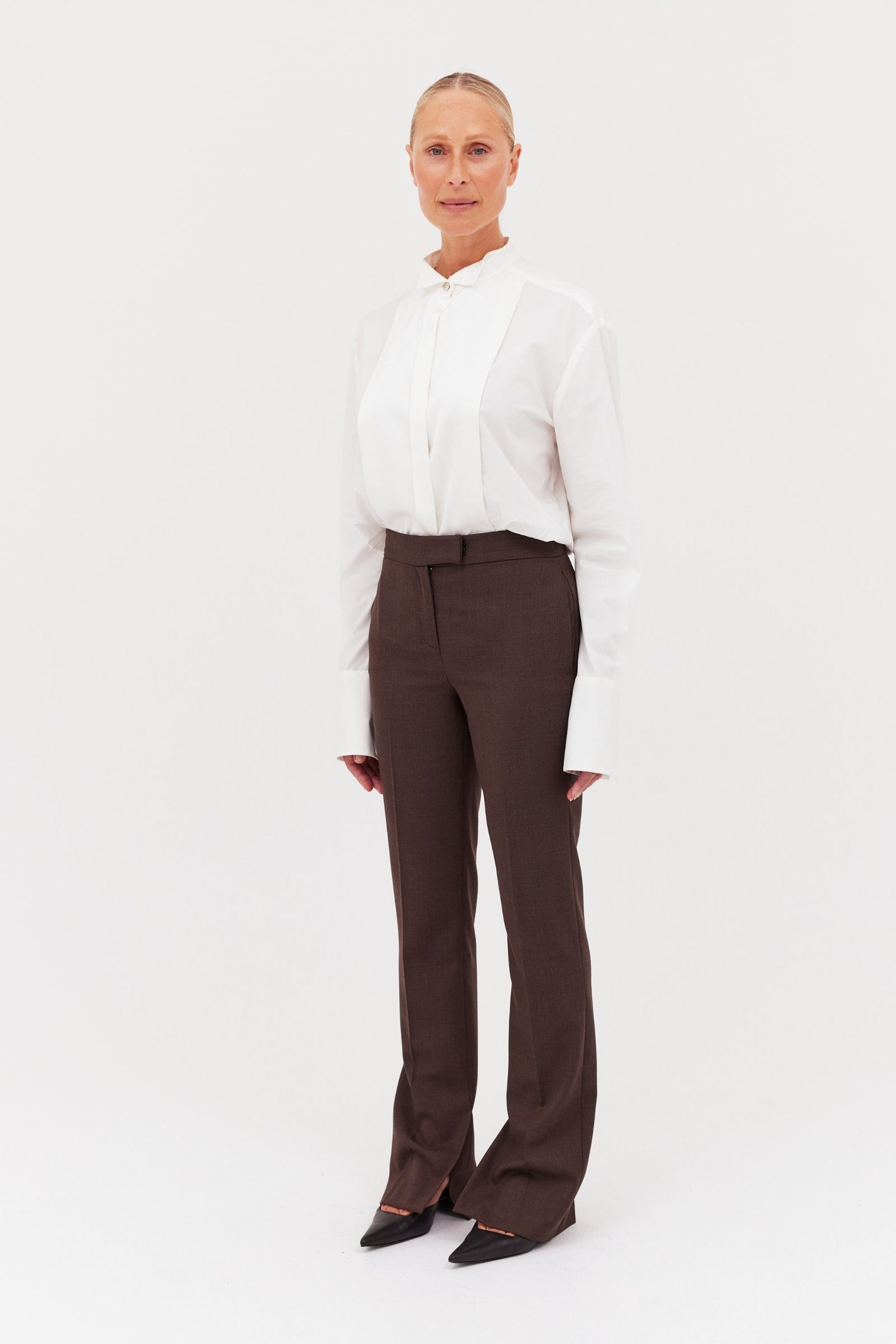 Pair these trousers with crisp shirting and heel for a structured yet informal workwear ensemble, or style casually with a jersey tee or bomber jacket and flats for an easy-to-wear, relaxed look. The waistband has a tab extension that fastens with a hidden hook and eye.