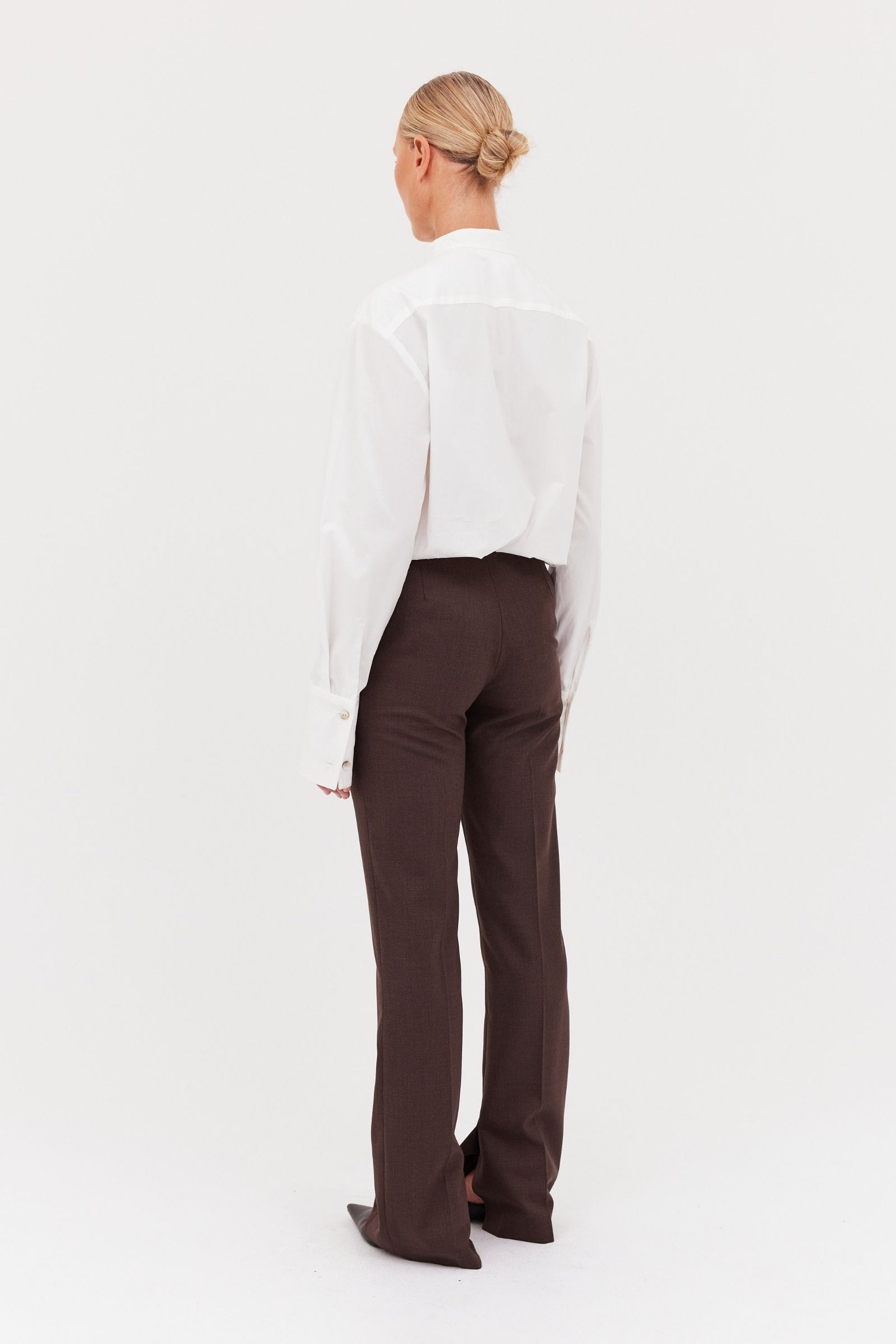No one cuts a trouser like Bianca Spender, and this longline number is no exception. Our best-selling Celina Pant, is now available in new season black denim. Most loved for their slick, longline fit, the Celina Pant features a centre-pressed leg and inside hem split to draw the eye downward and elongate the frame, falling on top of the shoe. The waistband has a tab extension that fastens with a hidden hook and eye.