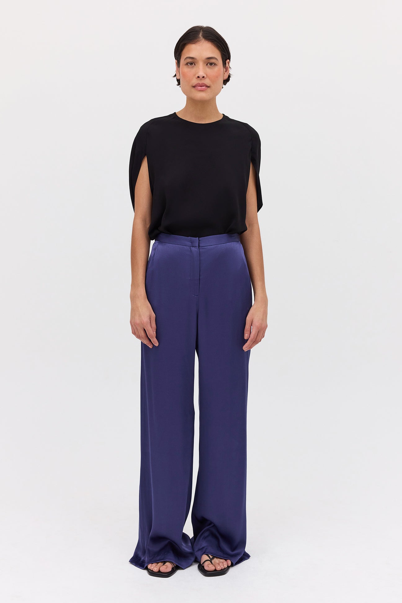 A fresh new season take on a most-loved Bianca Spender shape, introducing the Earthly Pant in Midnight Satin. Refined yet comfortable, the Midnight Satin Earthly Pant is a softly tailored high-rise trouser, crafted from a lightweight satin, allowing breathability and ease of movement.