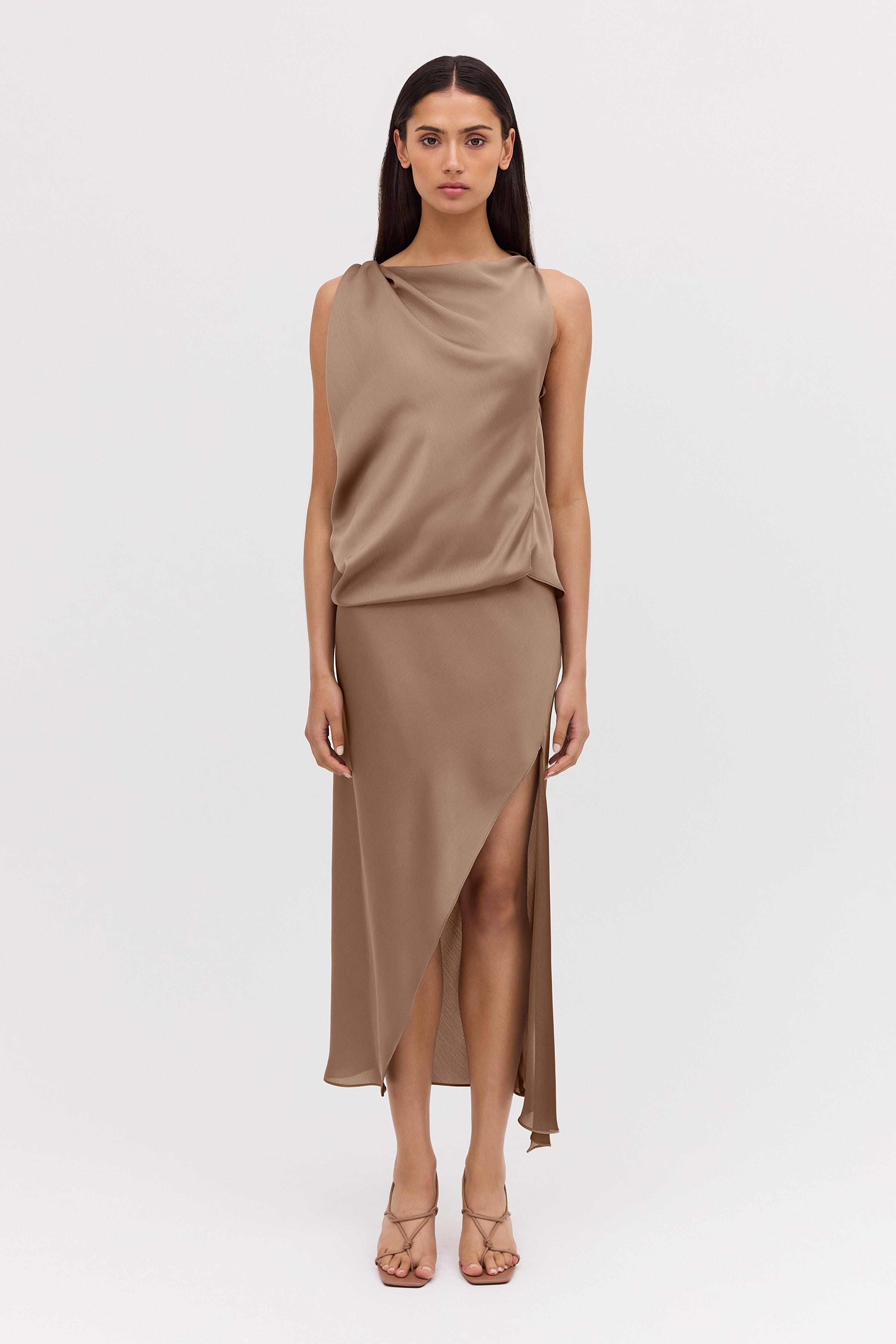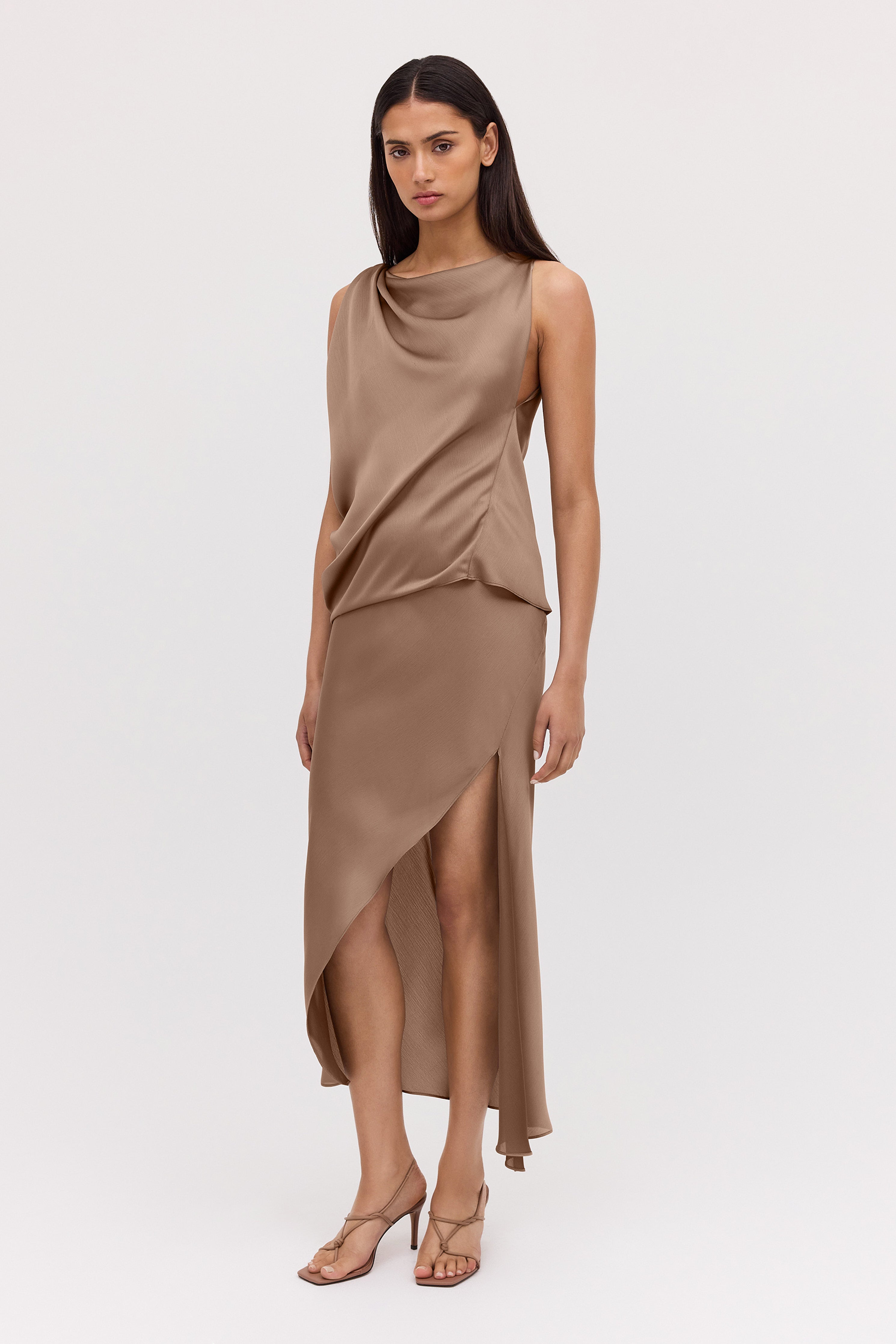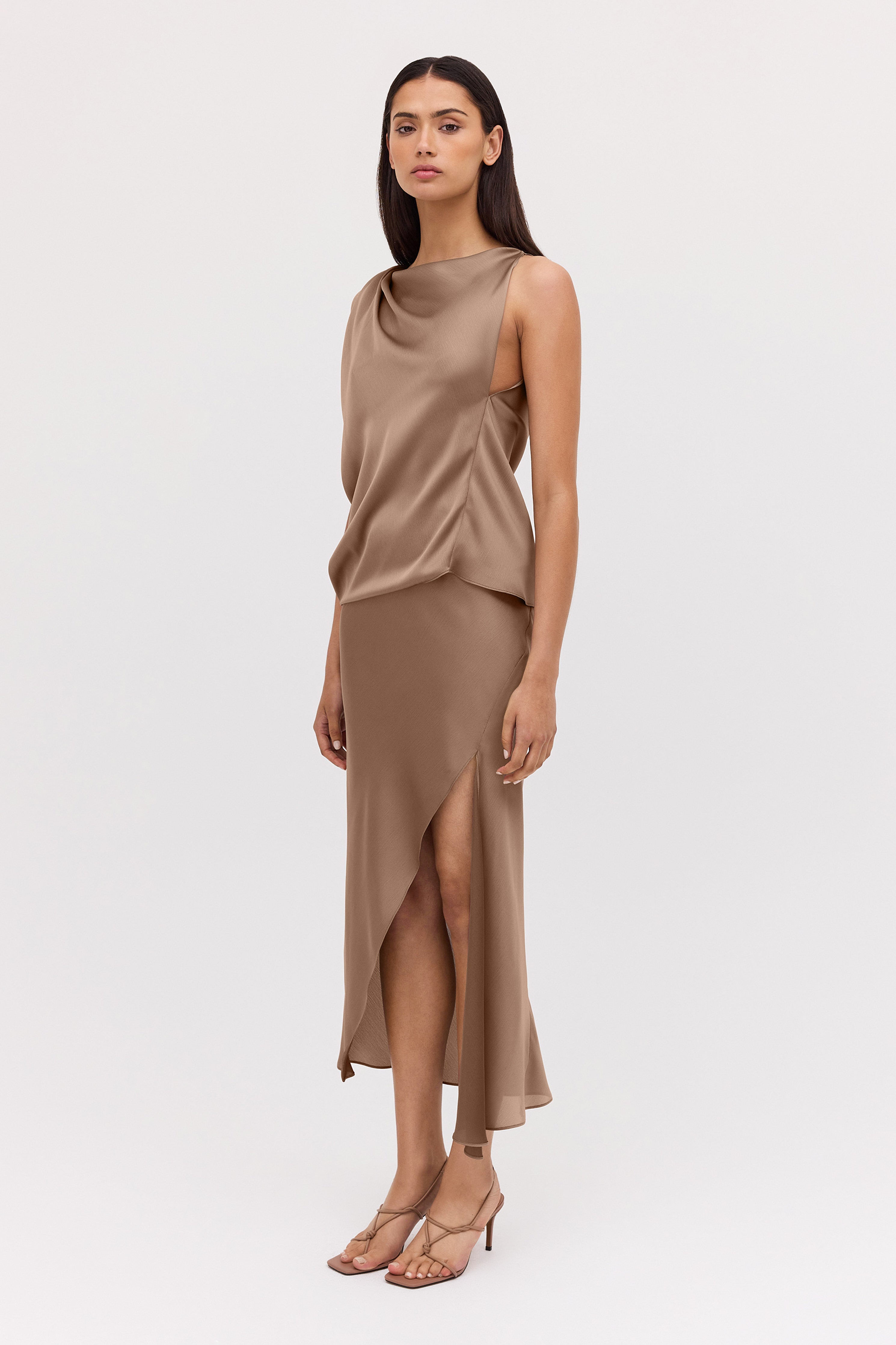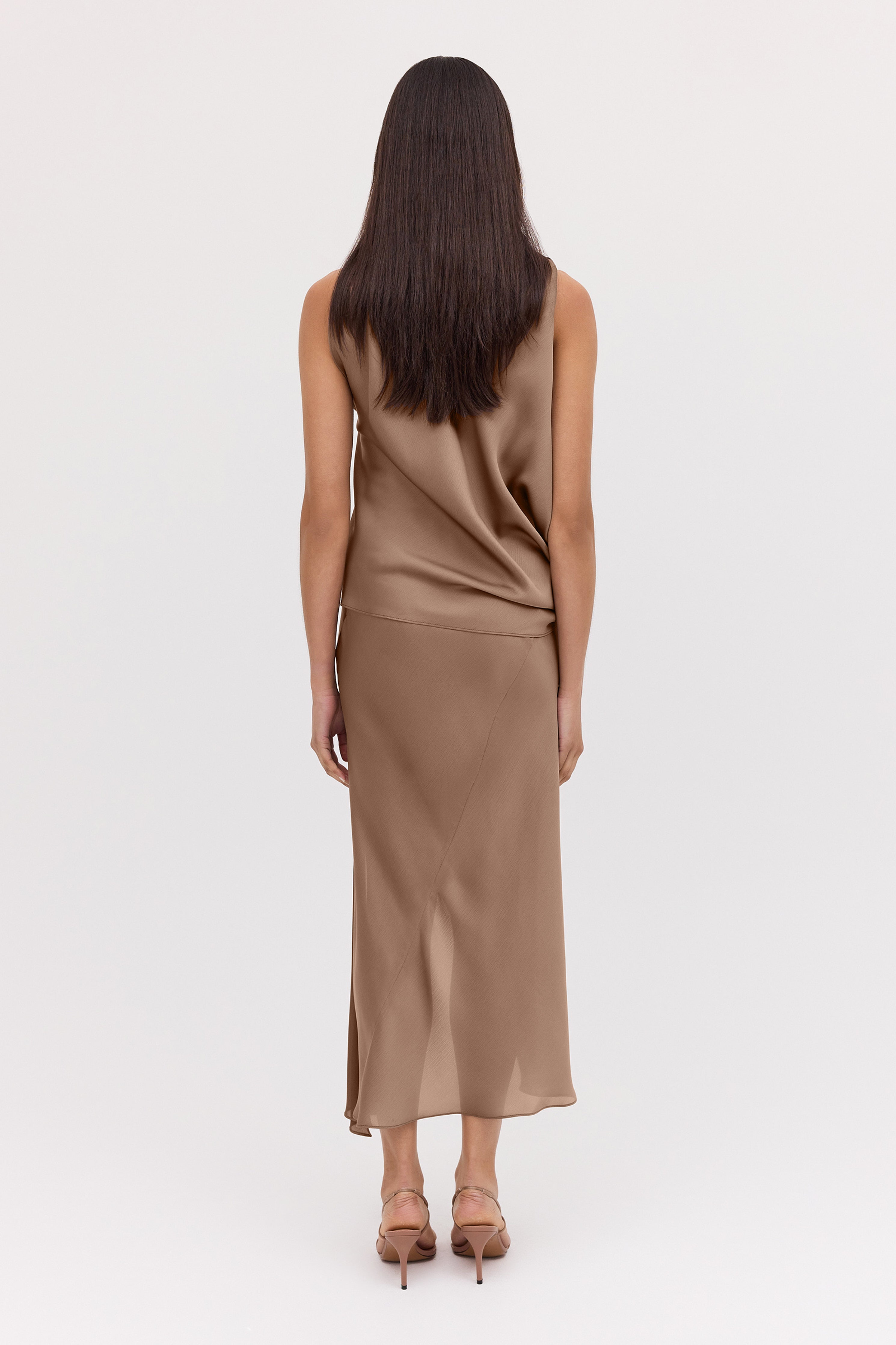 Evoke a sense of ease in the Mushroom Chiffon Oblique Skirt, a fresh new season take on a most-loved Bianca Spender style. Cut on the bias and featuring Bianca's signature liquid drape, the Oblique Skirt softly skims and flatters the form.