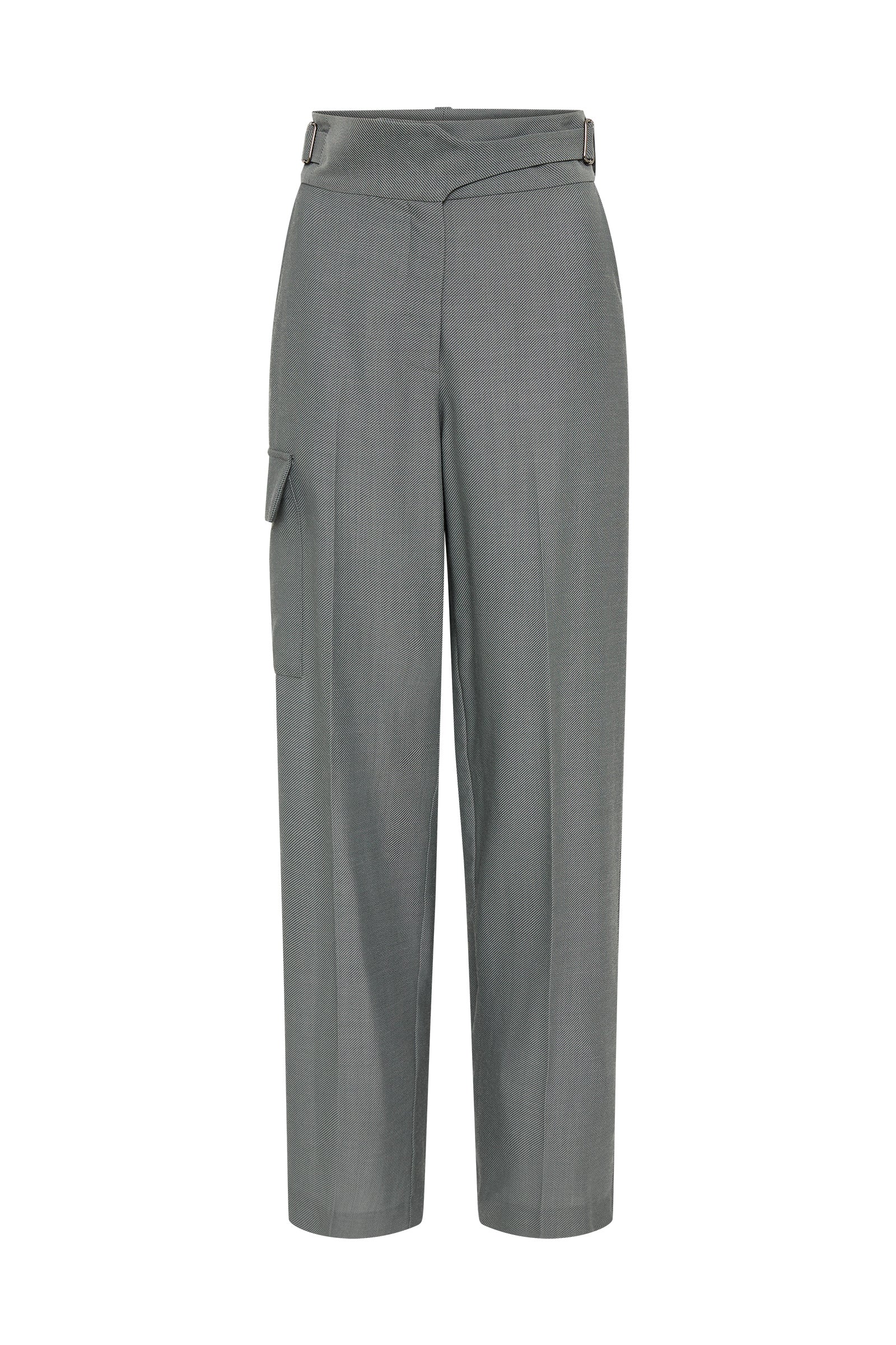 The perfect seasonless pant, versatile in wear. Our Slate Drill Pivot Pant is a high-waisted, tab-front fastening design with a straight leg fit and utilitarian cargo-pocket details.